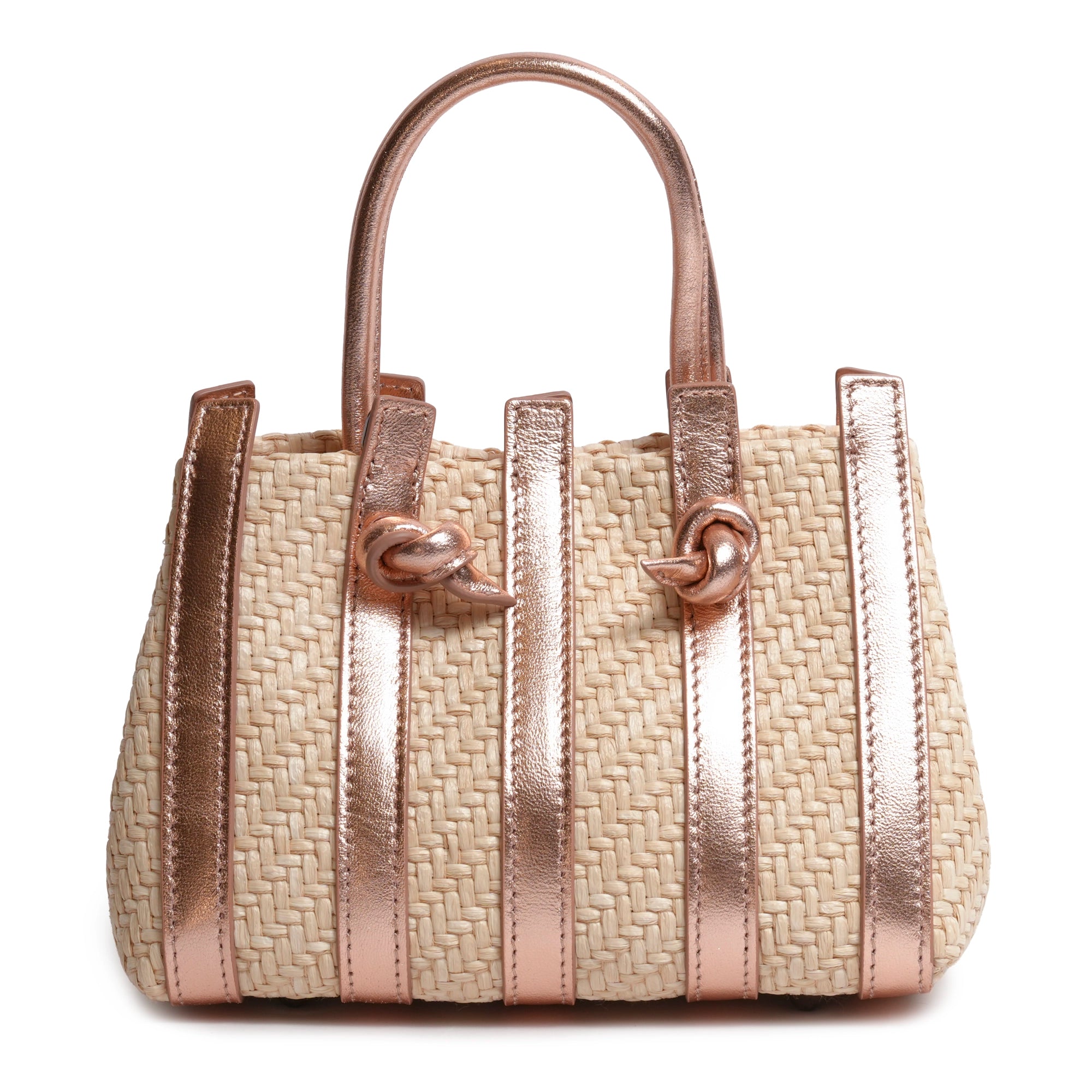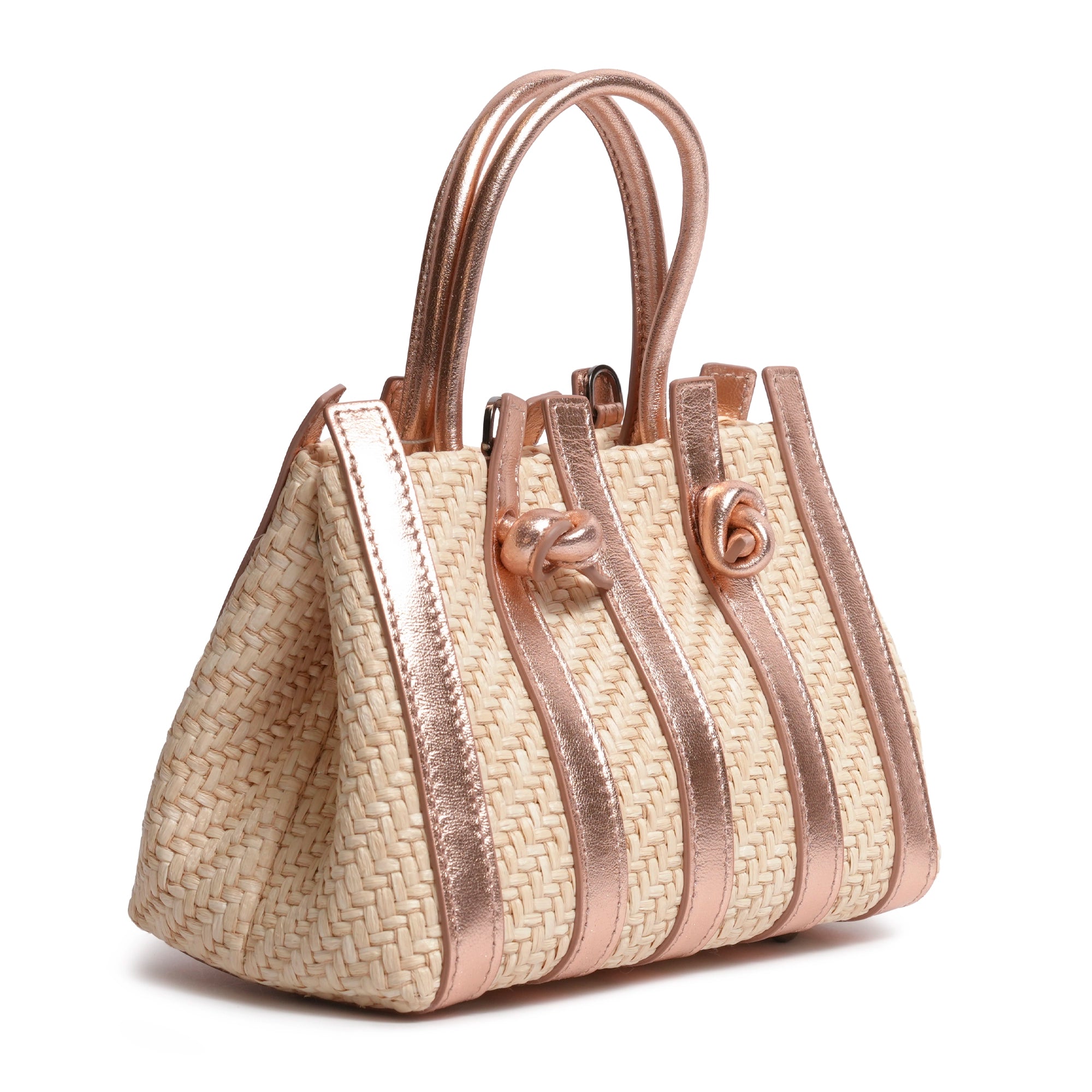Stripes Canvas and Leather Mini Shopping Bag in Laminated Rose Gold