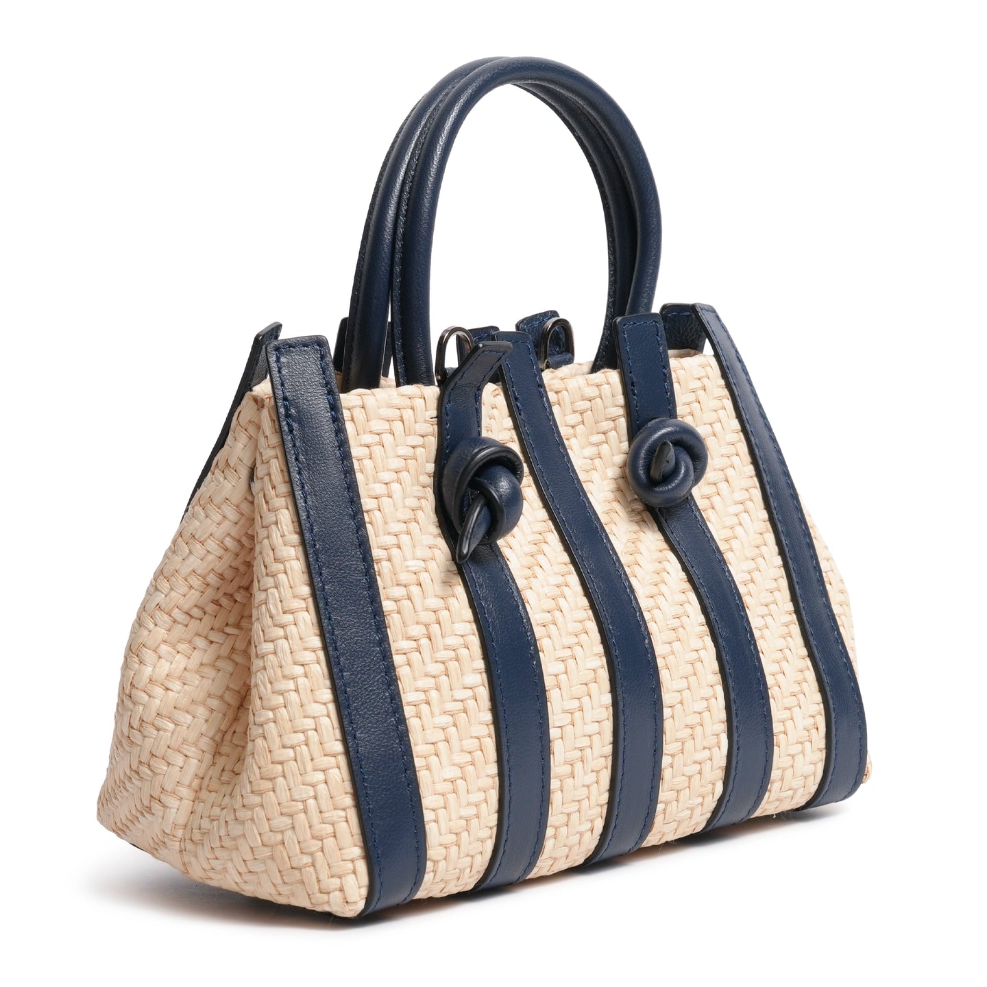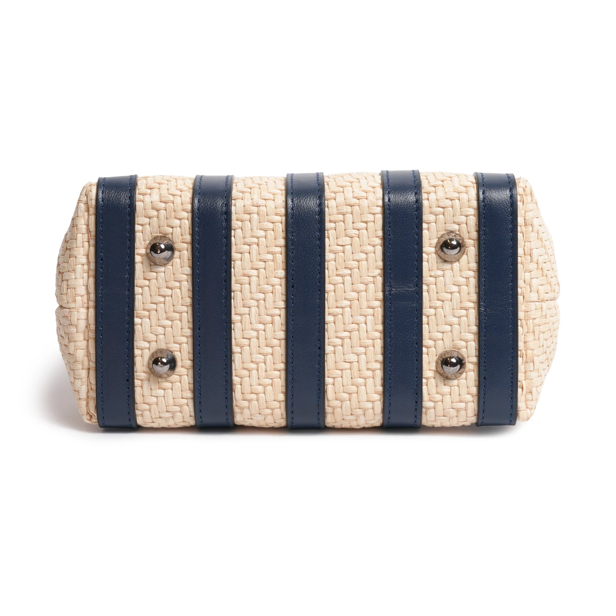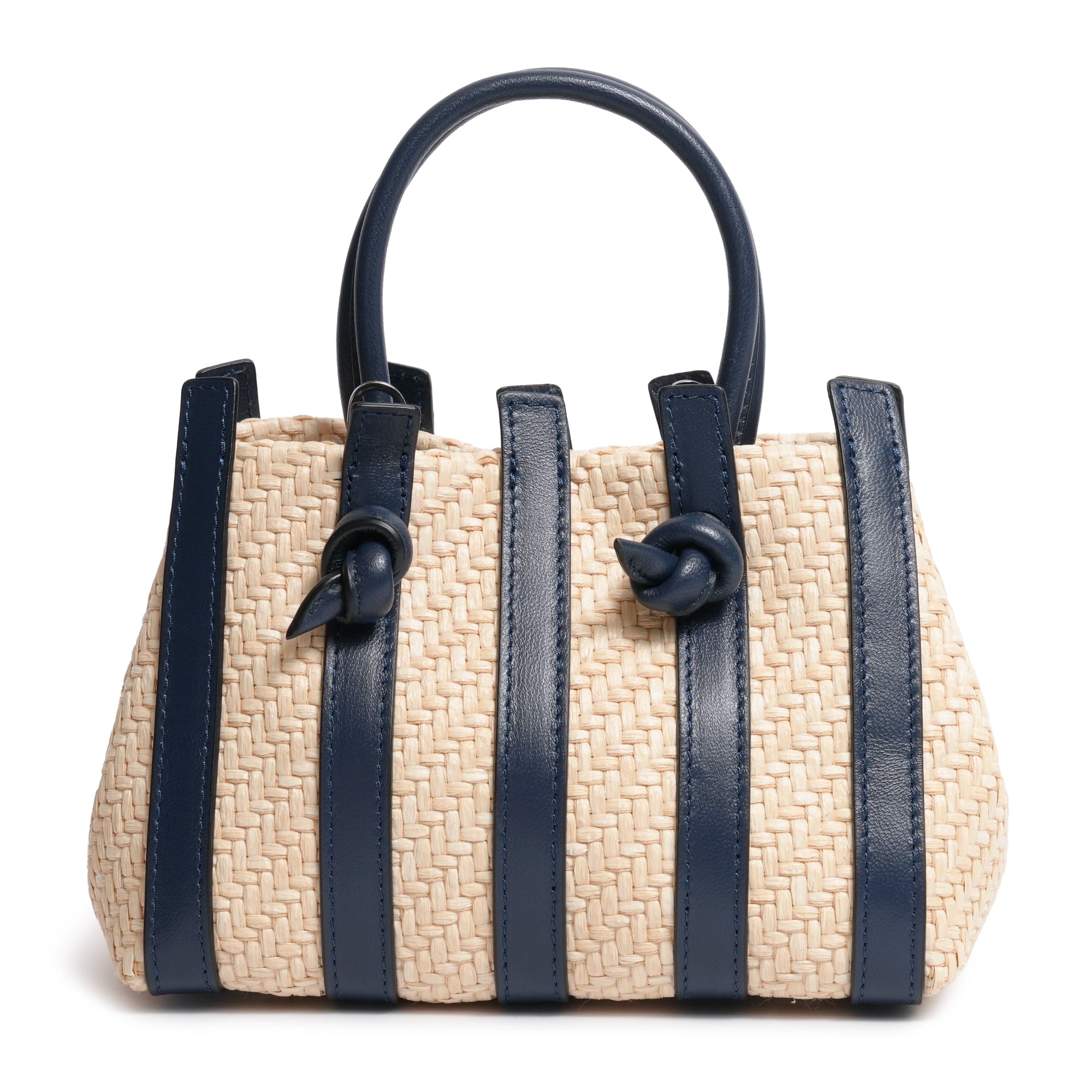Stripes Canvas and Leather Mini Shopping Bag in Nappa Carta da Zucchero