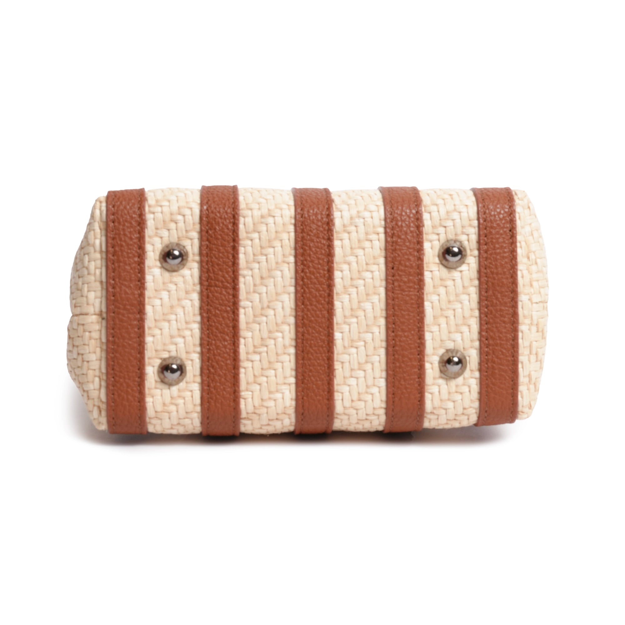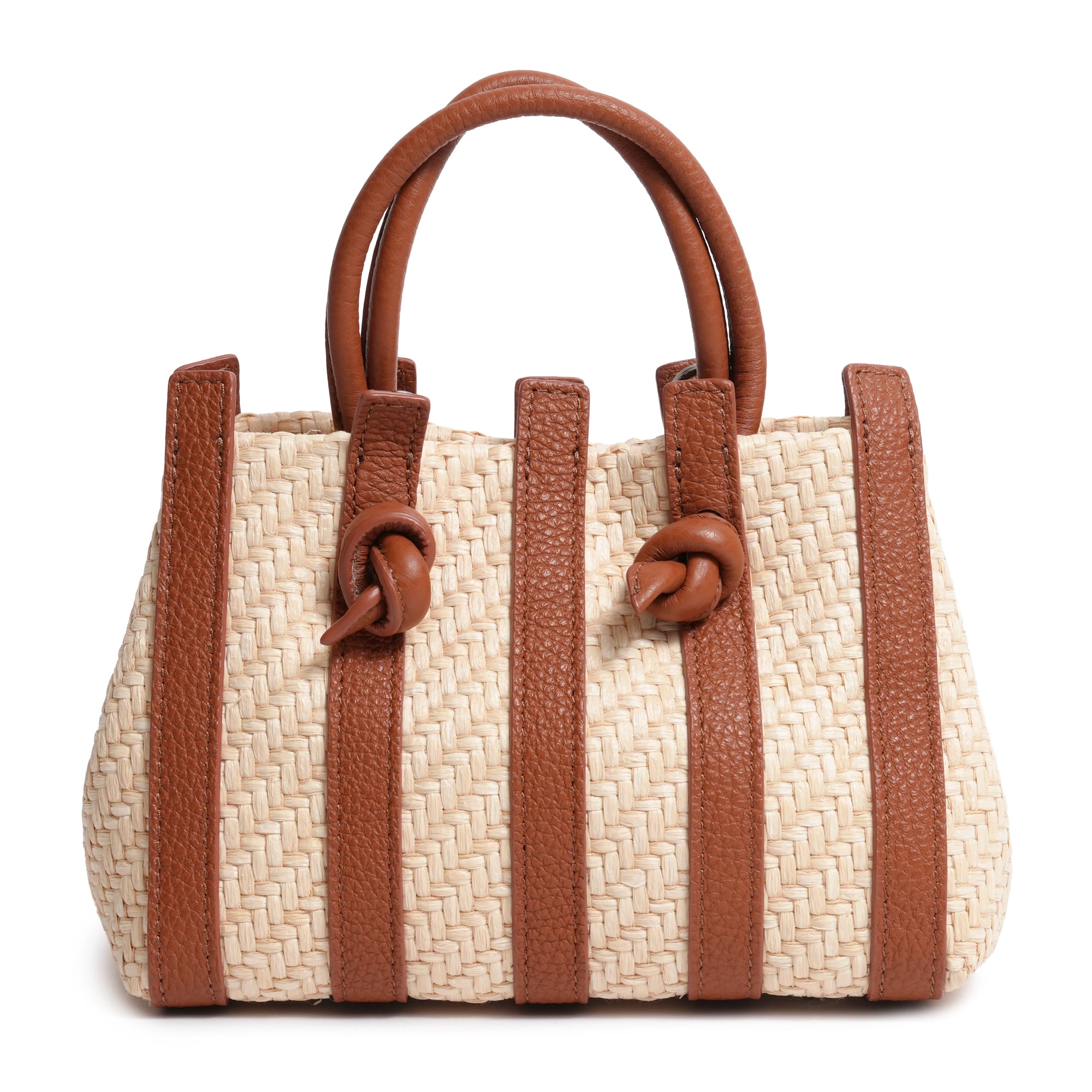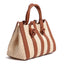 Stripes Canvas and Leather Mini Shopping Bag in Nappa Cuoio