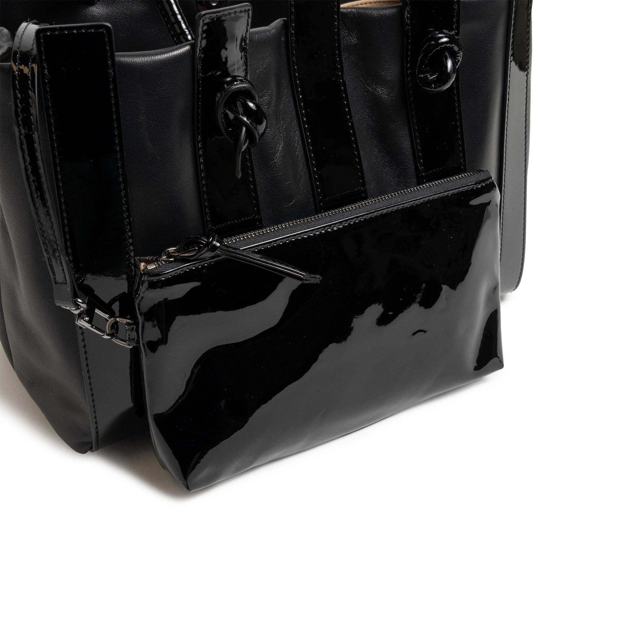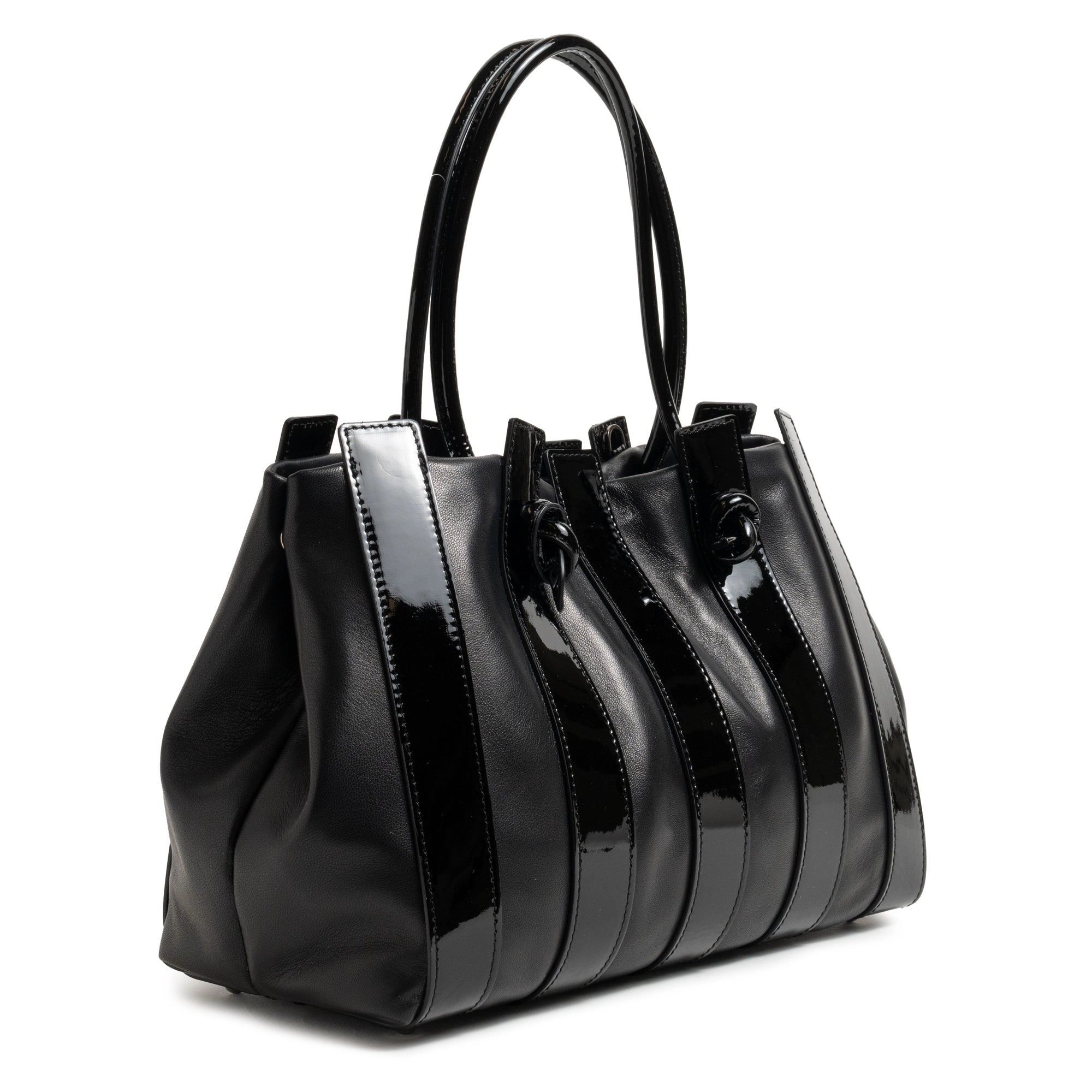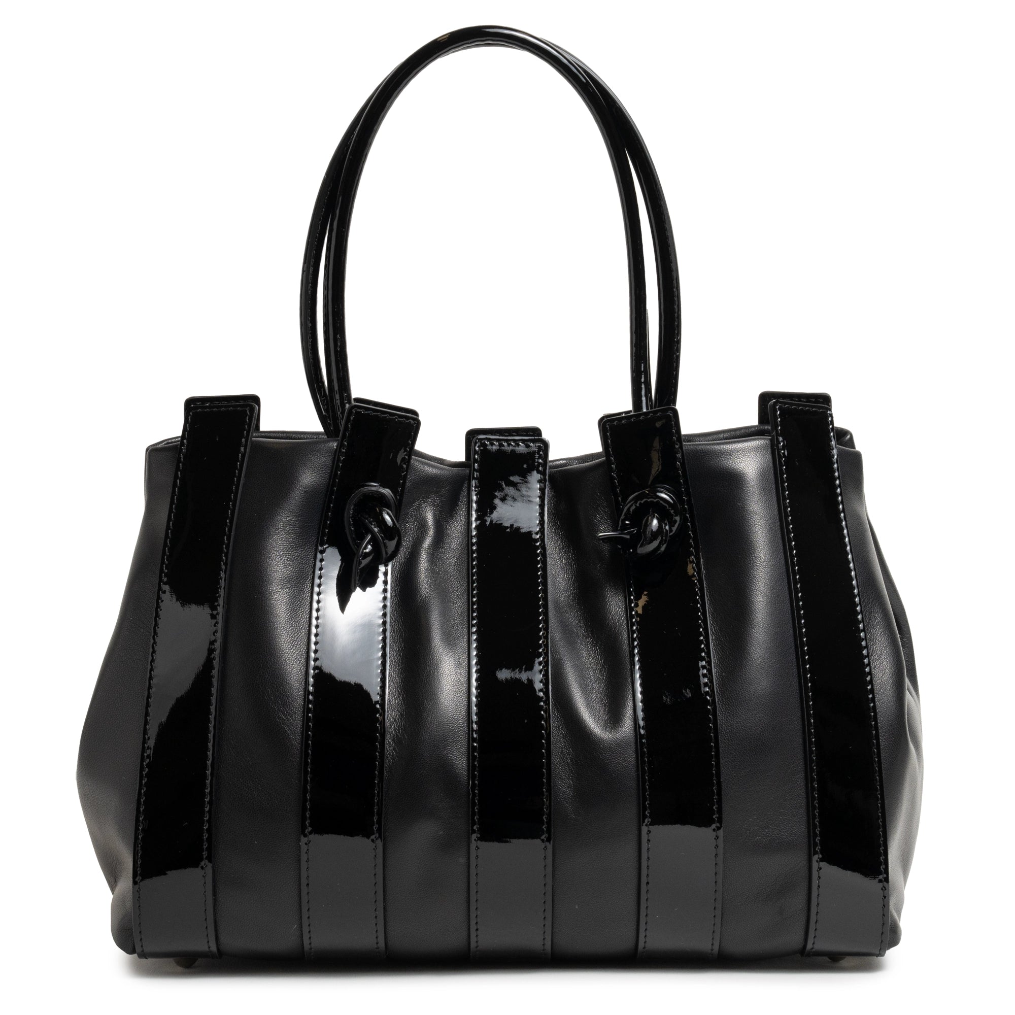 Stripes Large Shopping Bag in Black Nappa and Patent Leather