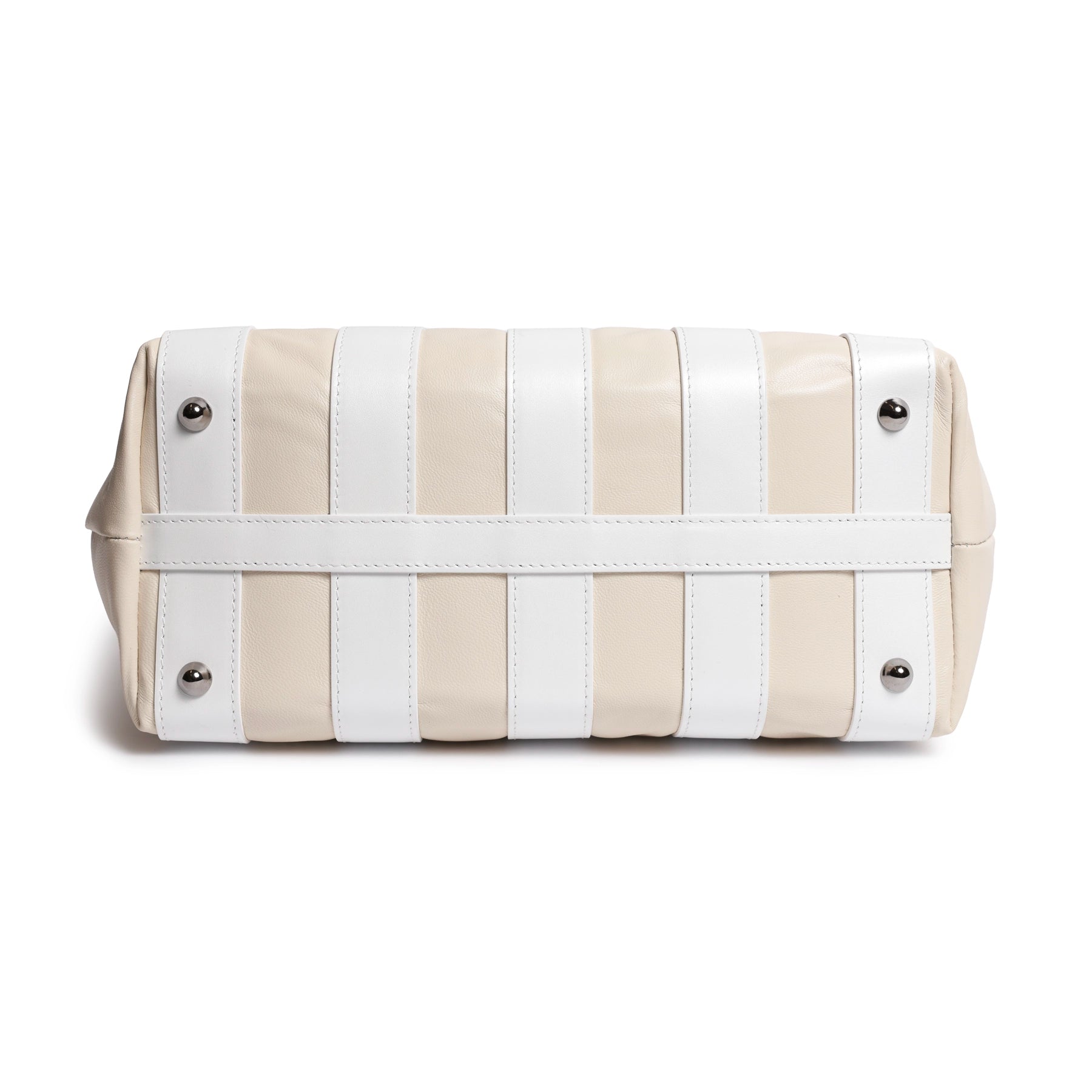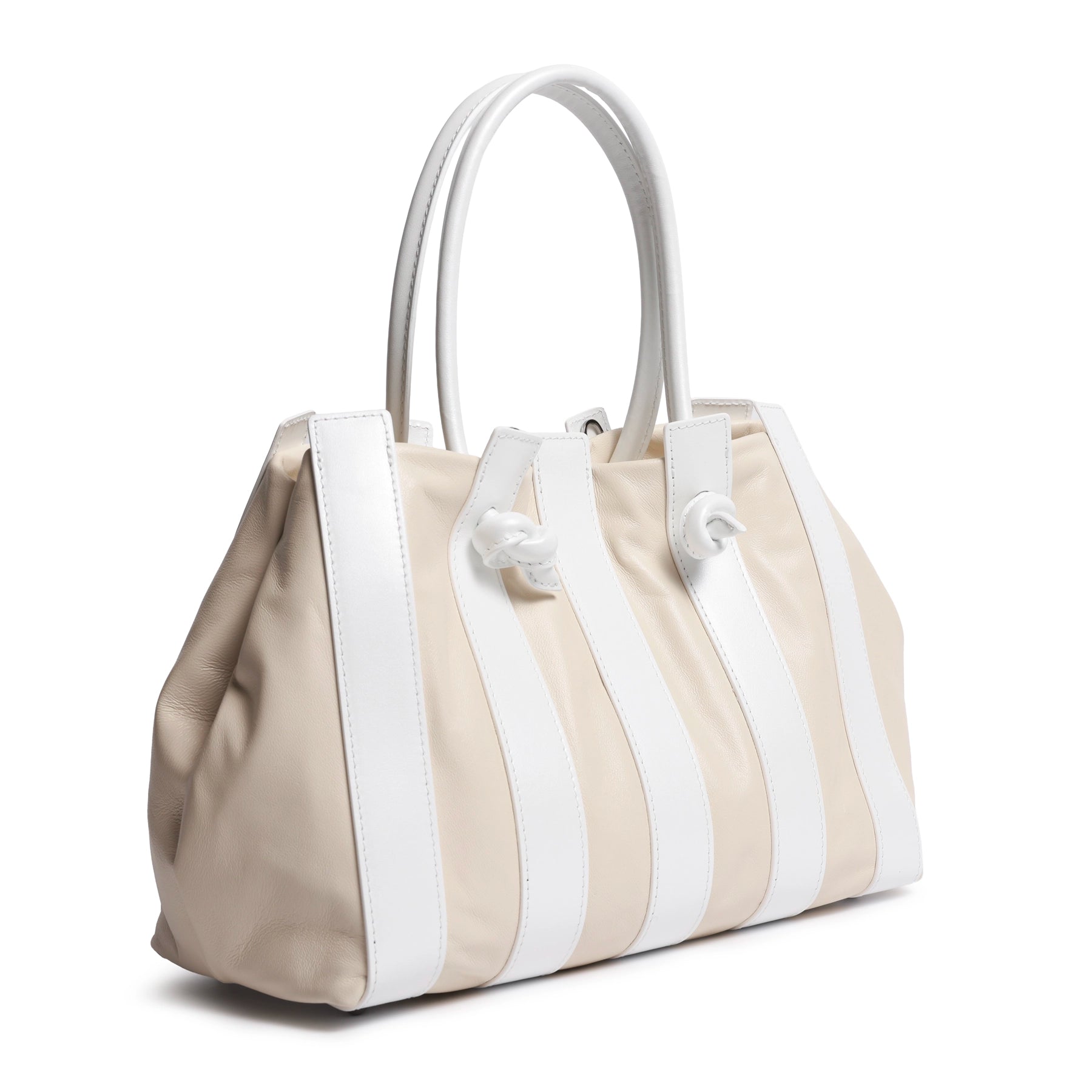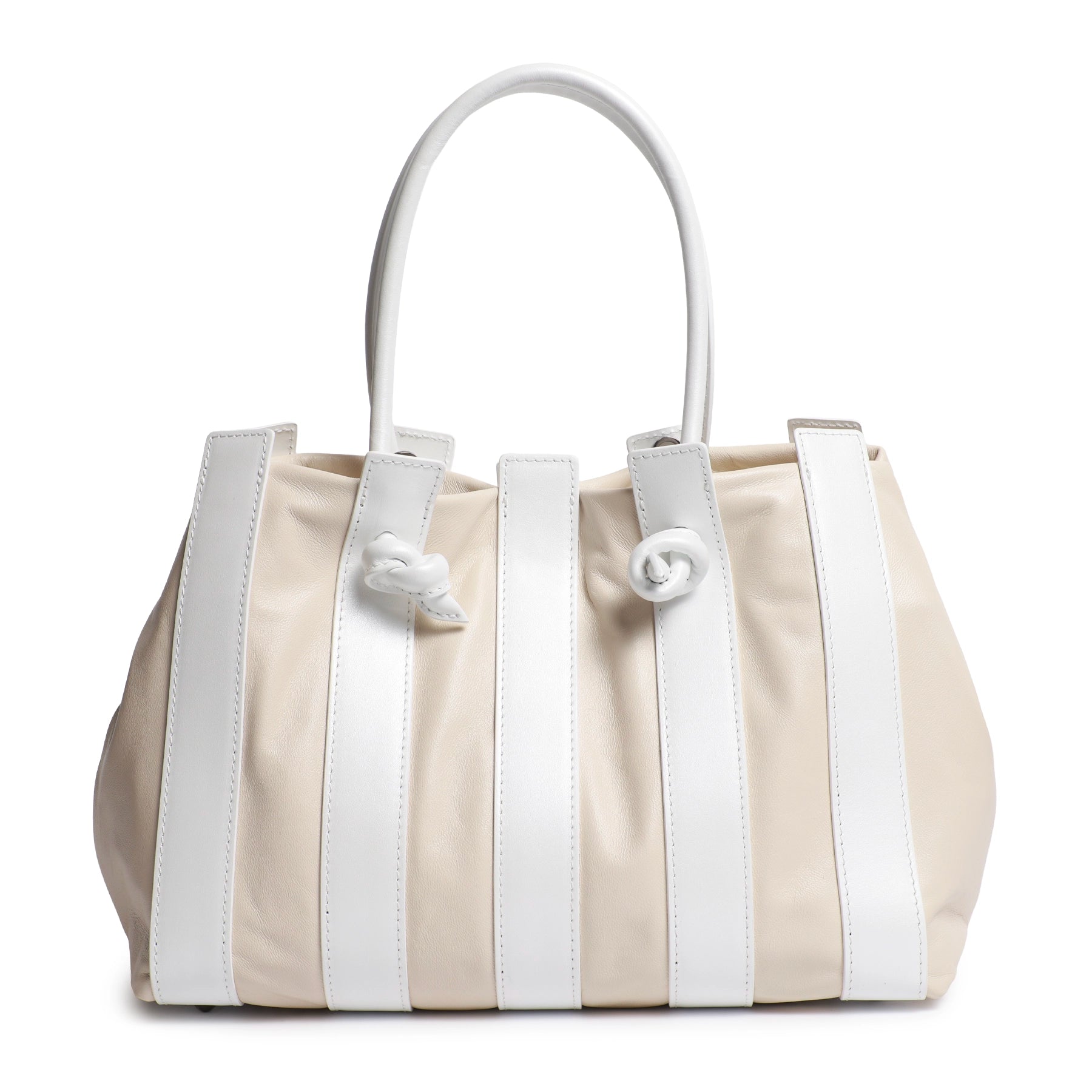 Stripes Large Shopping Bag in Ivory and White Softy Pearlized Leather