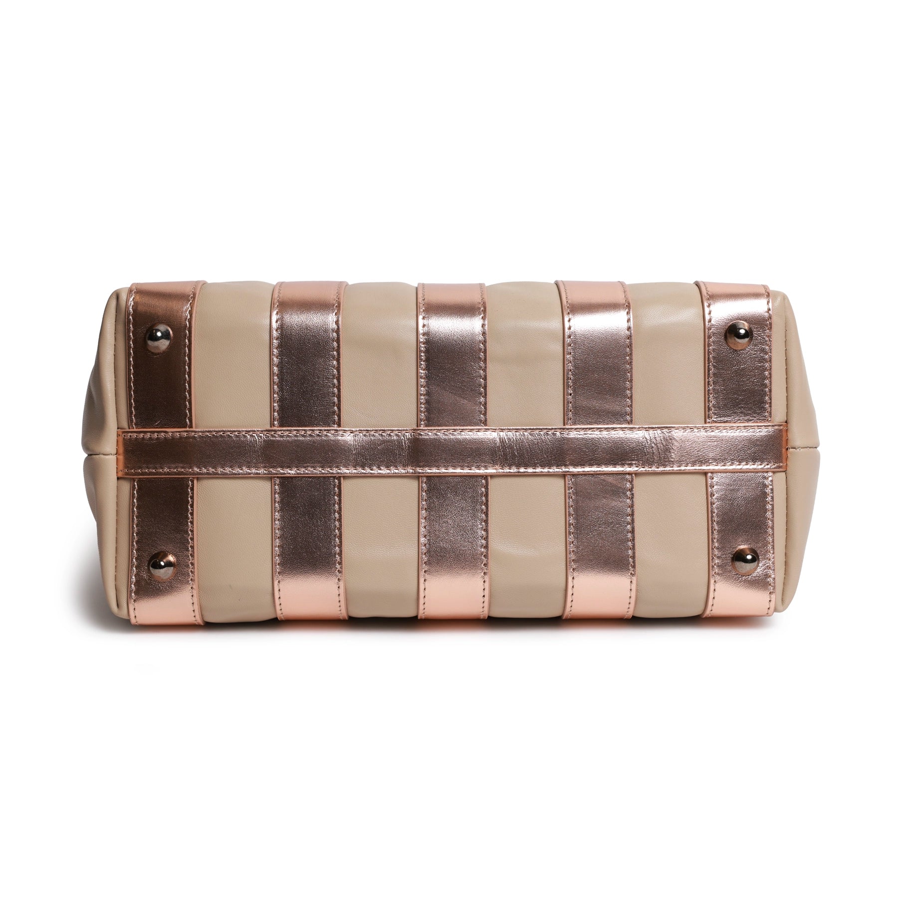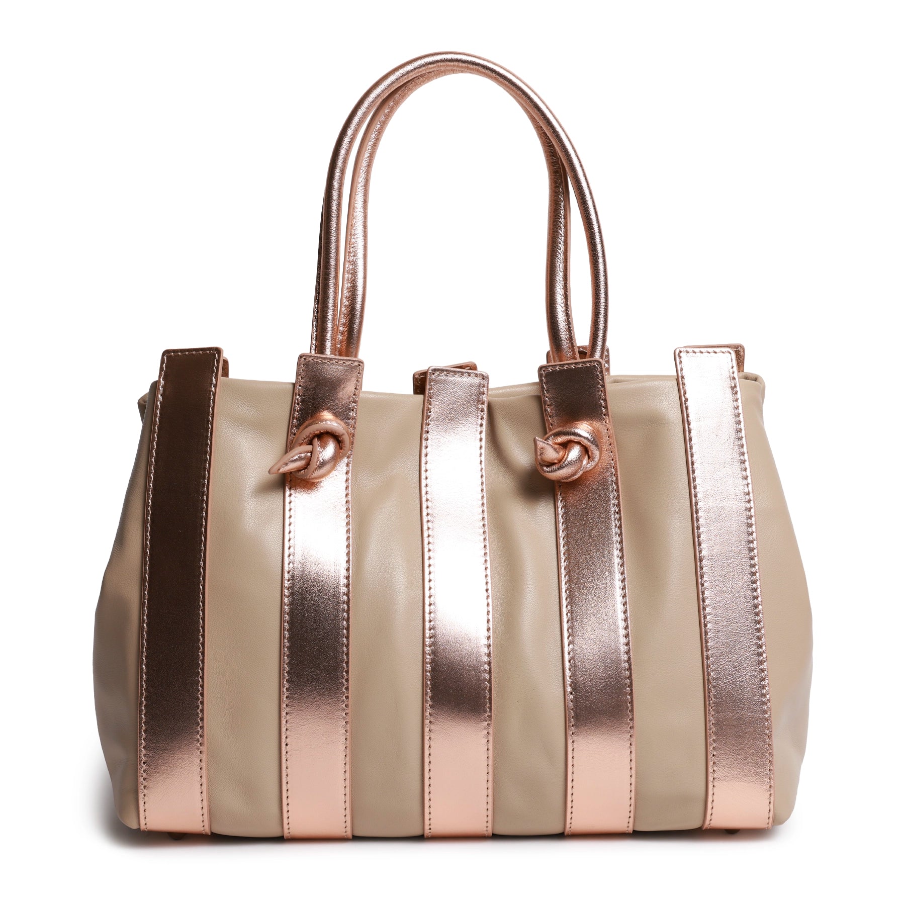 Stripes Large Shopping Bag in Nappa Caffellatte and Rose Gold Leather