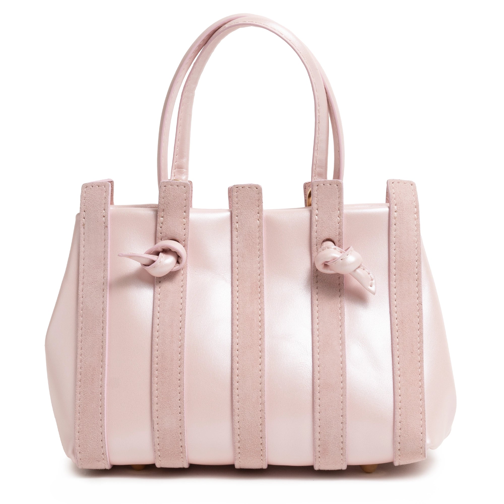 Stripes Leather Mini Shopping Bag in Nappa Pink
