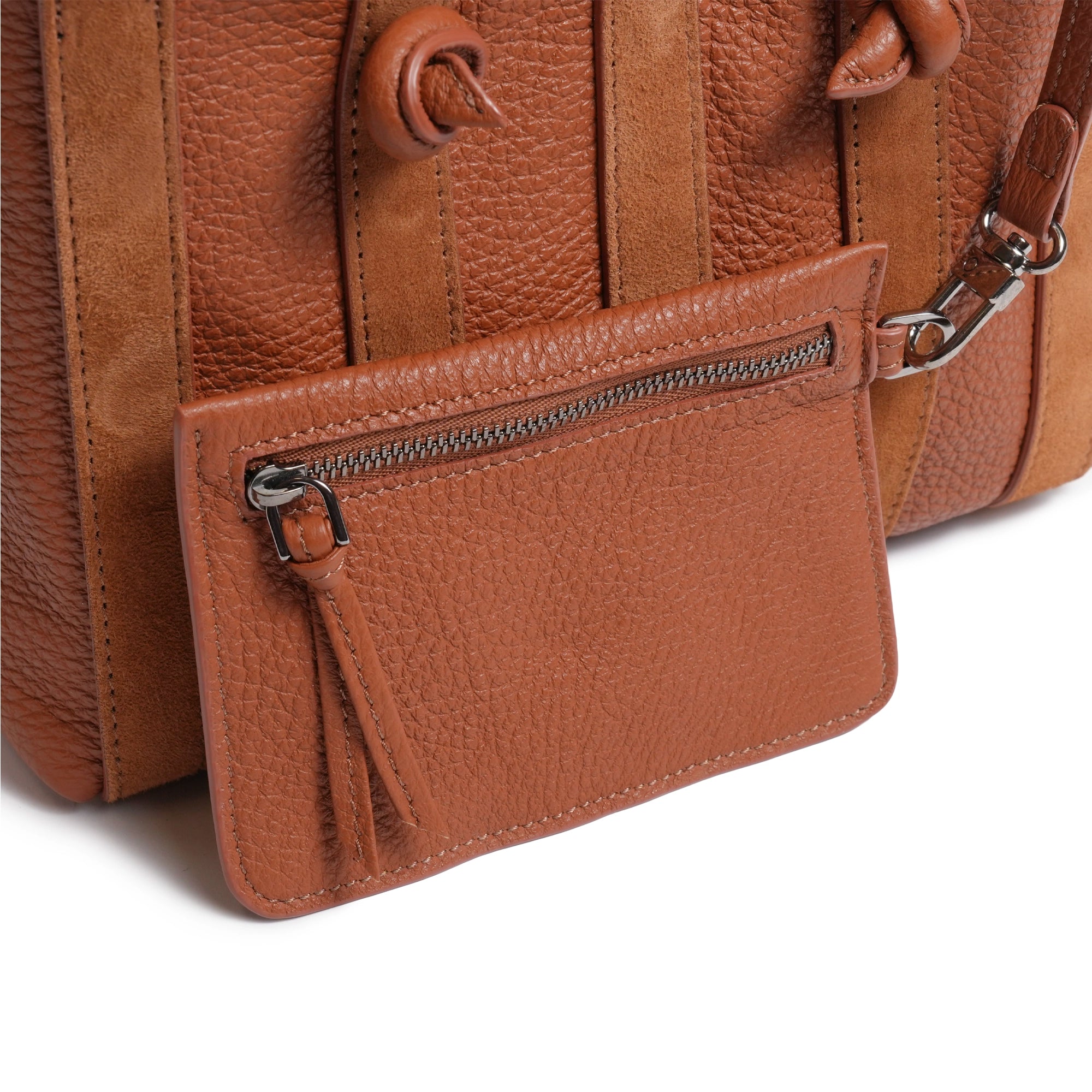 Inside, you're greeted with a plush suede lining that feels as refined as it looks. A detachable leather zippered mini bag offers secure storage for valuables or can be carried solo when you need to travel light. The additional leather strap gives you the freedom to wear it crossbody, making this bag as versatile as your day demands.