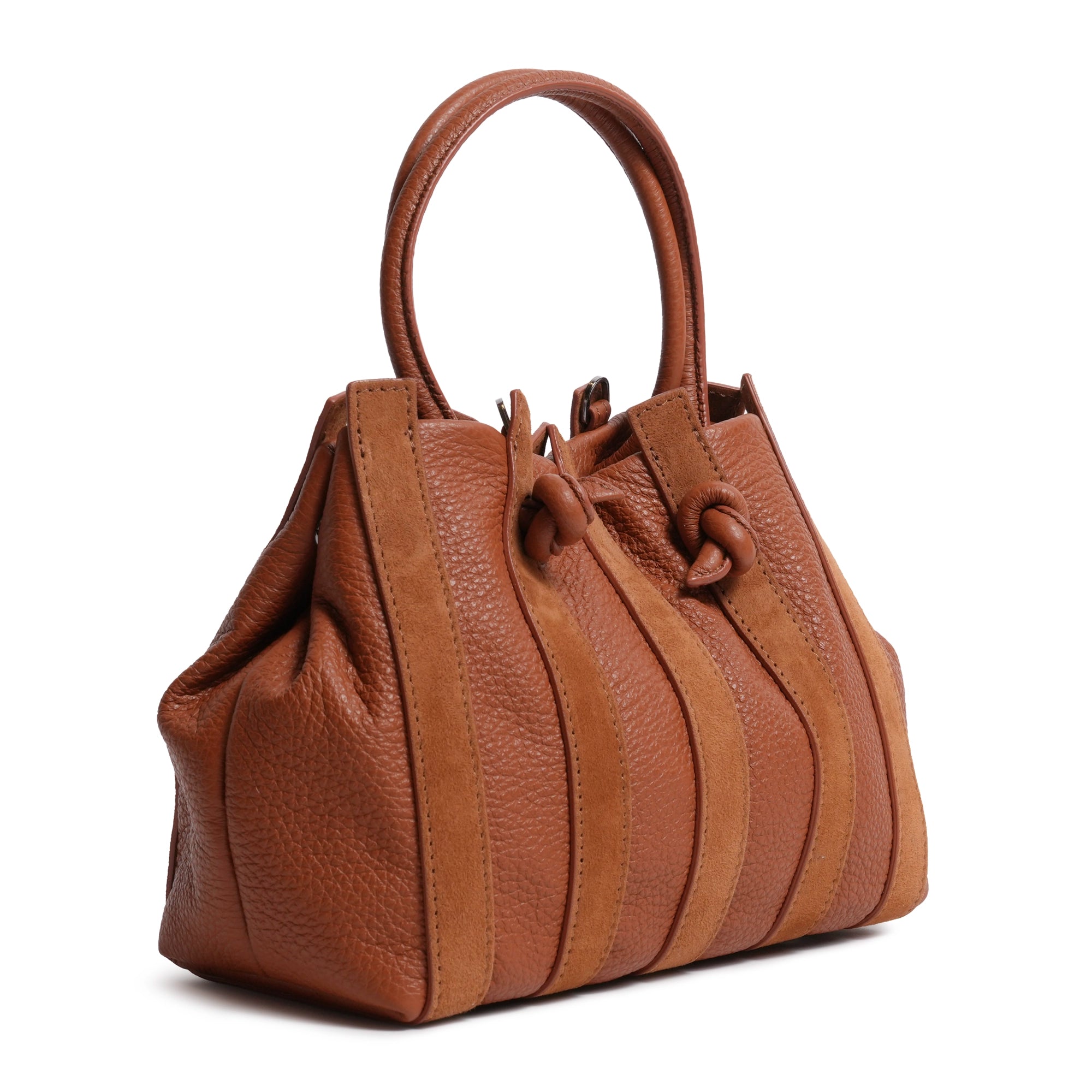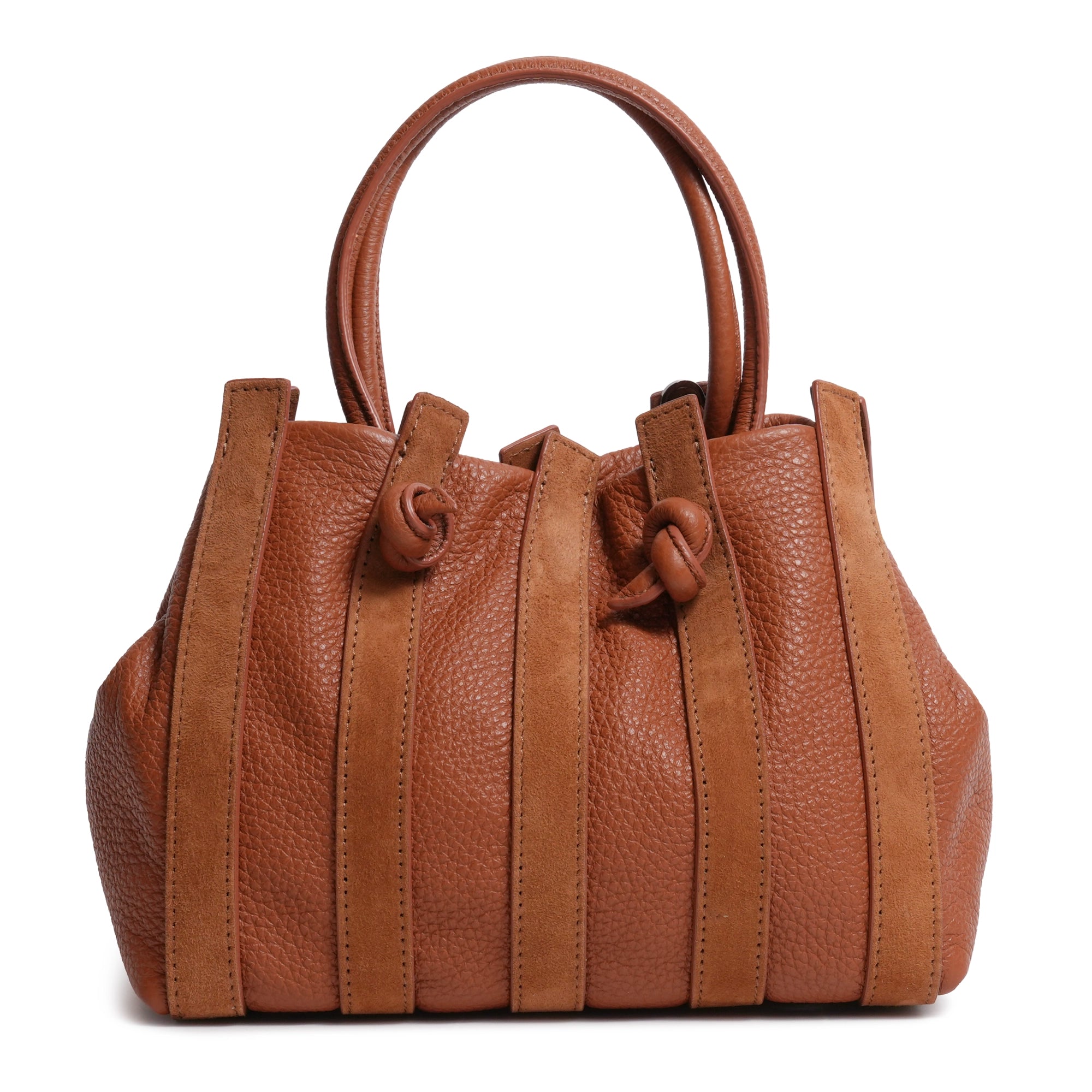 Stripes Medium Deer Leather Shopping Bag in Cuoio