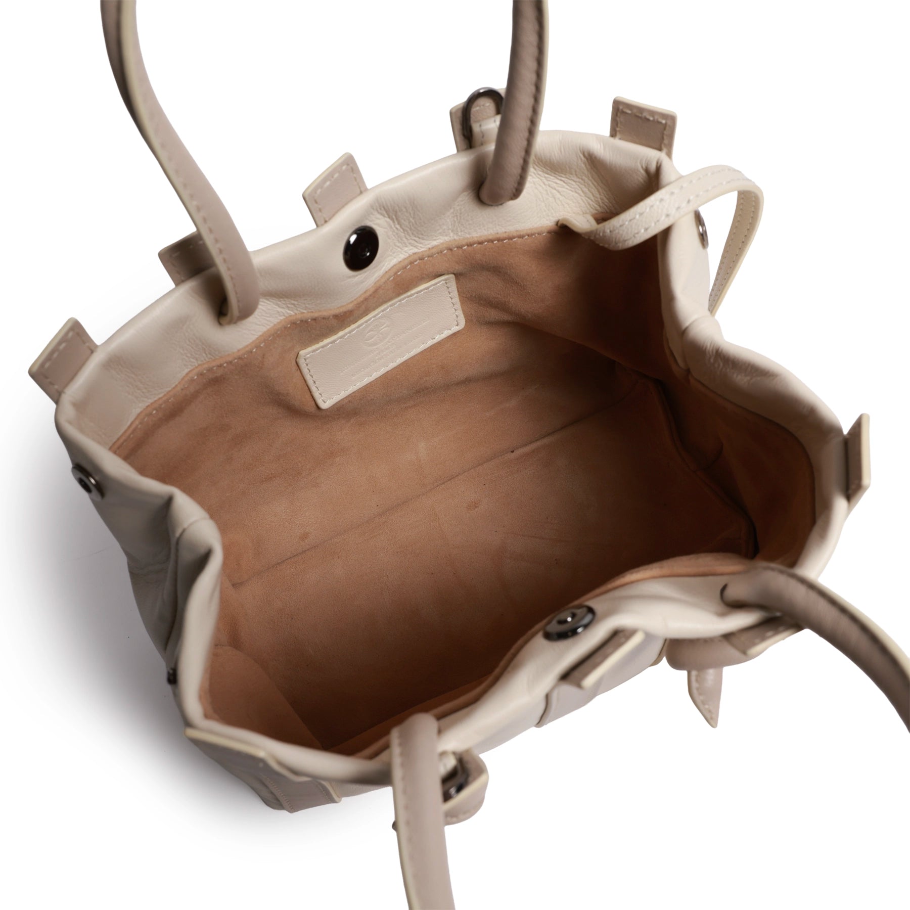 Meet your new essential: the Medium Shopping Bag in Nappa Ivory and Cipria Leather, where utility meets understated elegance. Designed for those who carry more — and carry it well — this spacious tote features a structured body, elevated with smooth leather stripe detailing for a clean, timeless look.
