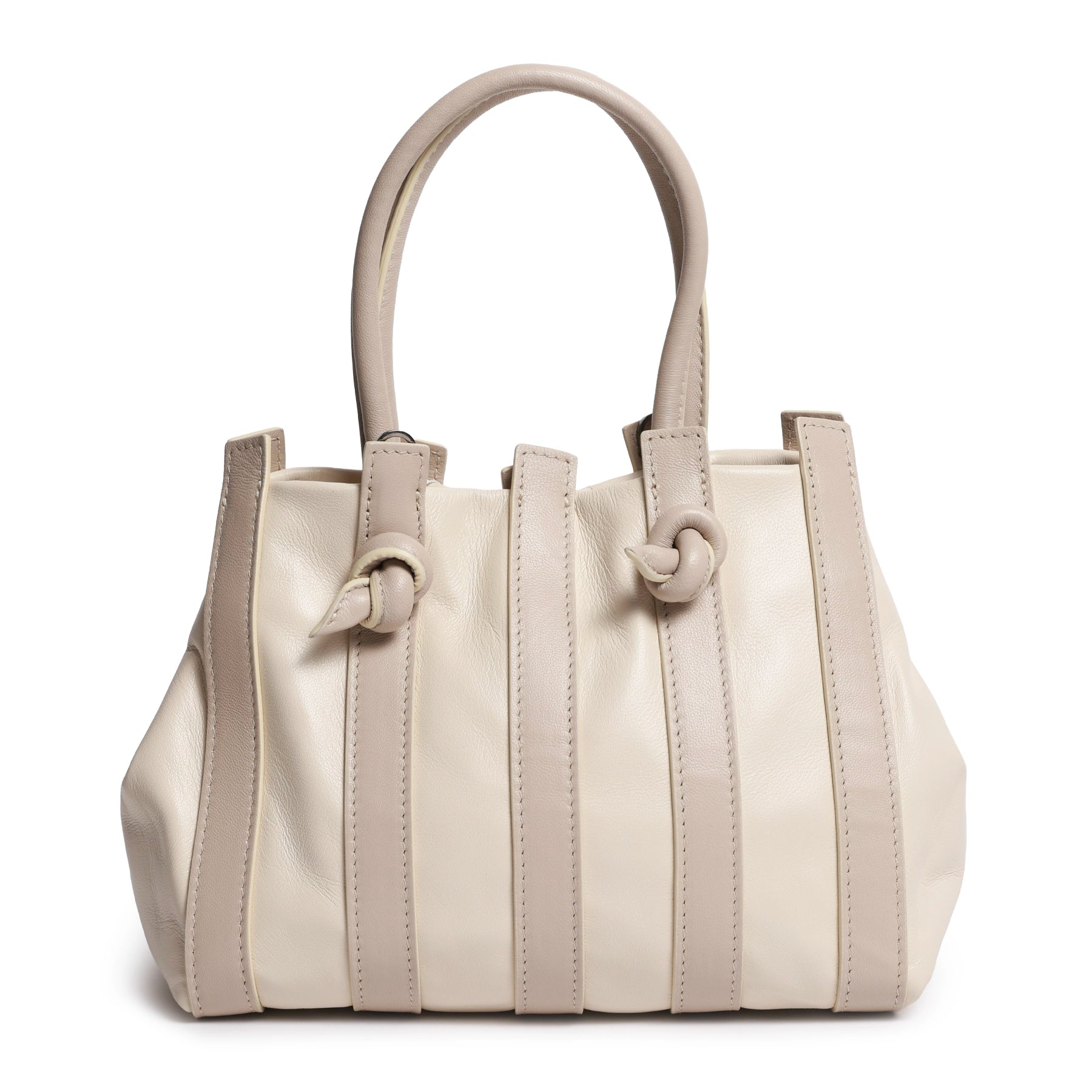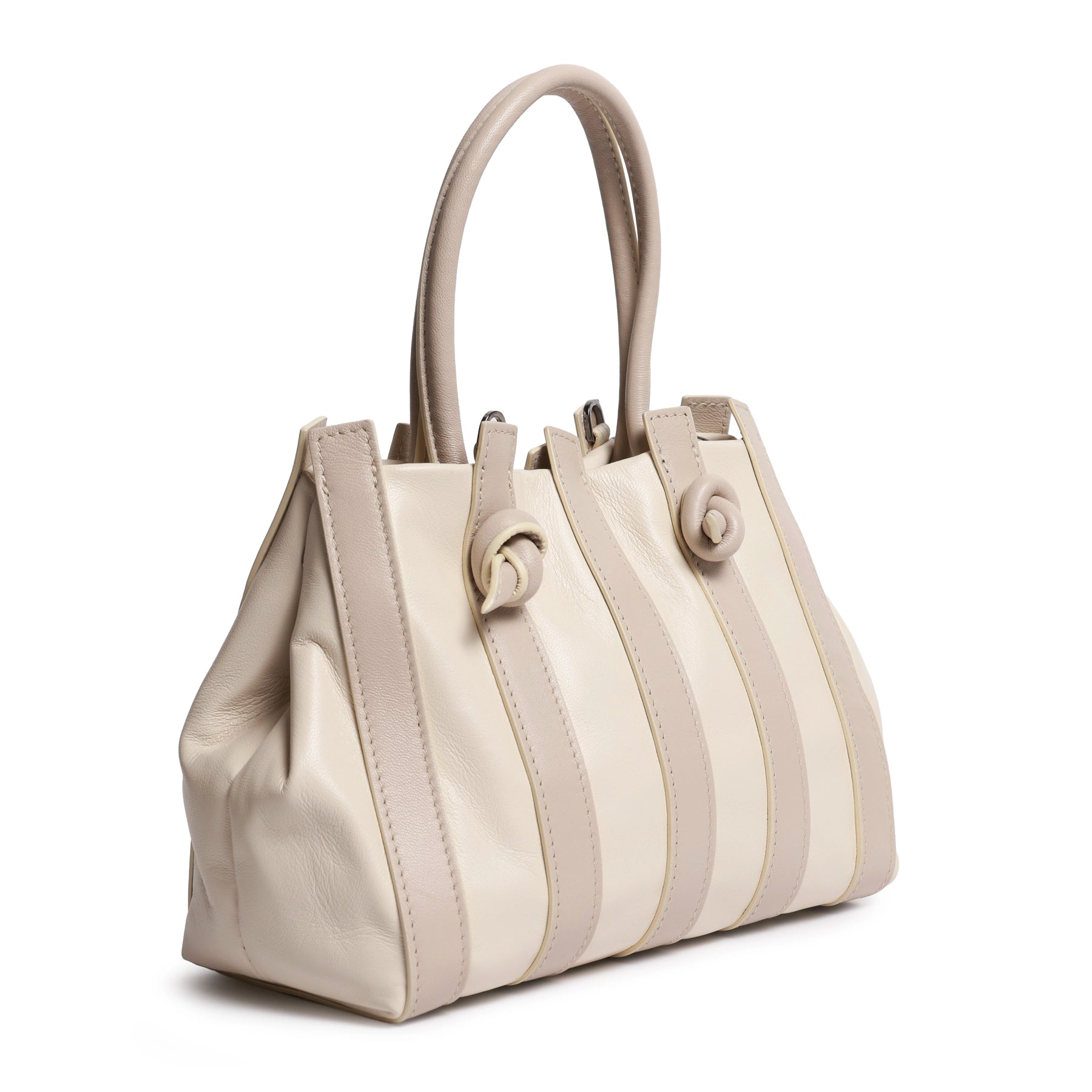 Stripes Medium Shopping Bag in Nappa Ivory and Cipria Leather