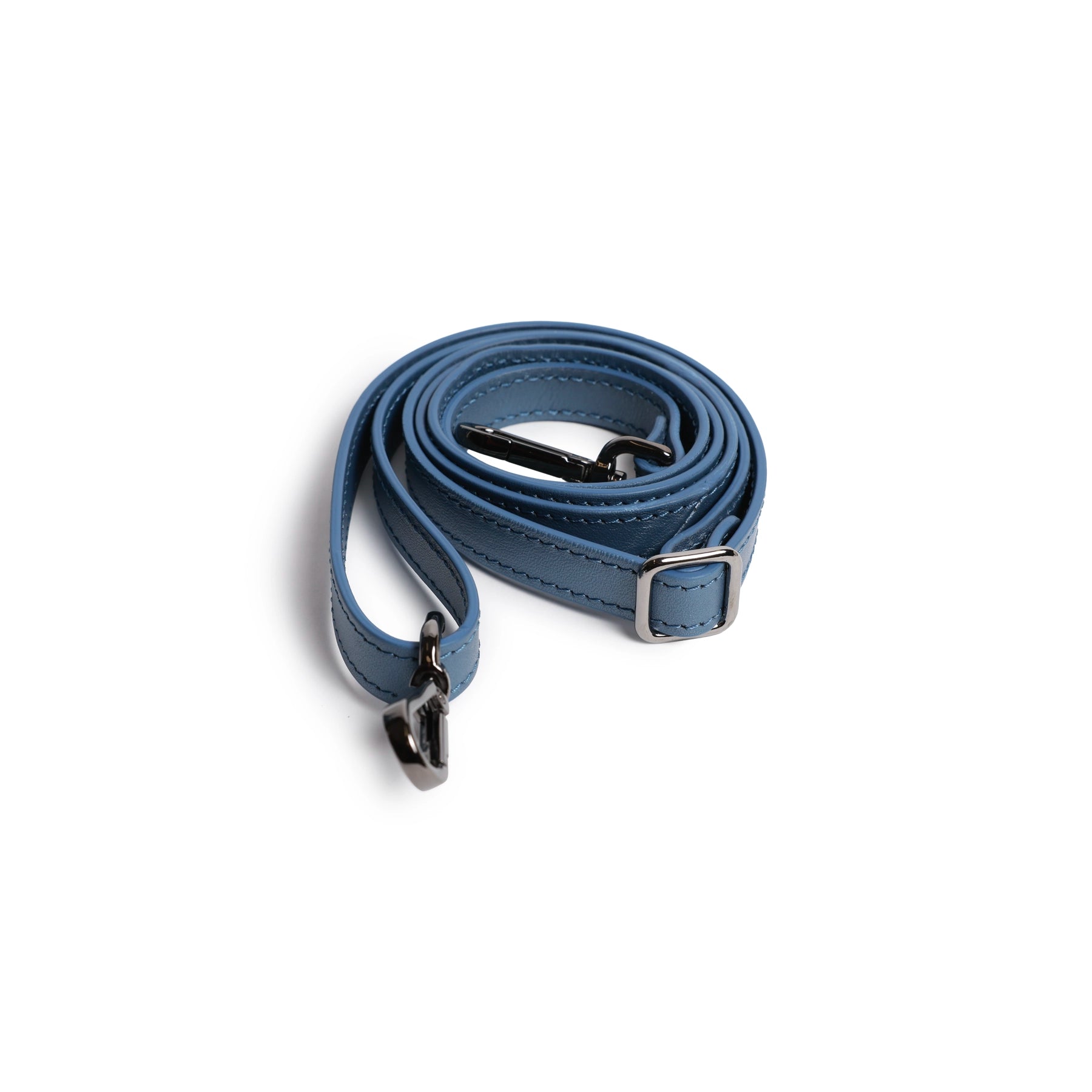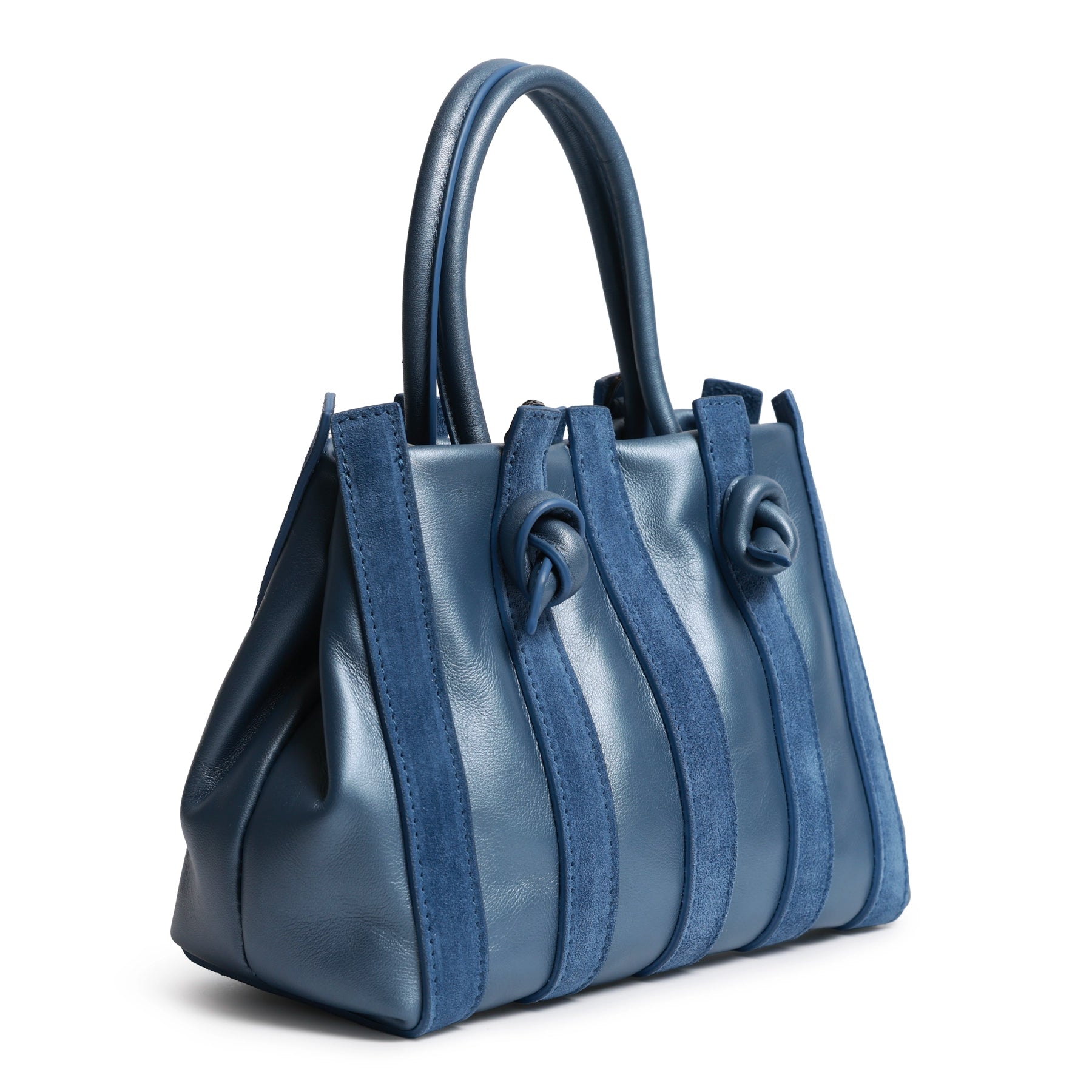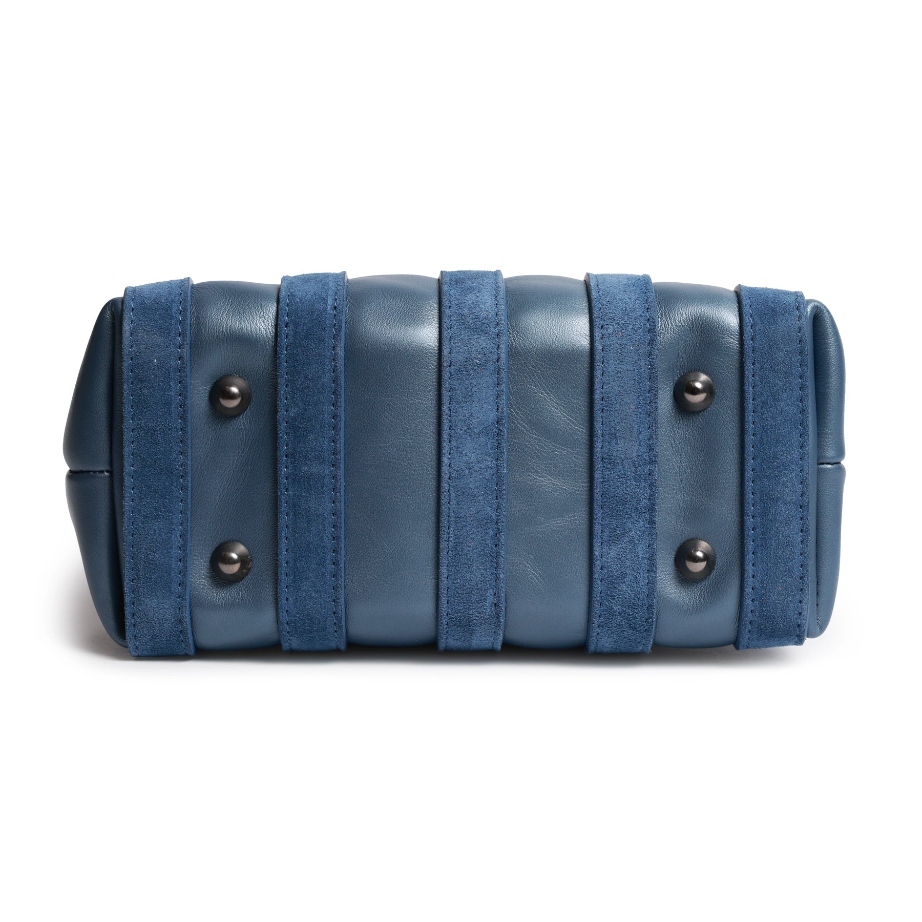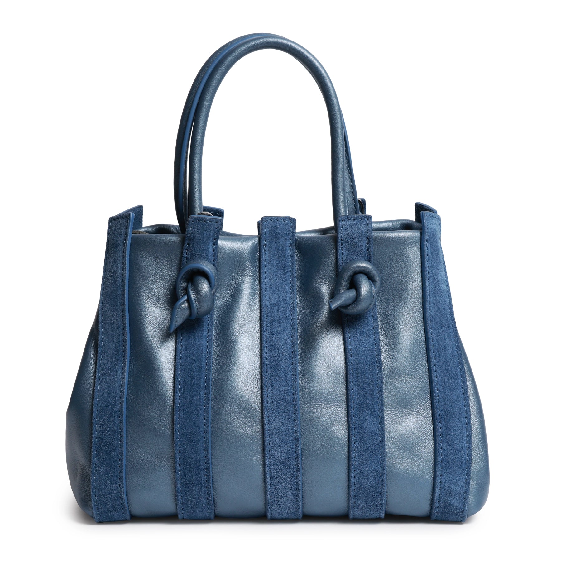 Stripes Medium Shopping Bag in Softy Baltico Blue and Suede Leather