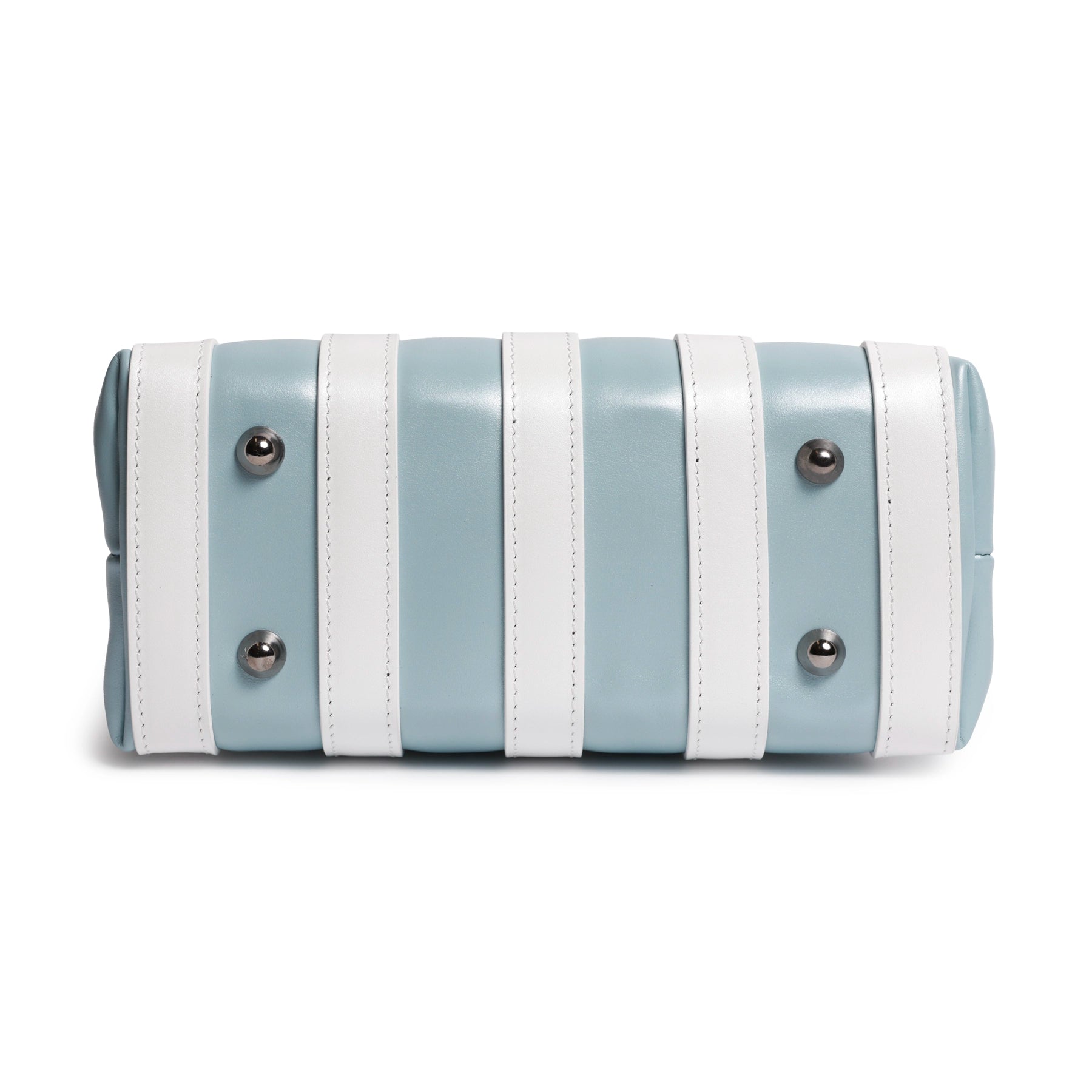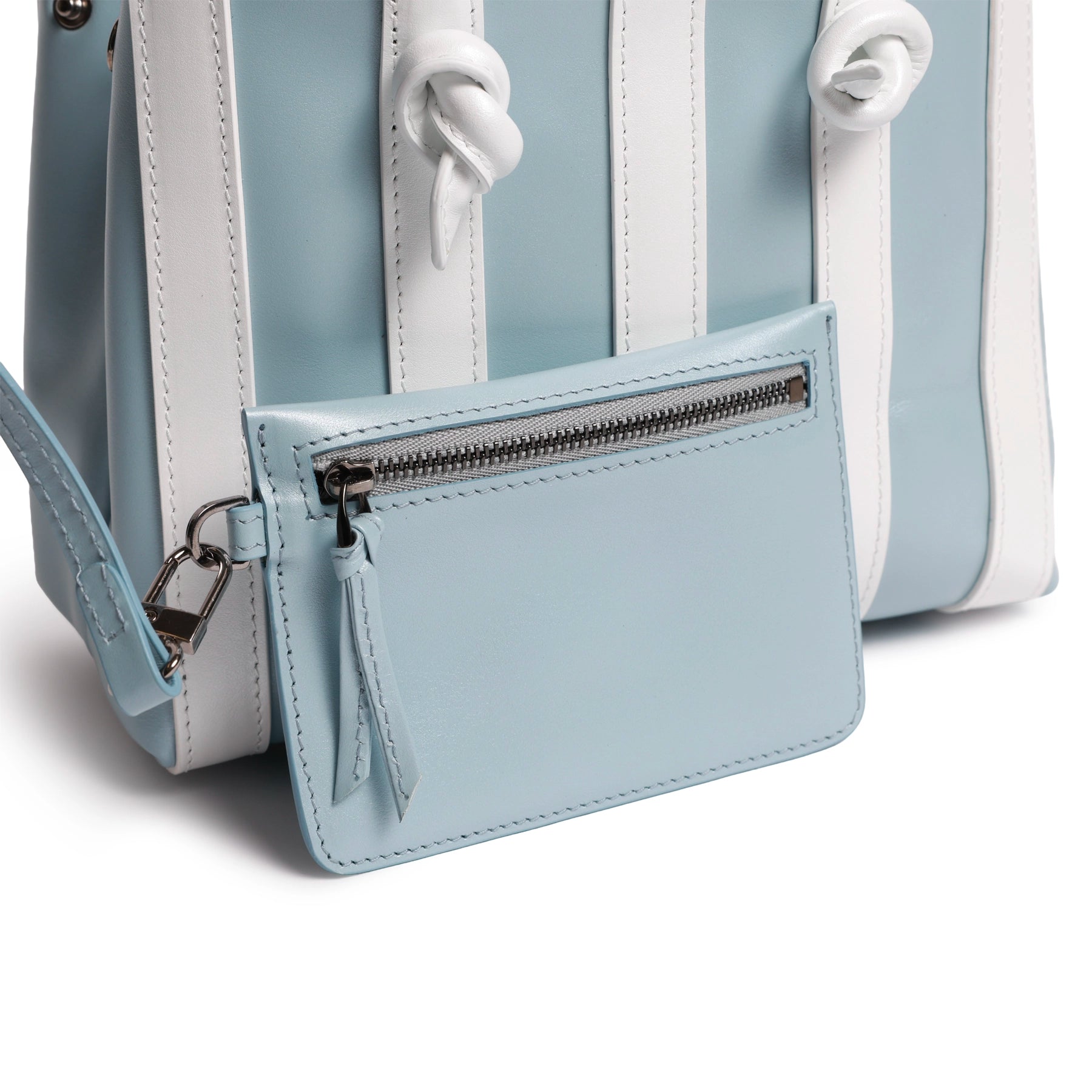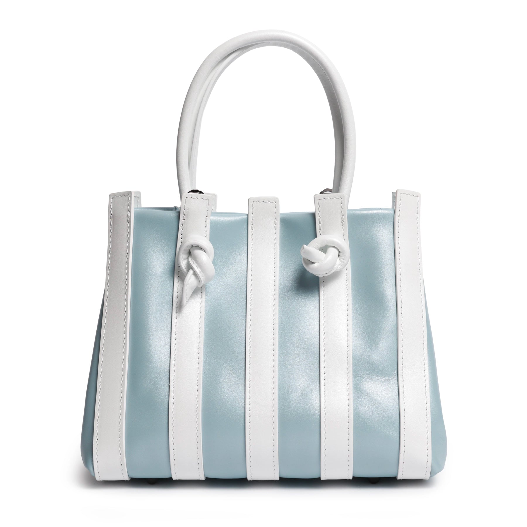 Stripes Medium Shopping Bag in Softy Leather Cielo and White