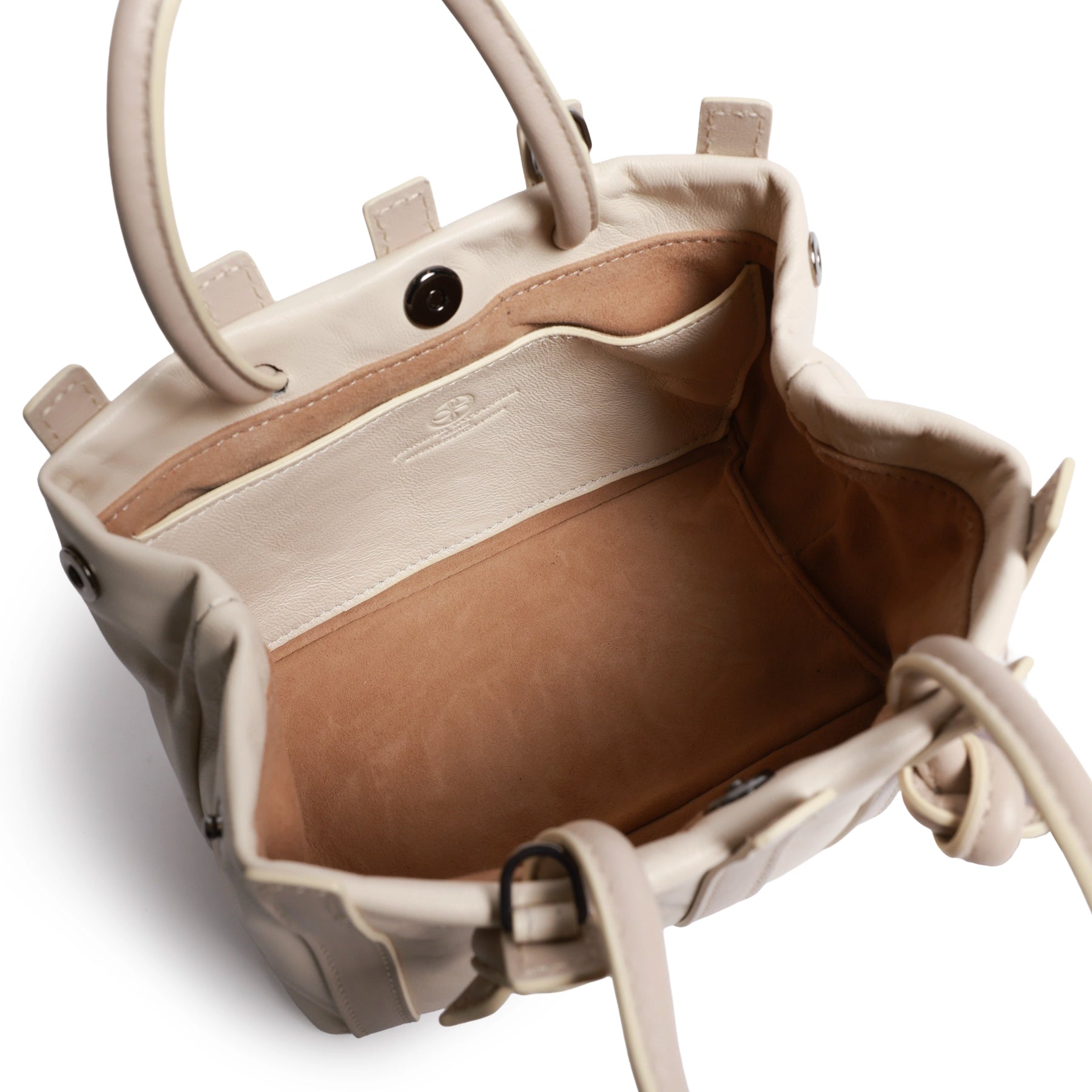 Our "Stripes" Mini Shopping Bag in Ivory and Cipria Nappa Leather is a thoughtfully designed blend of strength, style, and versatility. Crafted from premium top full grain leather with distinctive stripes detailing, this bag balances casual sophistication with everyday practicality.