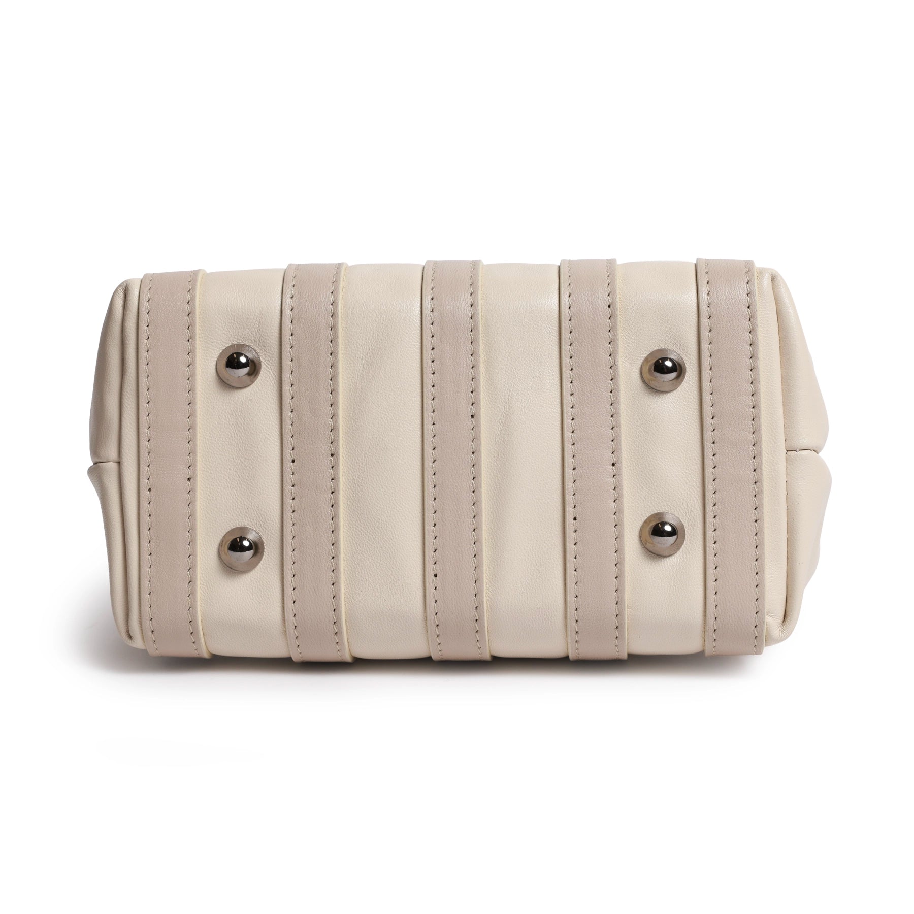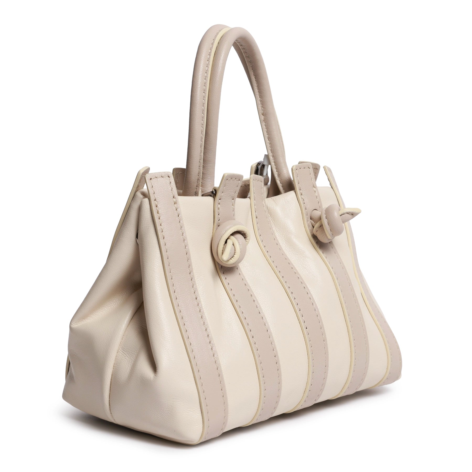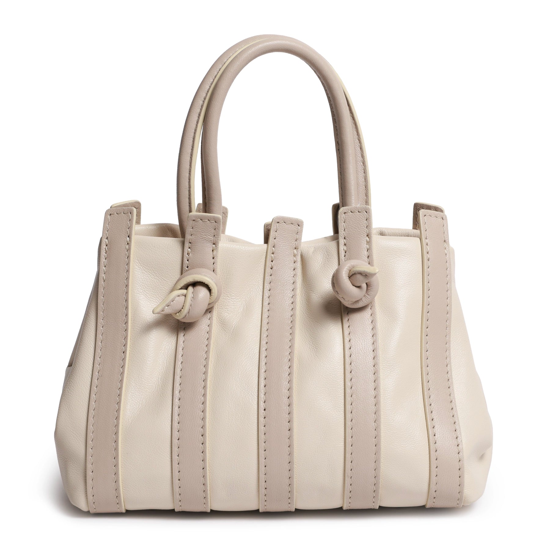 Stripes Mini Shopping Bag in Ivory and Cipria Nappa Leather
