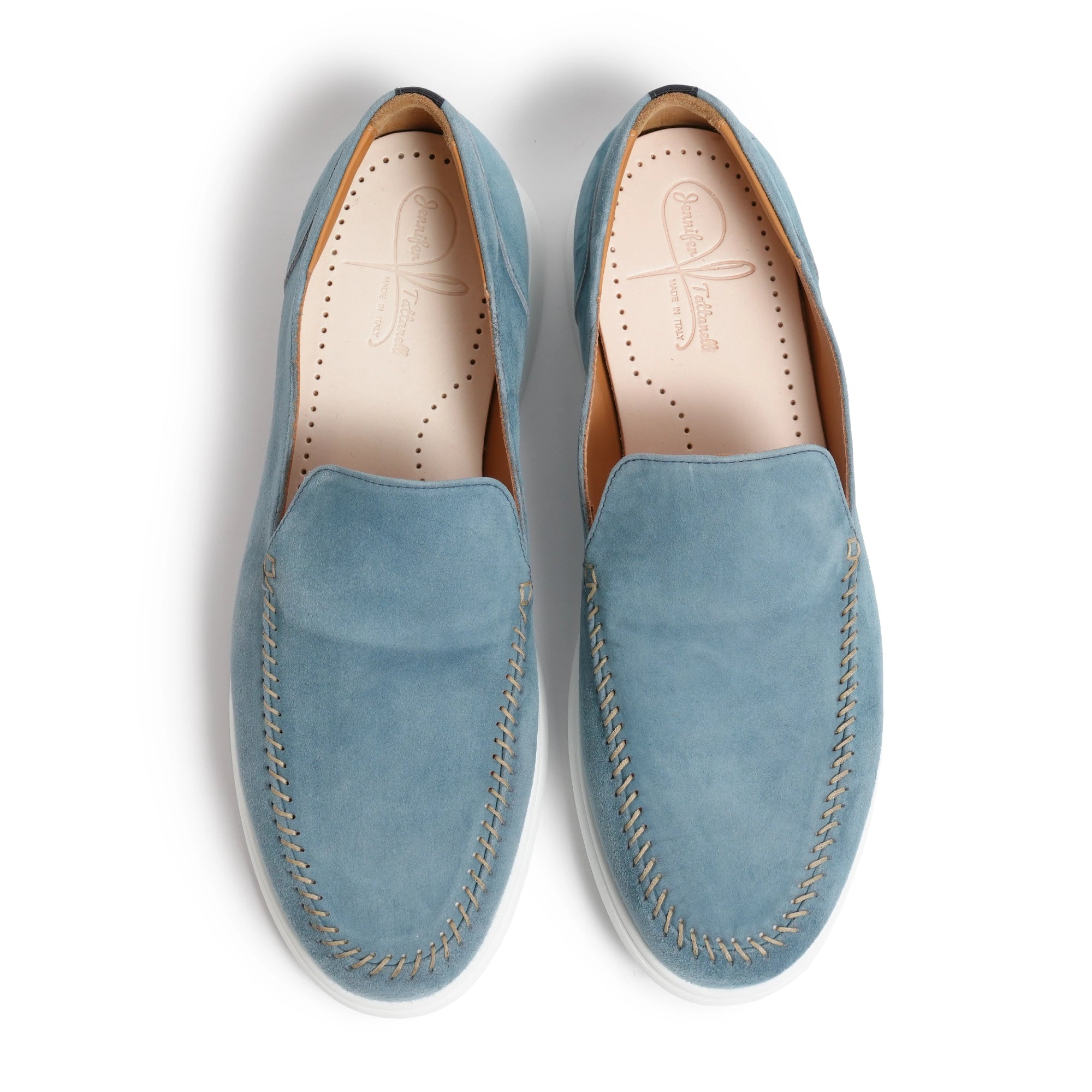 The Men’s Summer Walk Slip-On is handcrafted in Italy from soft suede in a Jeans Blue tone, combining relaxed elegance with everyday comfort. The upper is hand-stitched at the front, highlighting traditional Italian attention to detail.