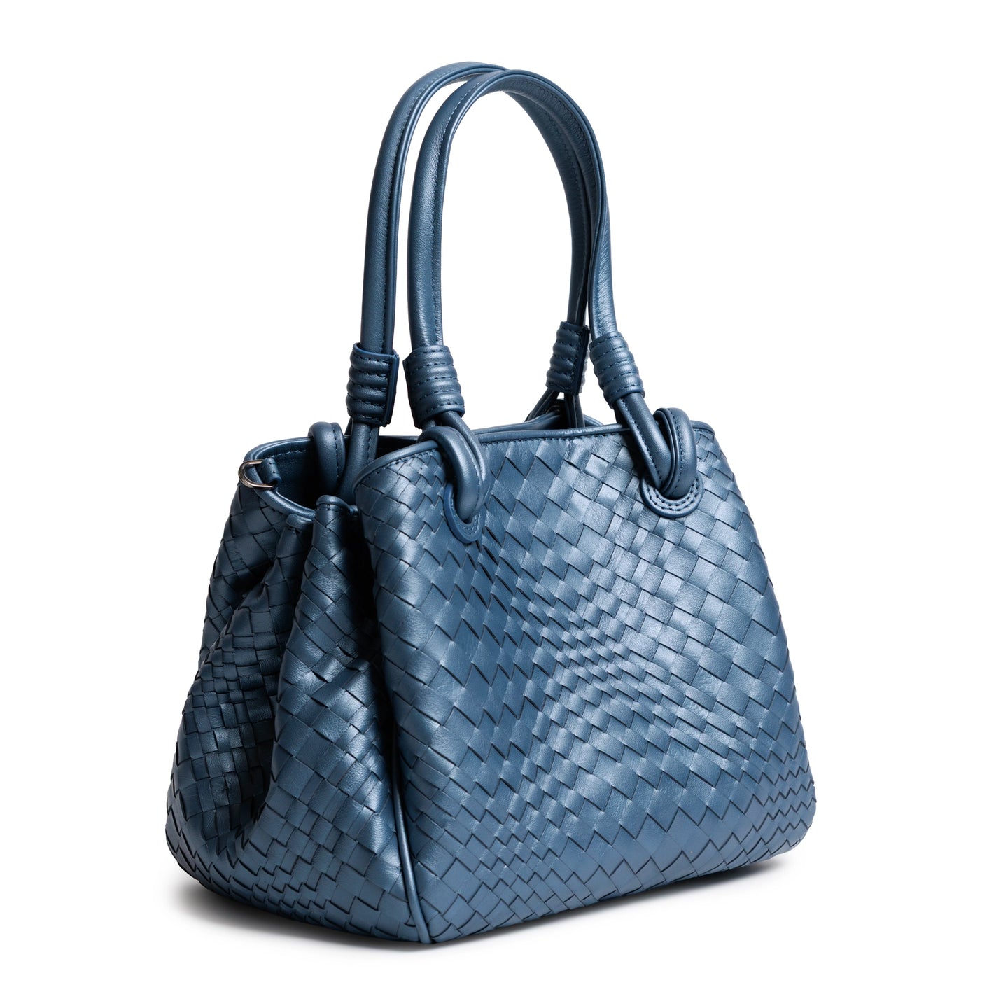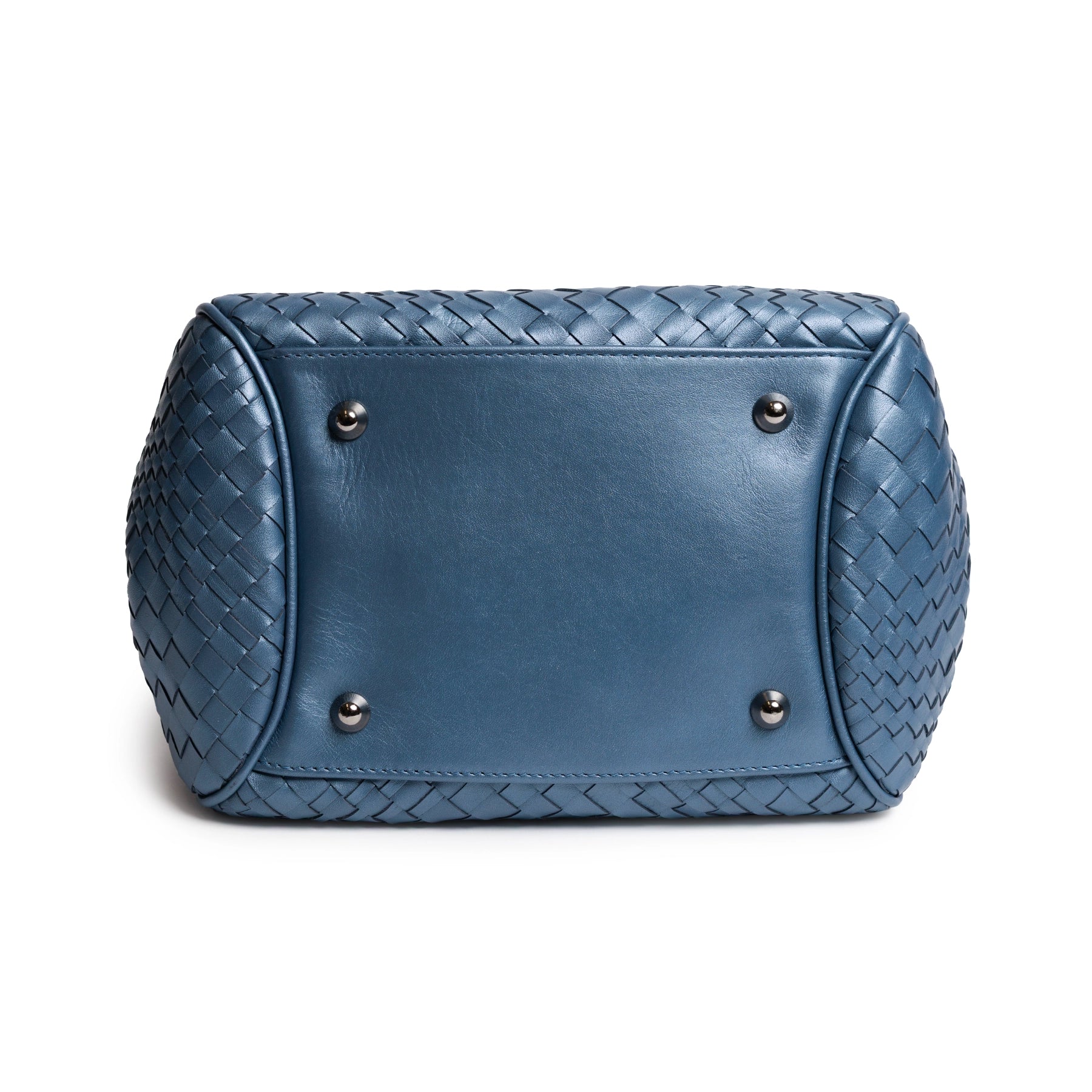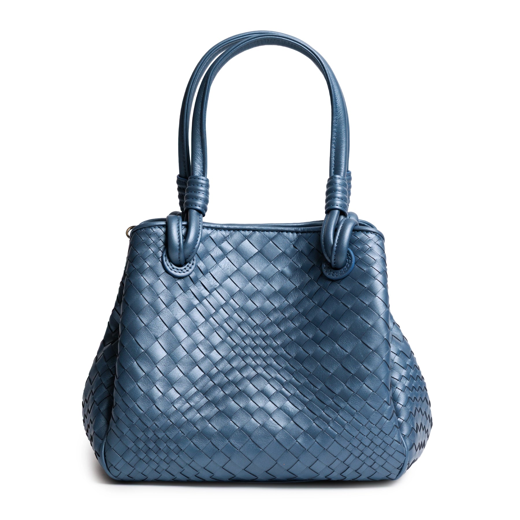 Top Handle Intrecciato Leather Bag in Softy Pearlized Baltico