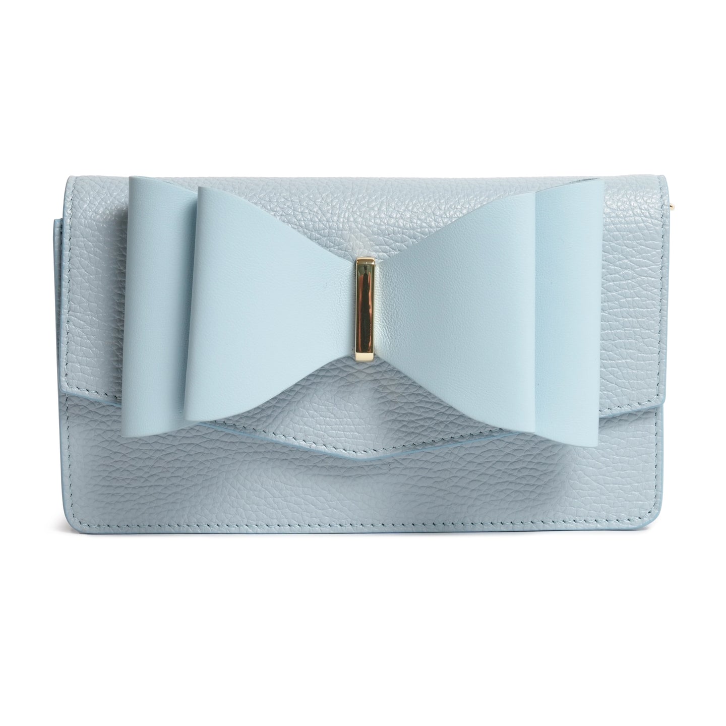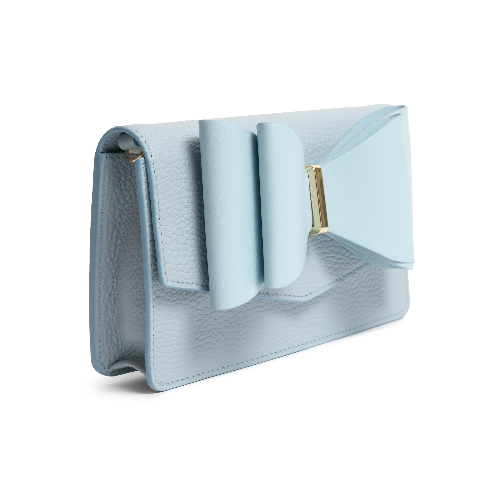 Woman Deer Leather Clutch with Bow in Celeste