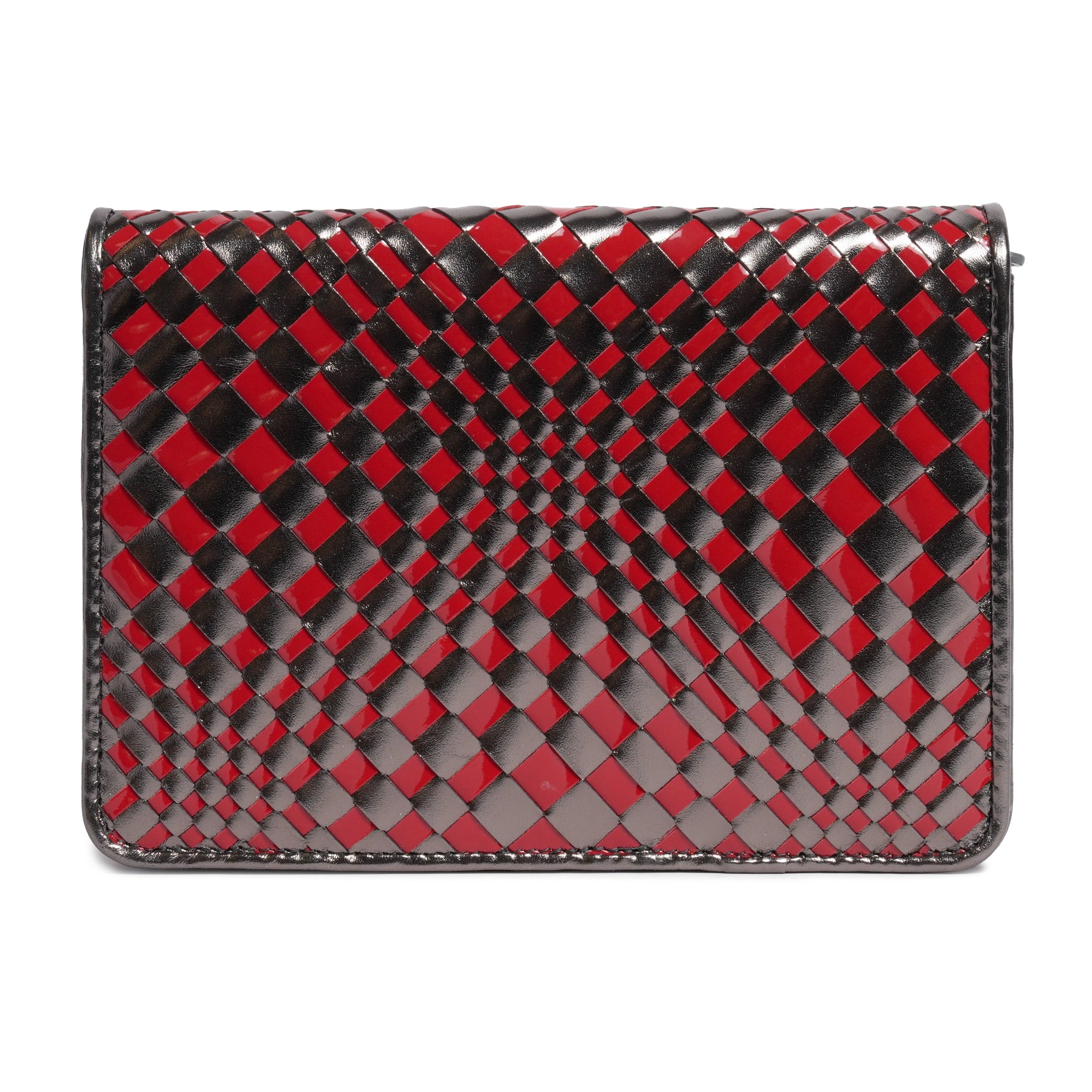 Woman Intrecciato Leather Cross Body Clutch in Gunmetal and Red