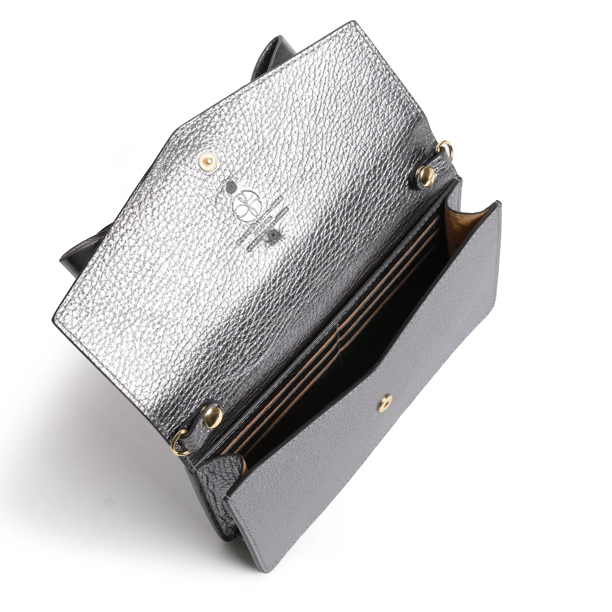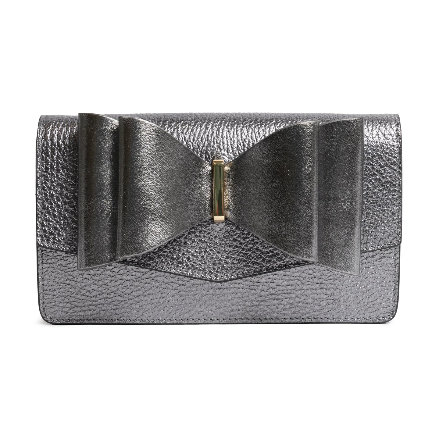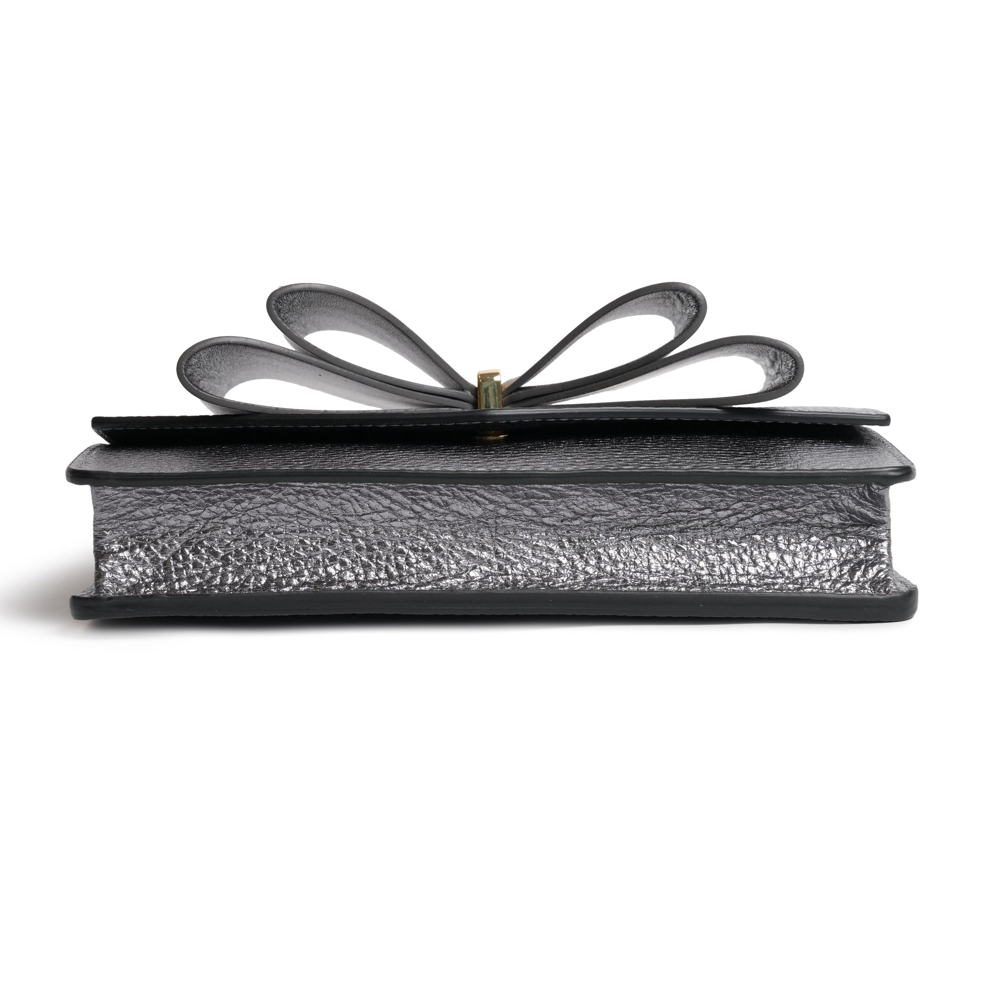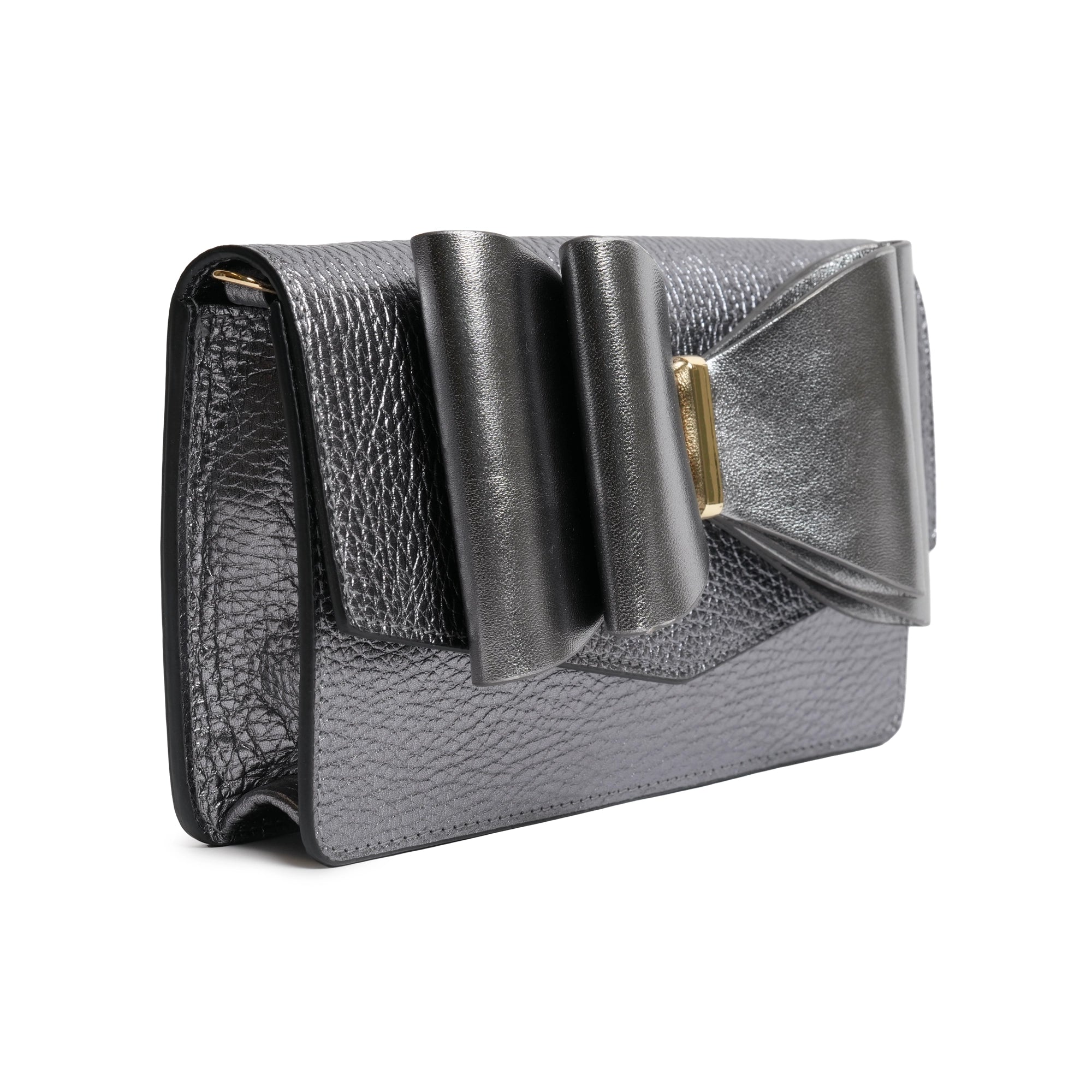Woman Laminated Leather Clutch with Bow in Gunmetal