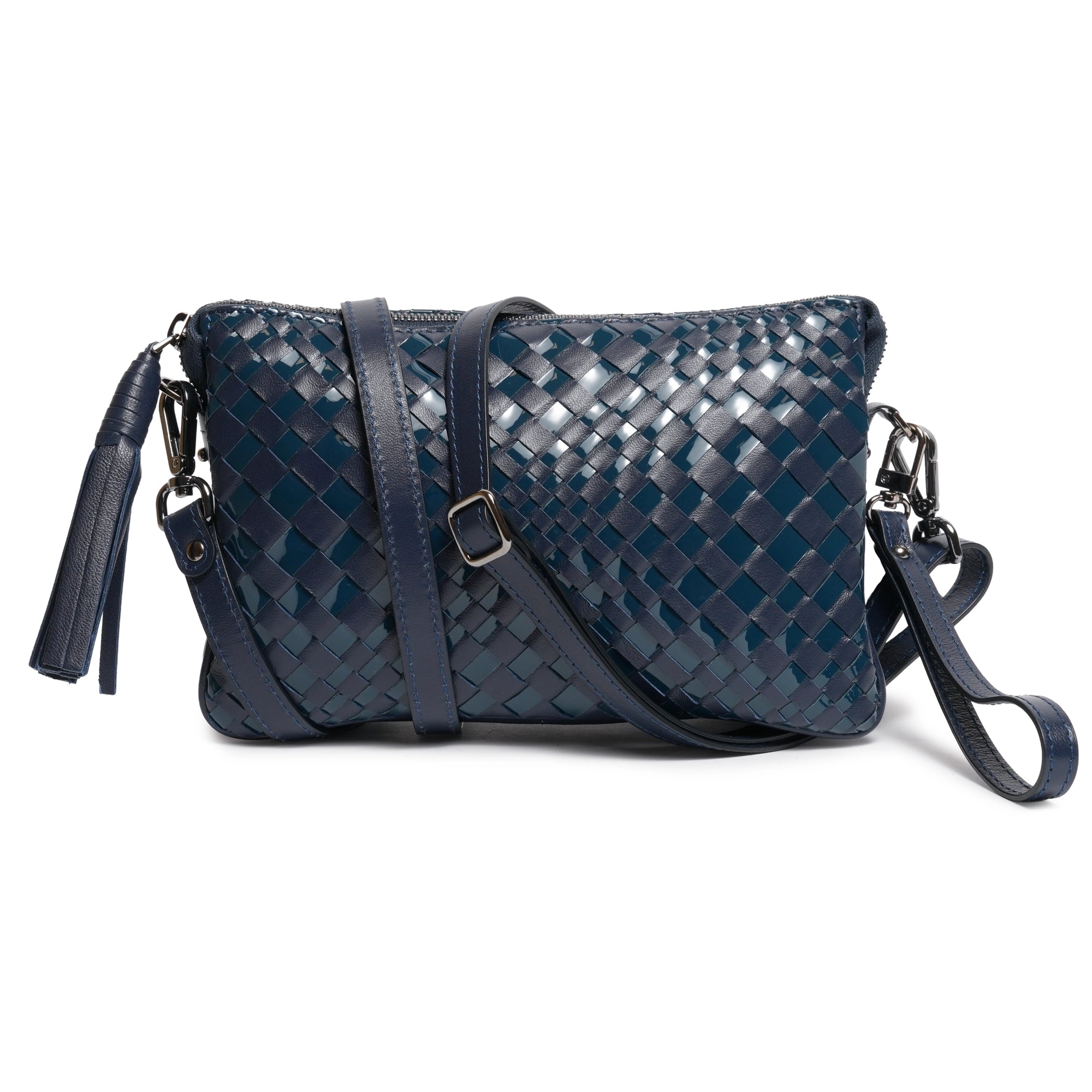 Woman Leather Clutch Intrecciato Optical in Nappa and Patent Carta da Zucchero
