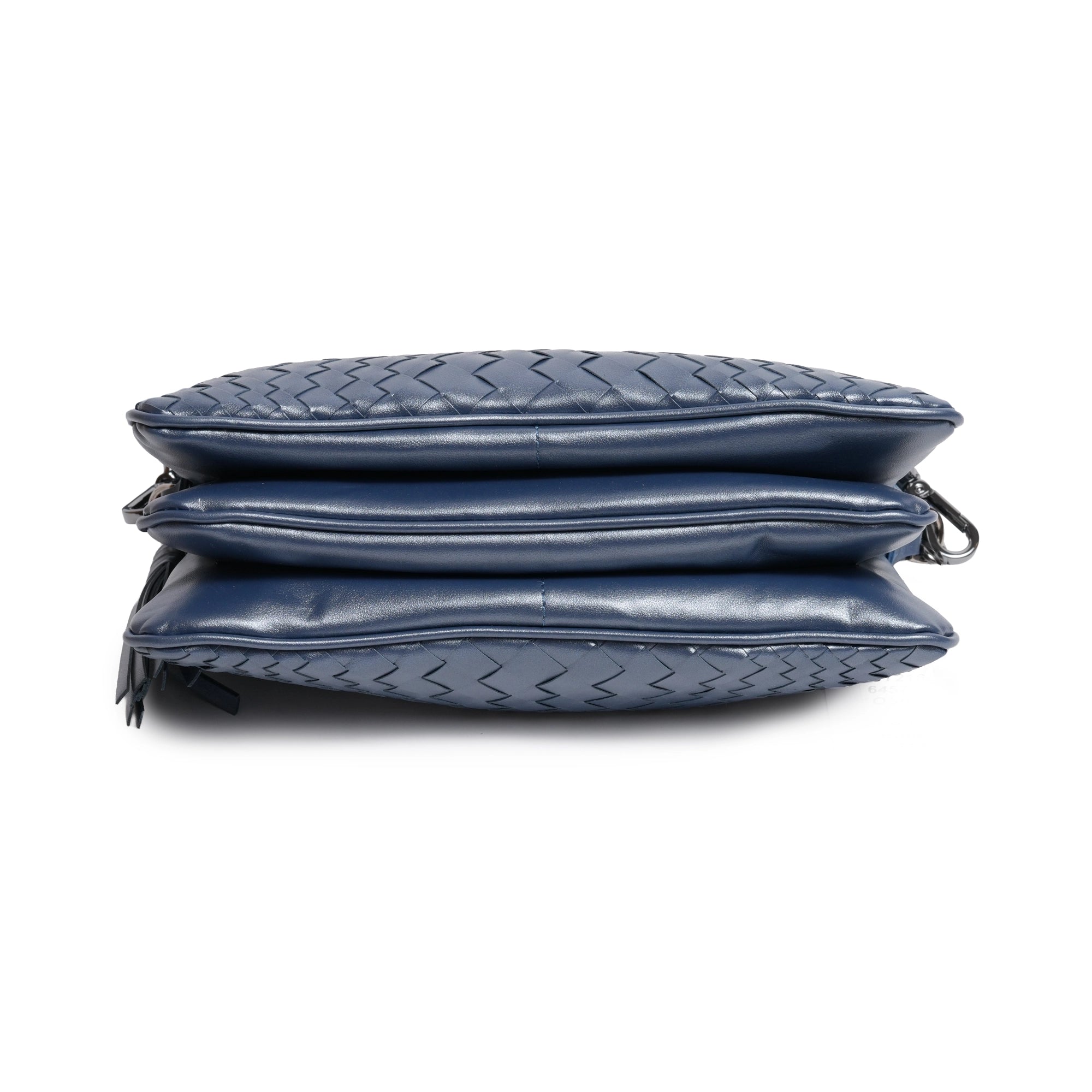 The Women's Intrecciato Leather Zippered Clutch in Optical Pearlized Blue (Avio Baltico) is a refined balance of craftsmanship and smart design. Handcrafted in Italy, this sleek accessory features the signature Intrecciato weaving technique reimagined with a bold optical pattern—giving a modern twist to a timeless classic.