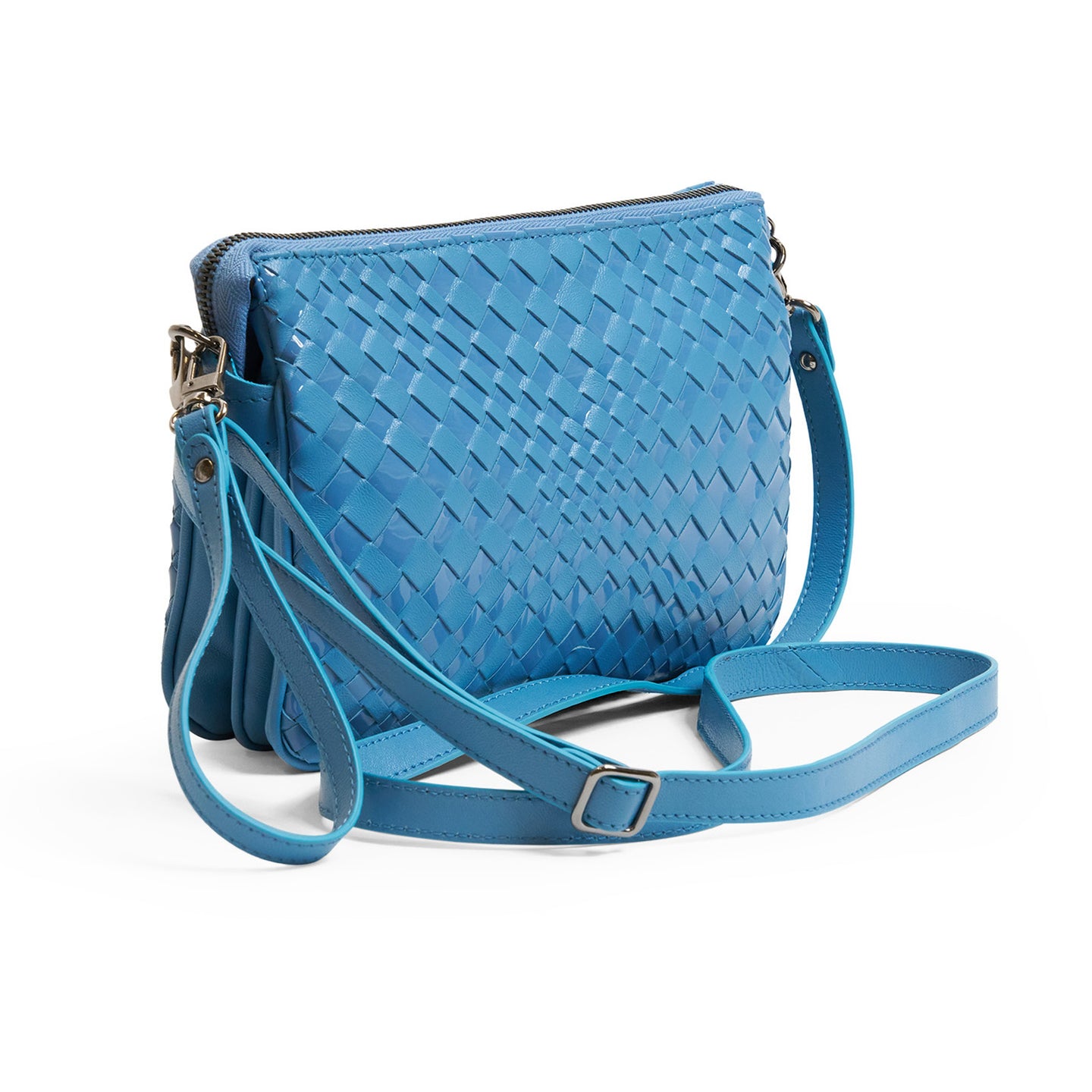 Woman Leather Clutch Intrecciato Optical Nappa Patent Marino Blue