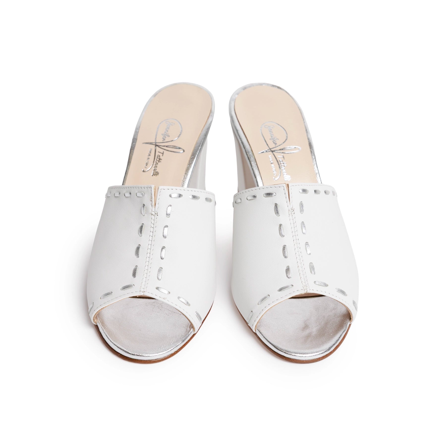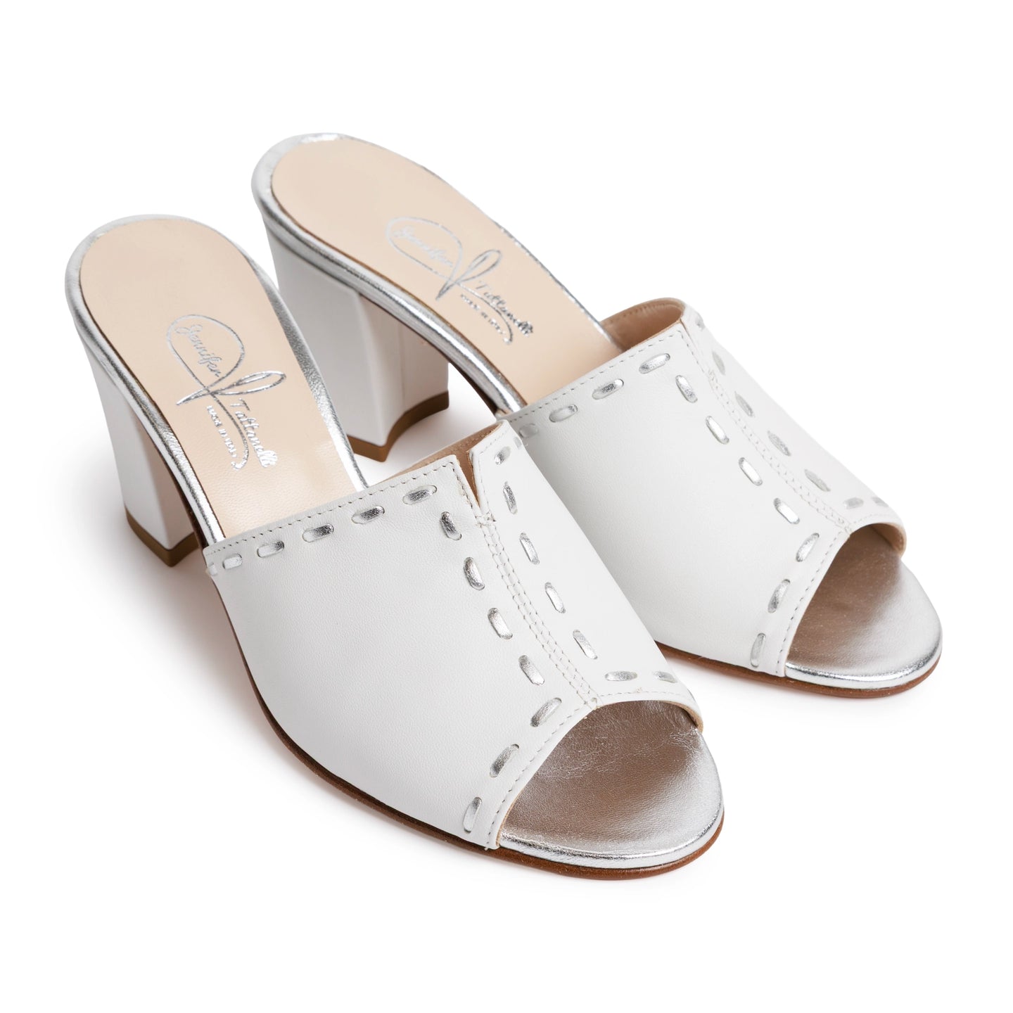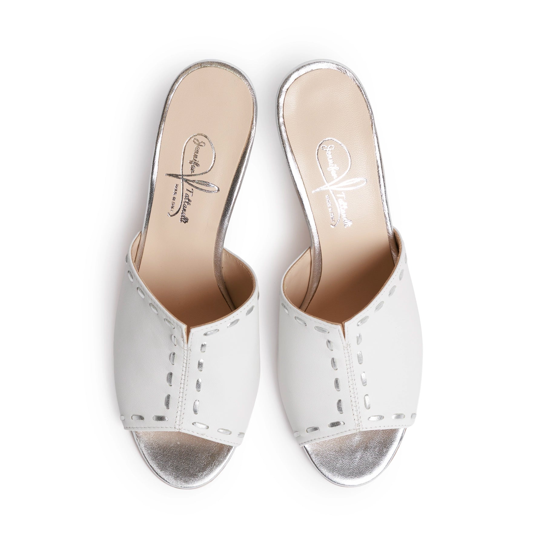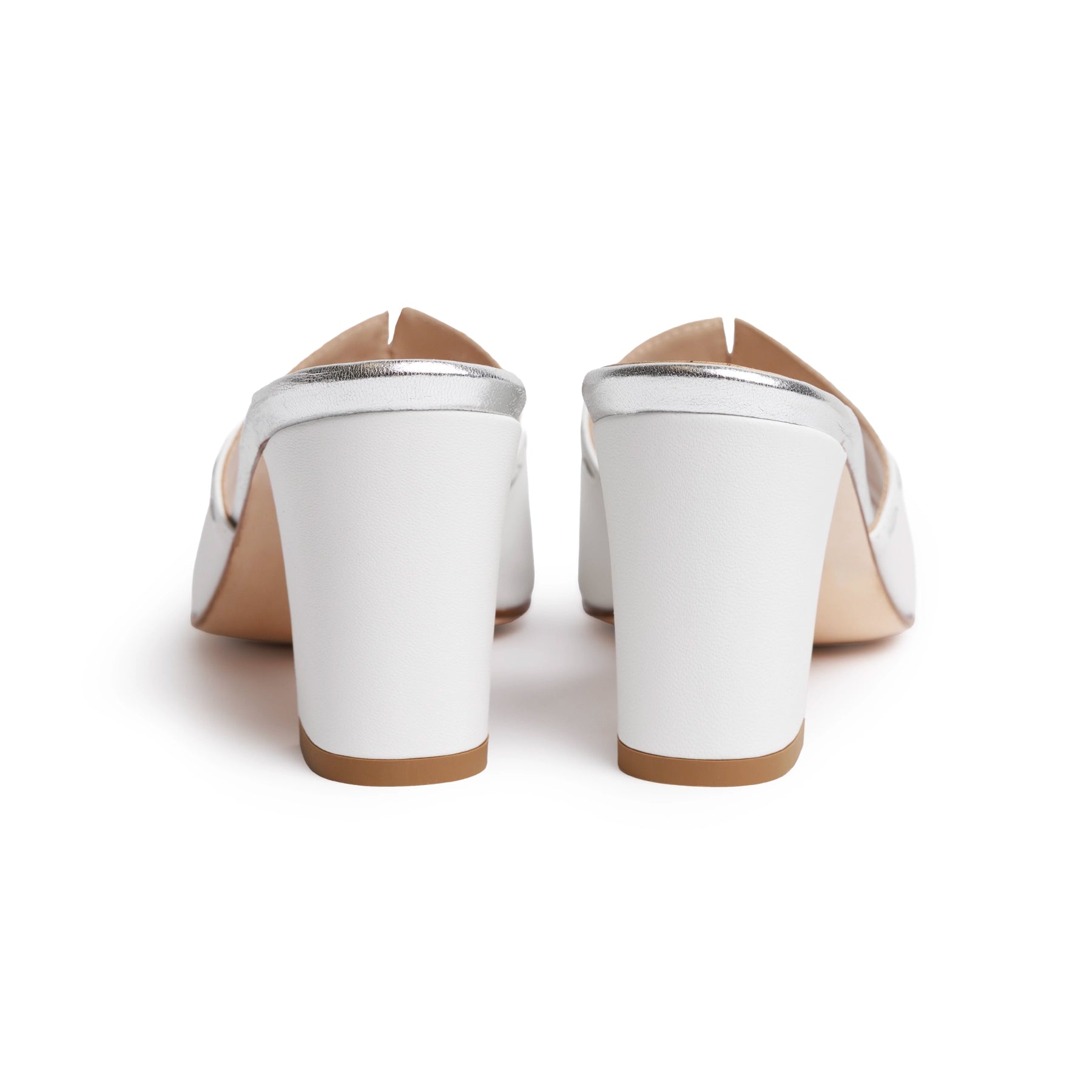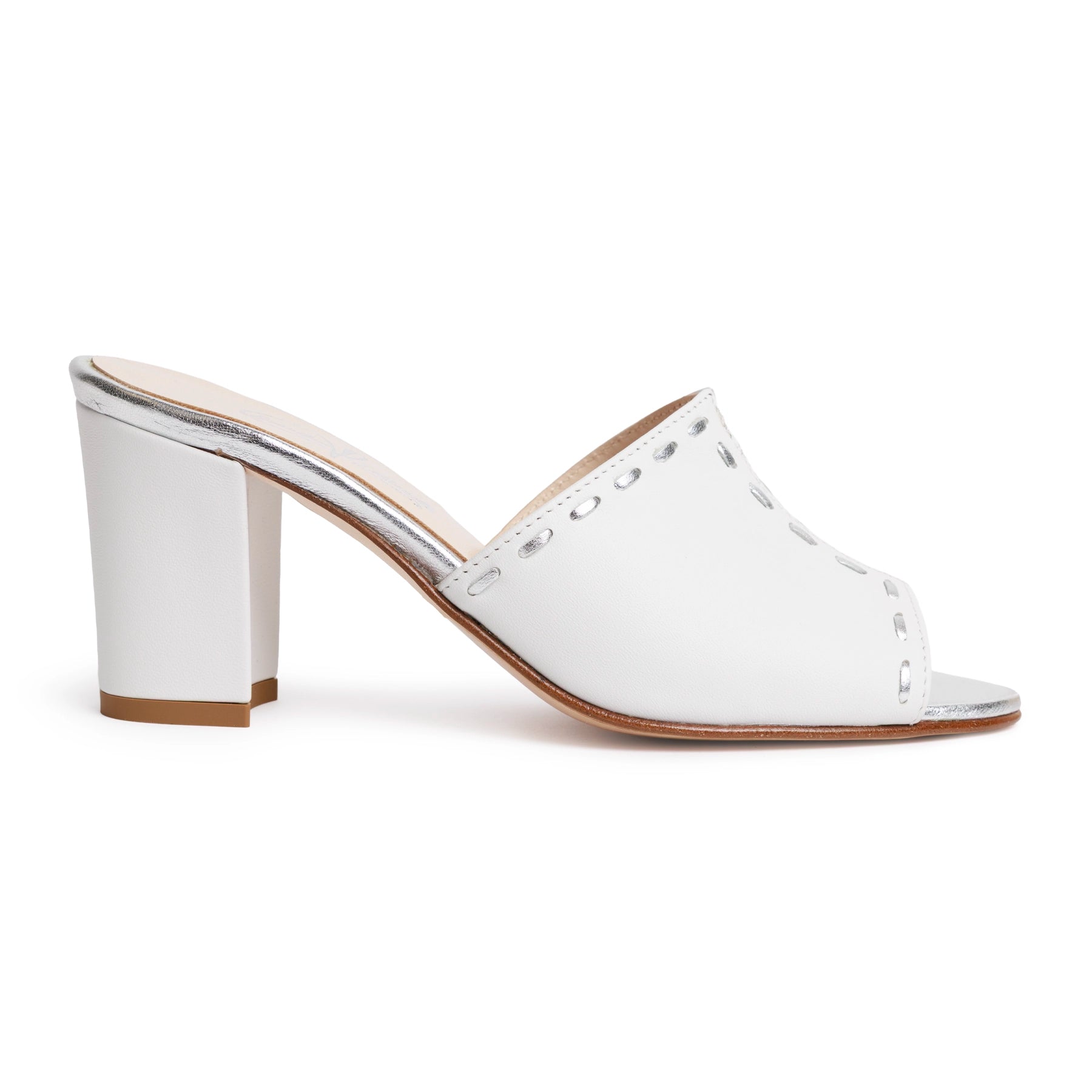 Women Block Heel Nappa Leather Slip-on Sandals in White
