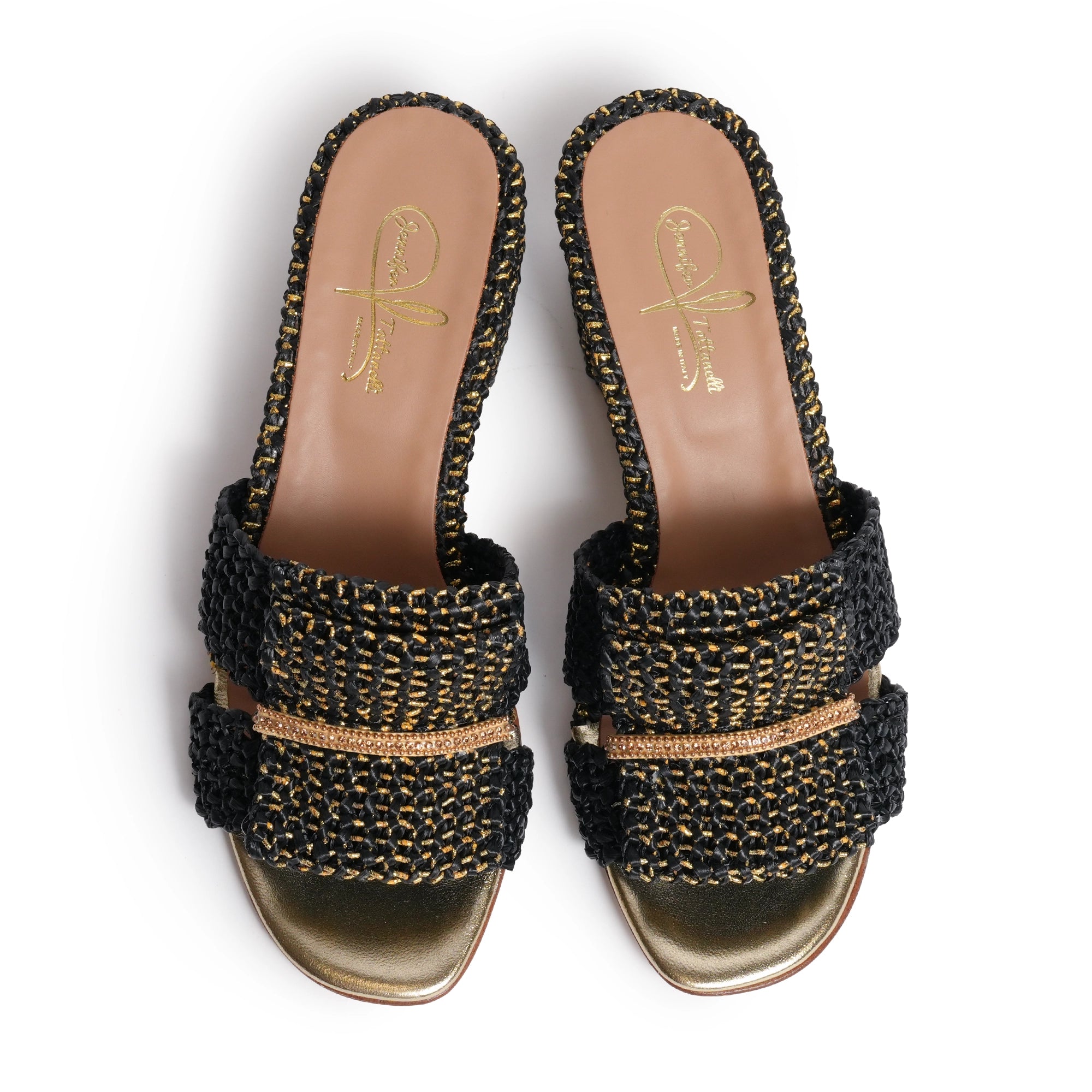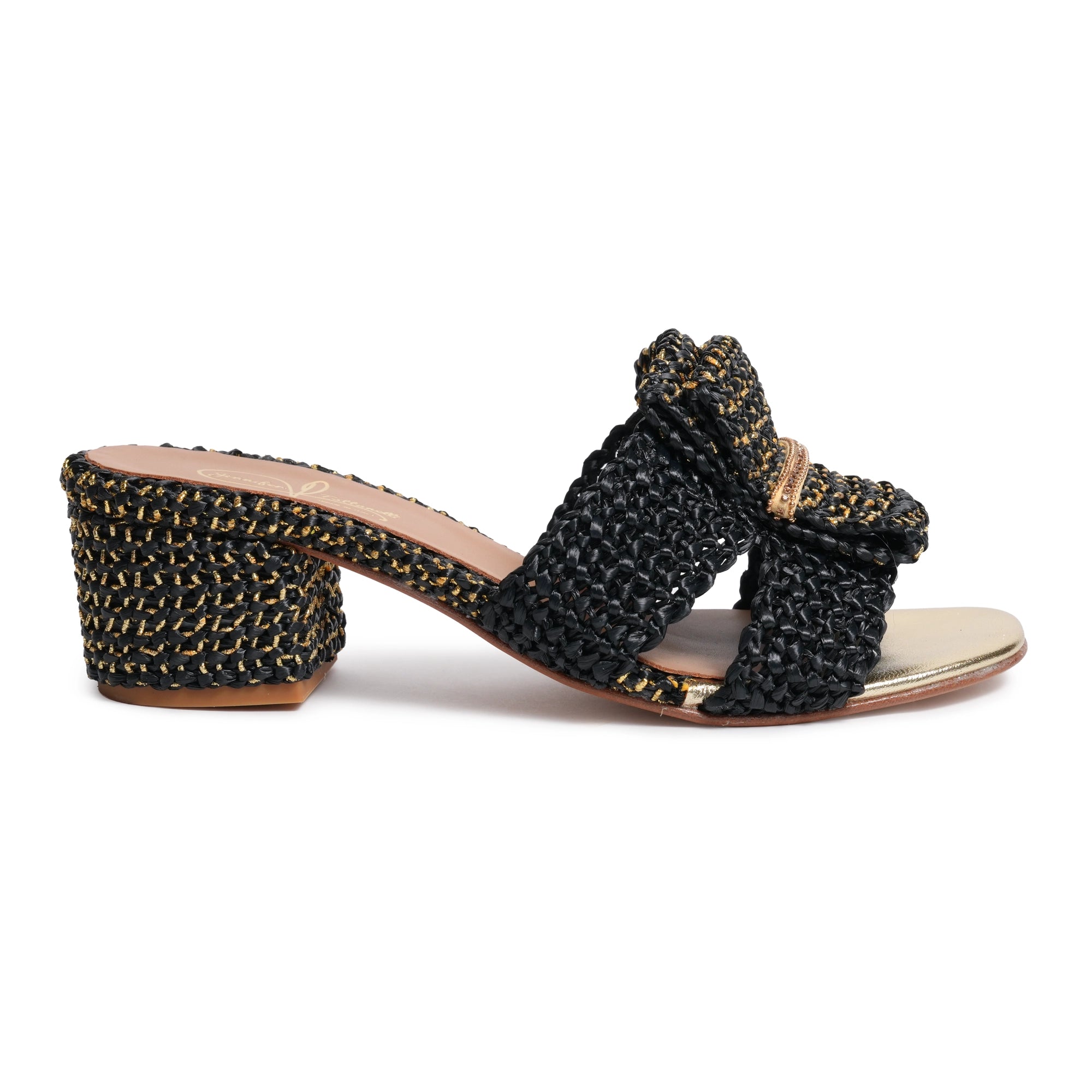 Women’s Block Heel Slip-On Sandal in Black with Jewel Detail
