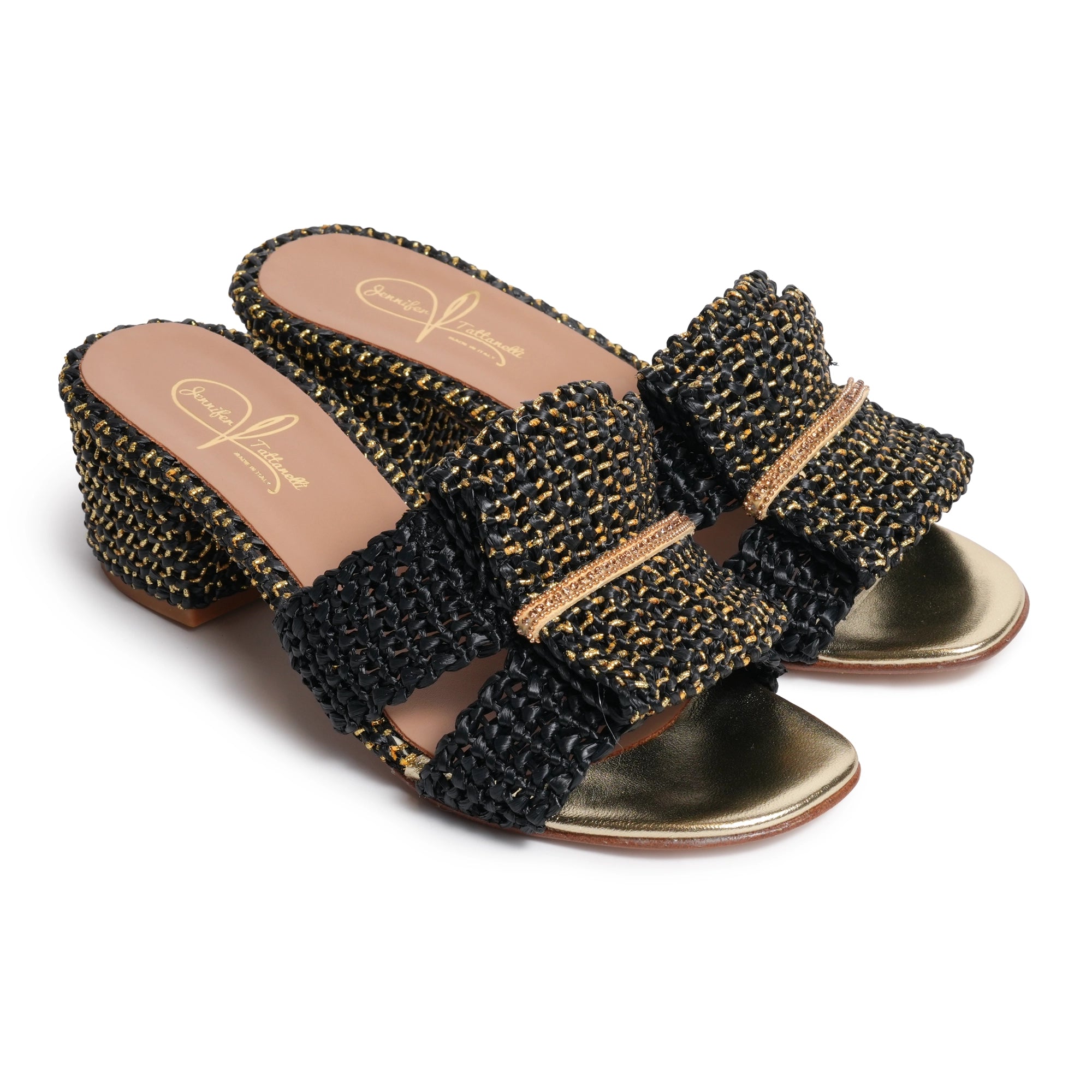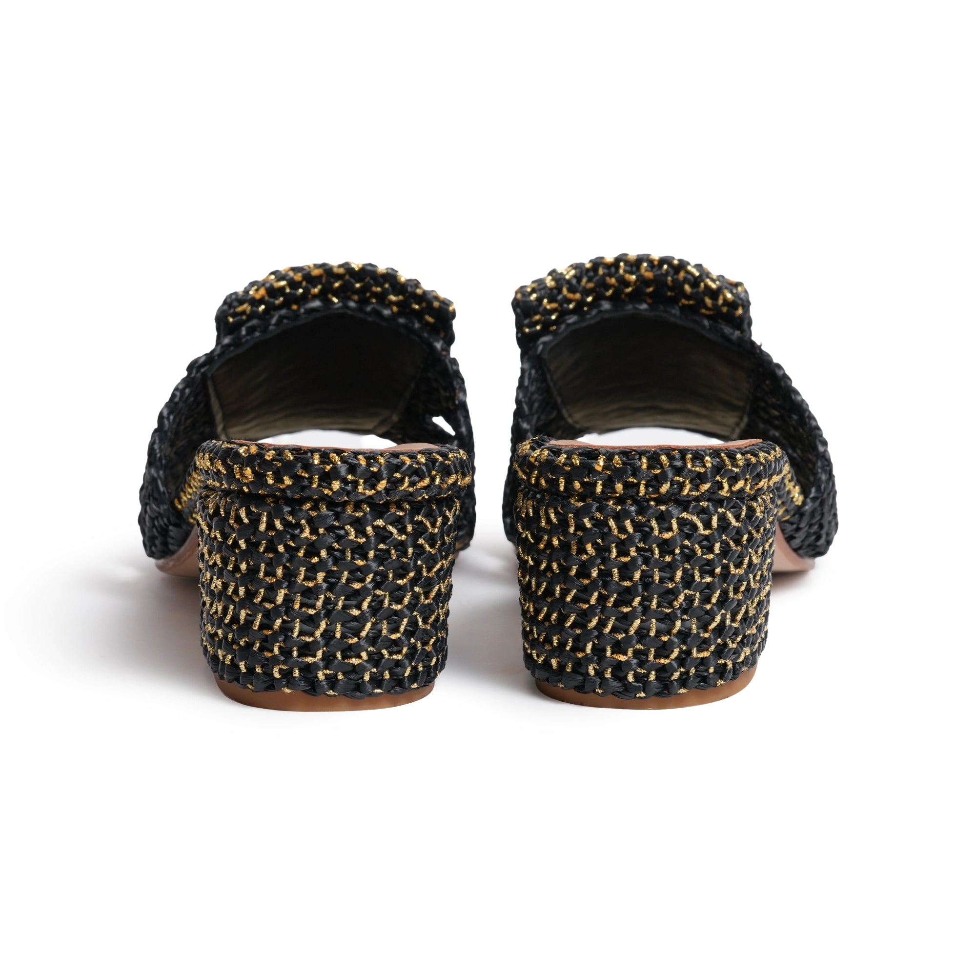 Step into effortless elegance with these Women’s Block Heel Slip-On Sandals. Crafted from shimmering raffia, they offer a chic, modern twist on a classic design.