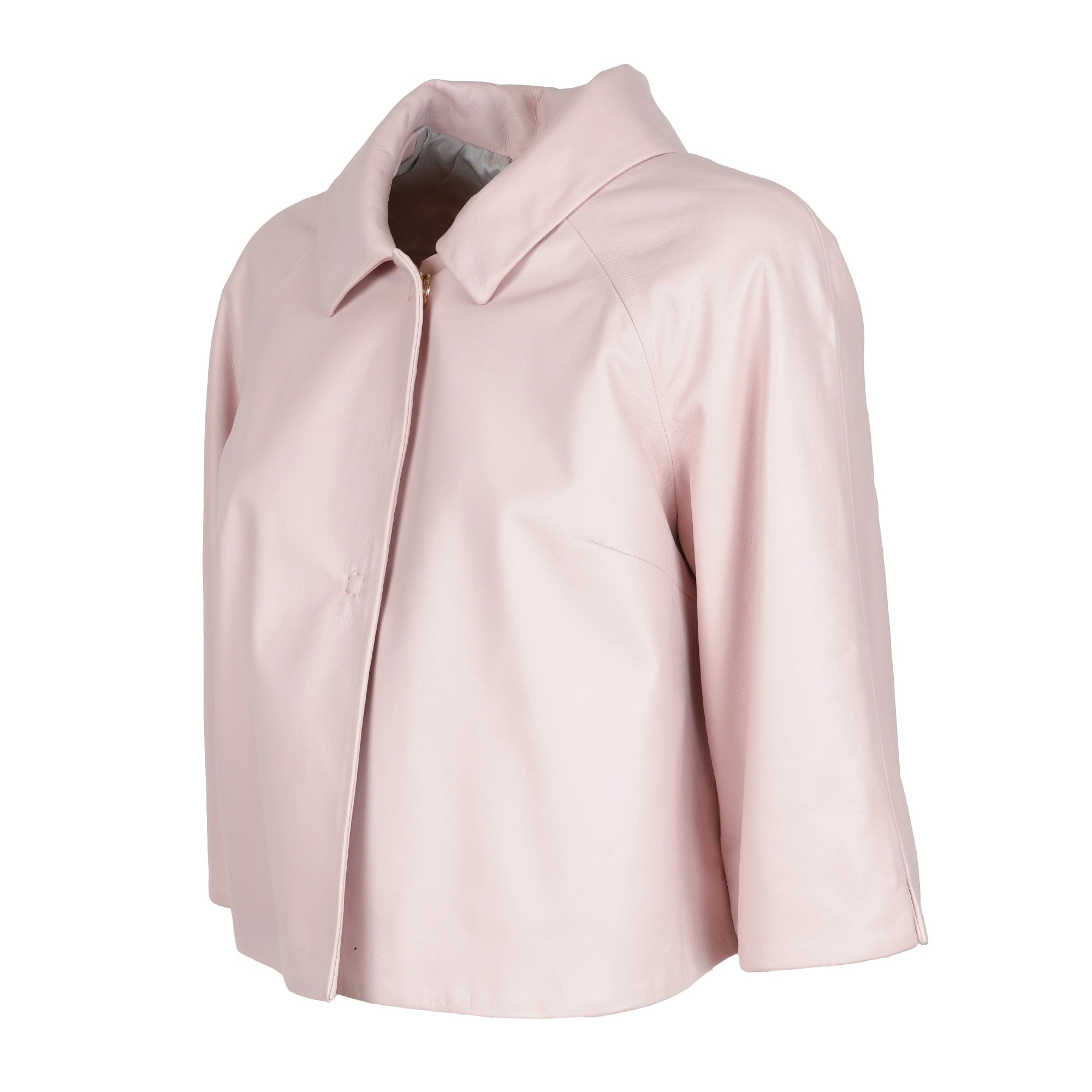 Elevate your wardrobe with this ultra-chic Women’s Cropped Nappa Leather Jacket in Pink.