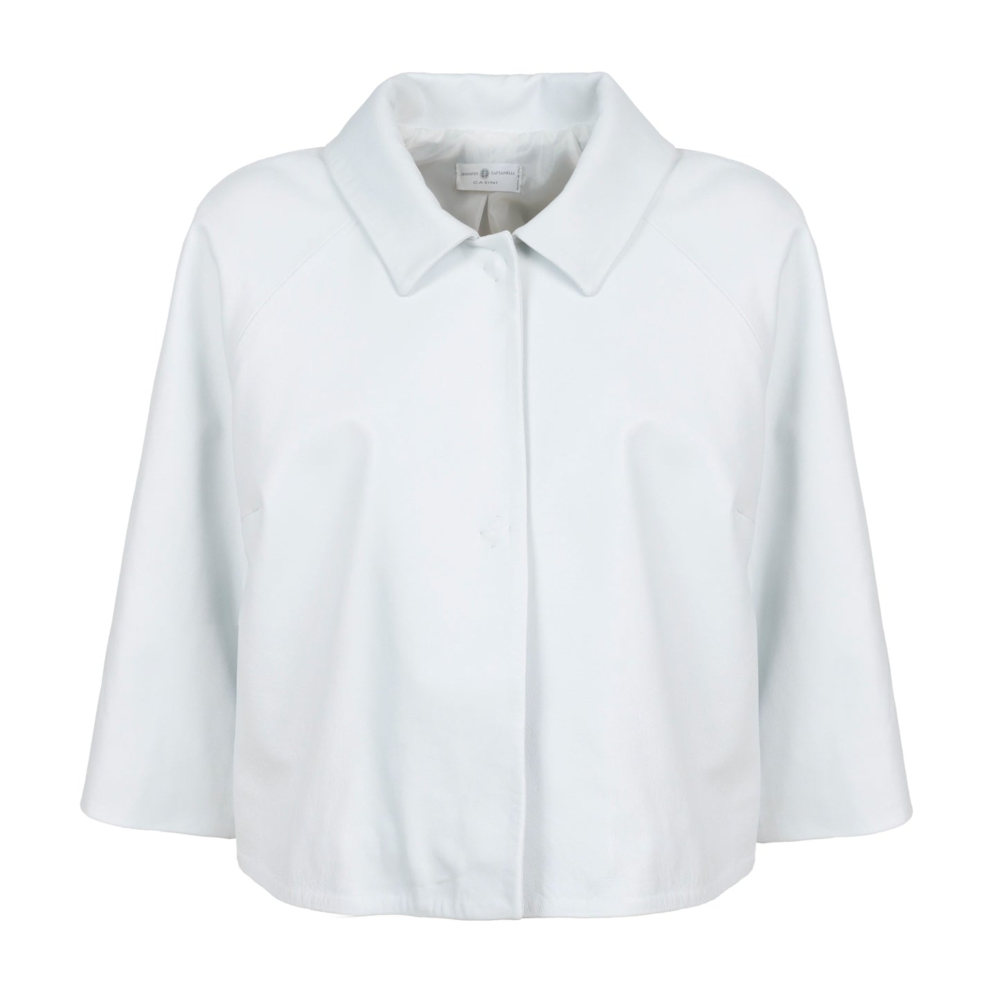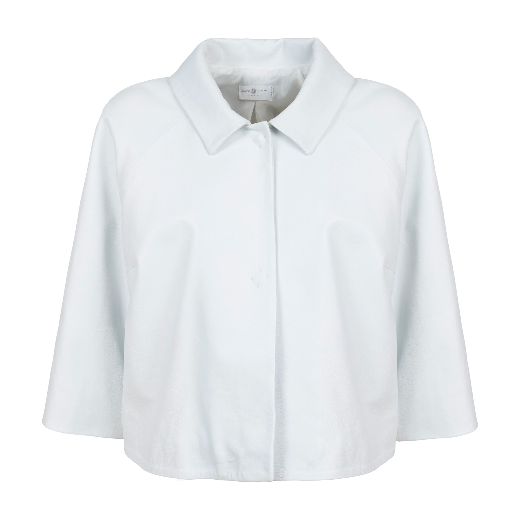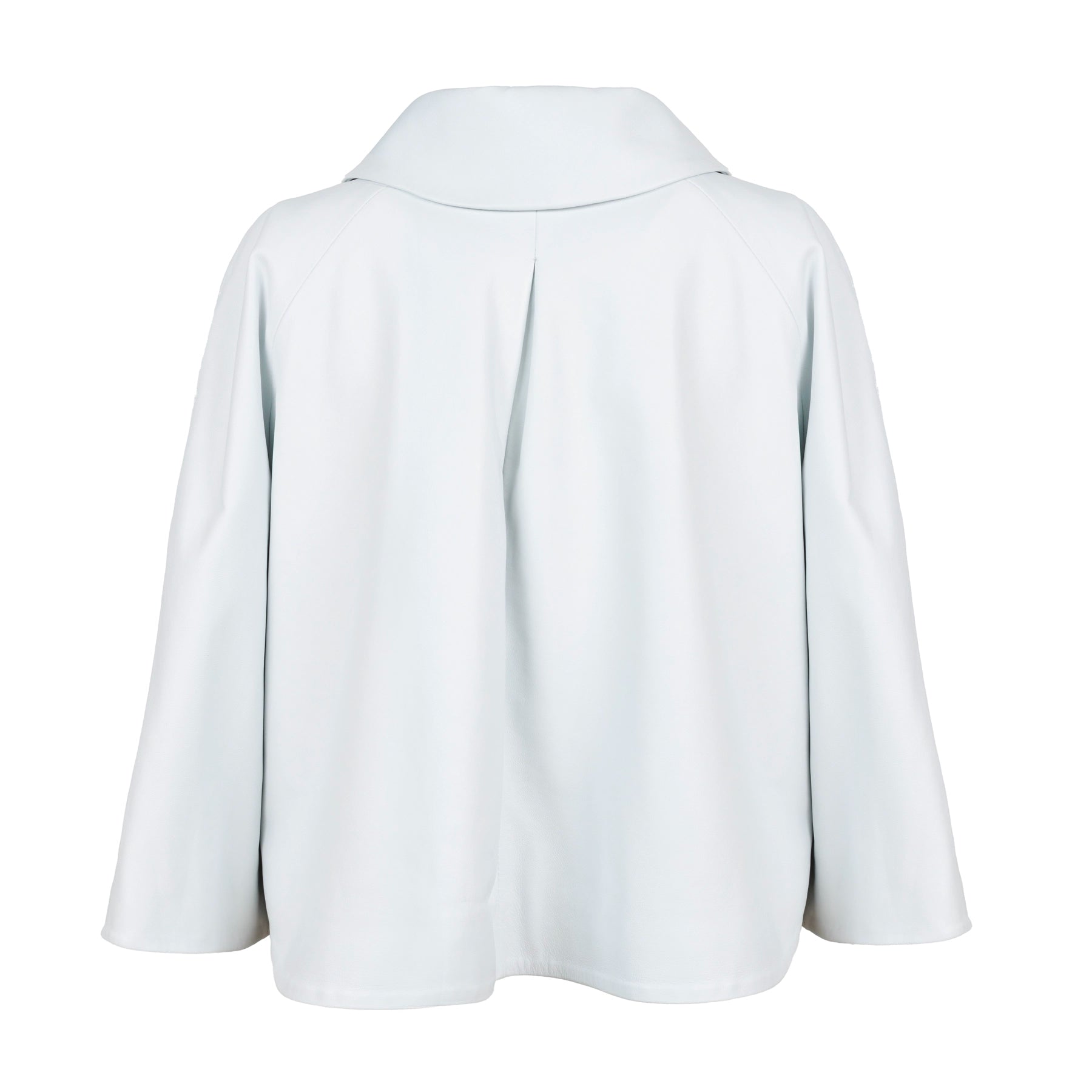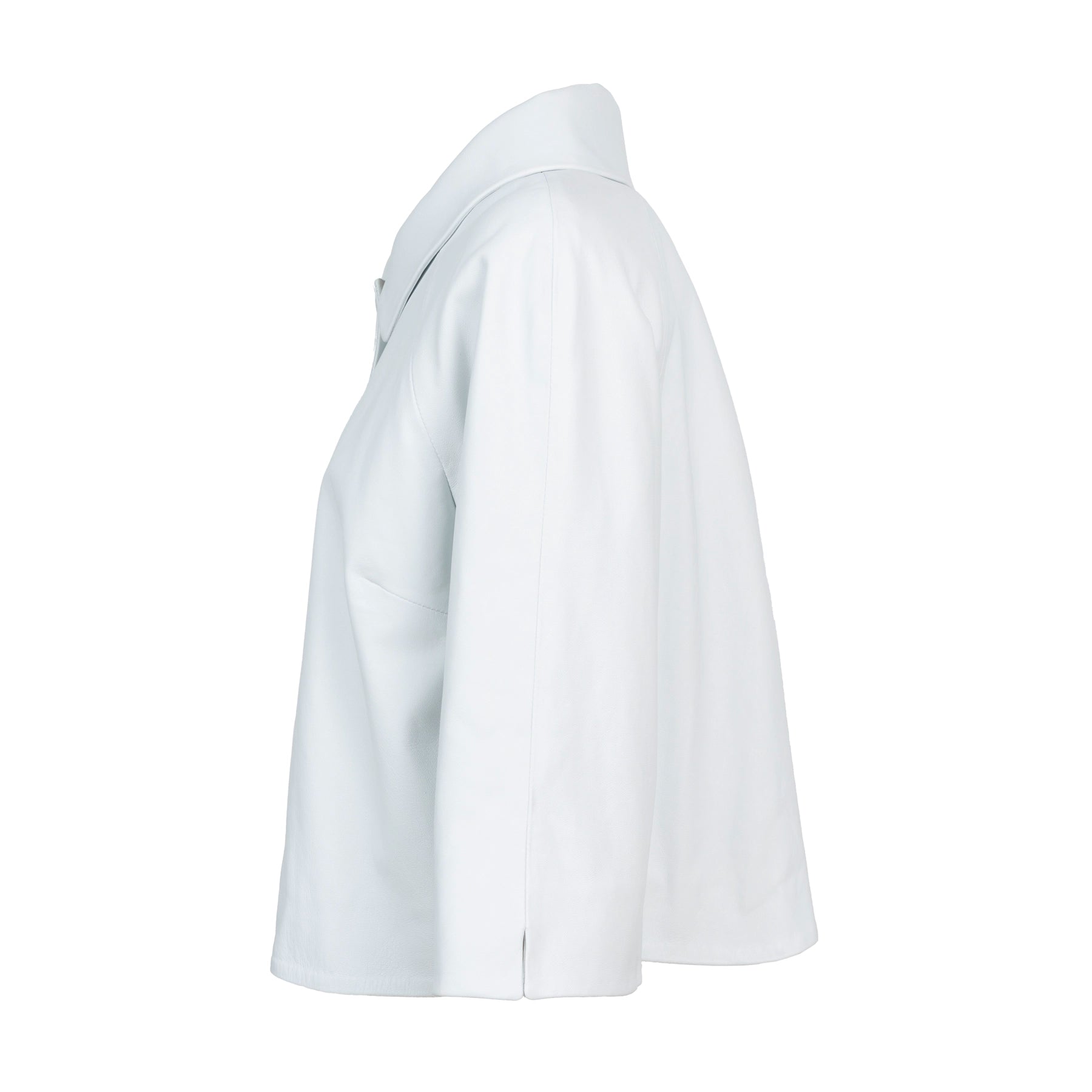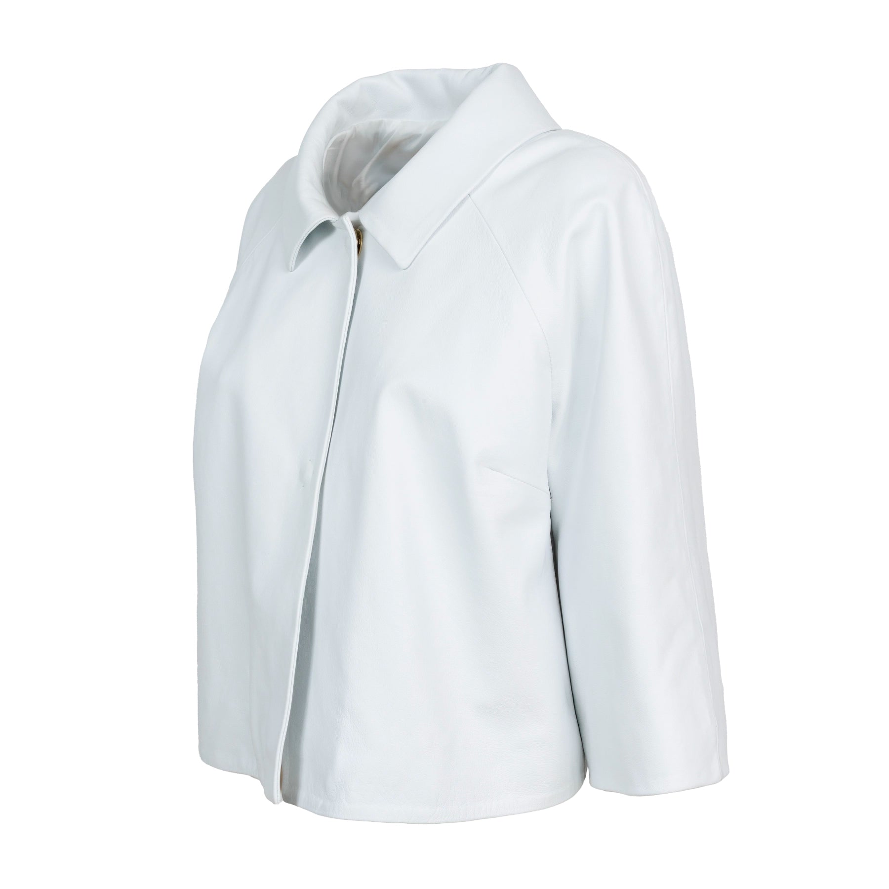 Elevate your wardrobe with this ultra-chic Women’s Cropped Nappa Leather Jacket in White.