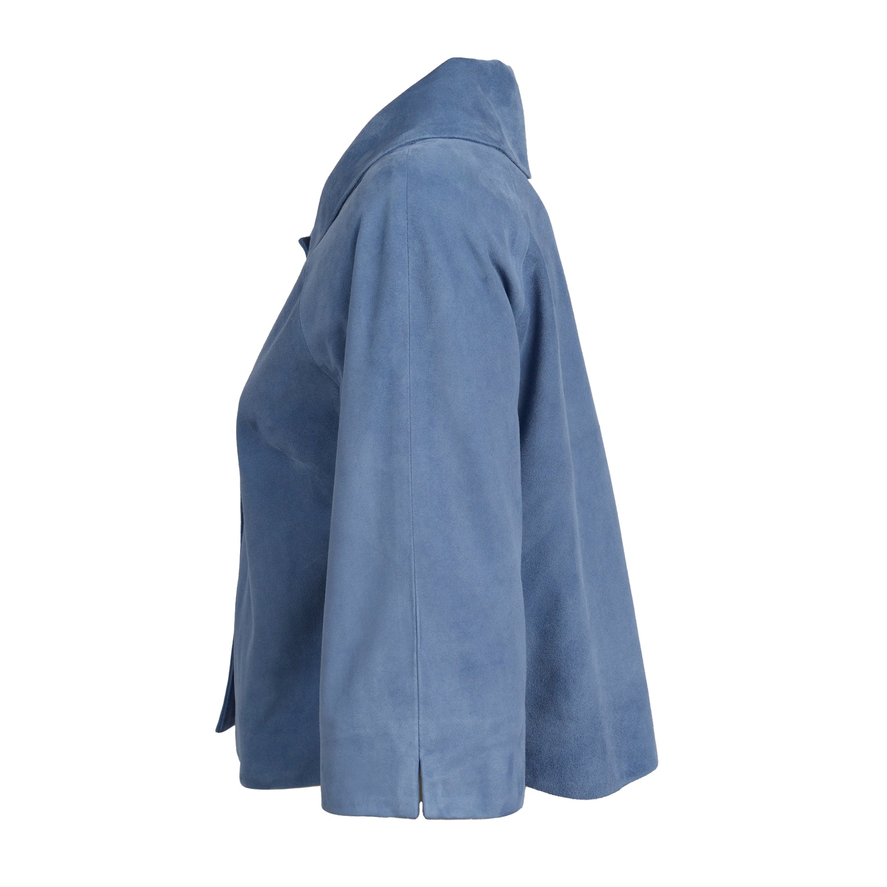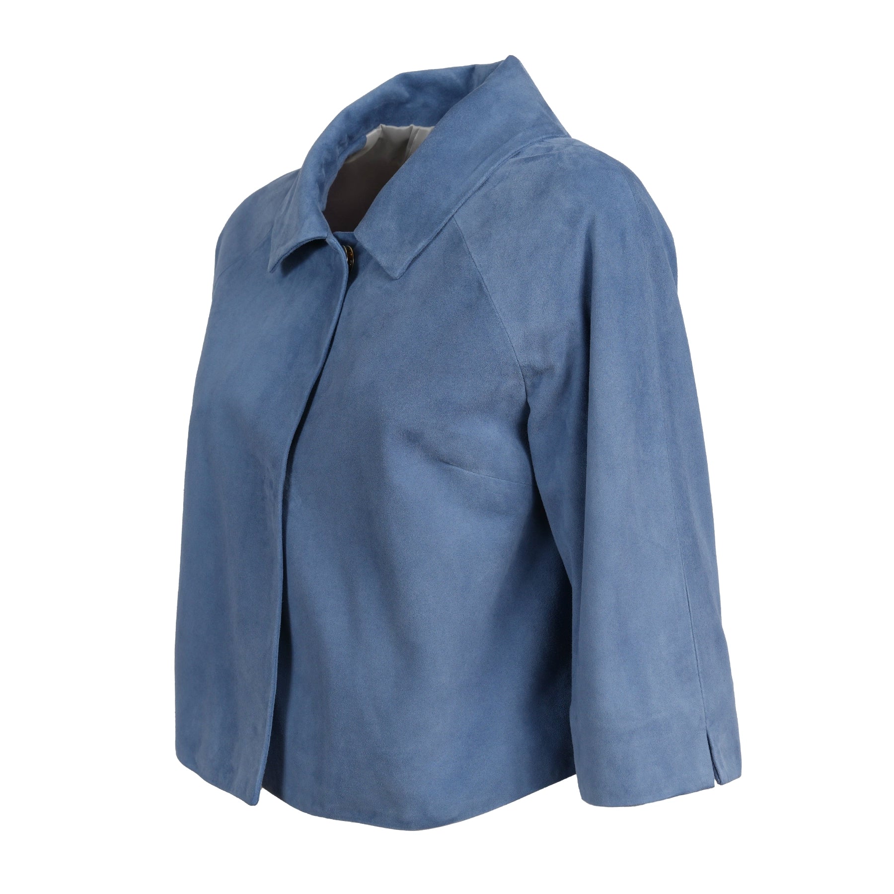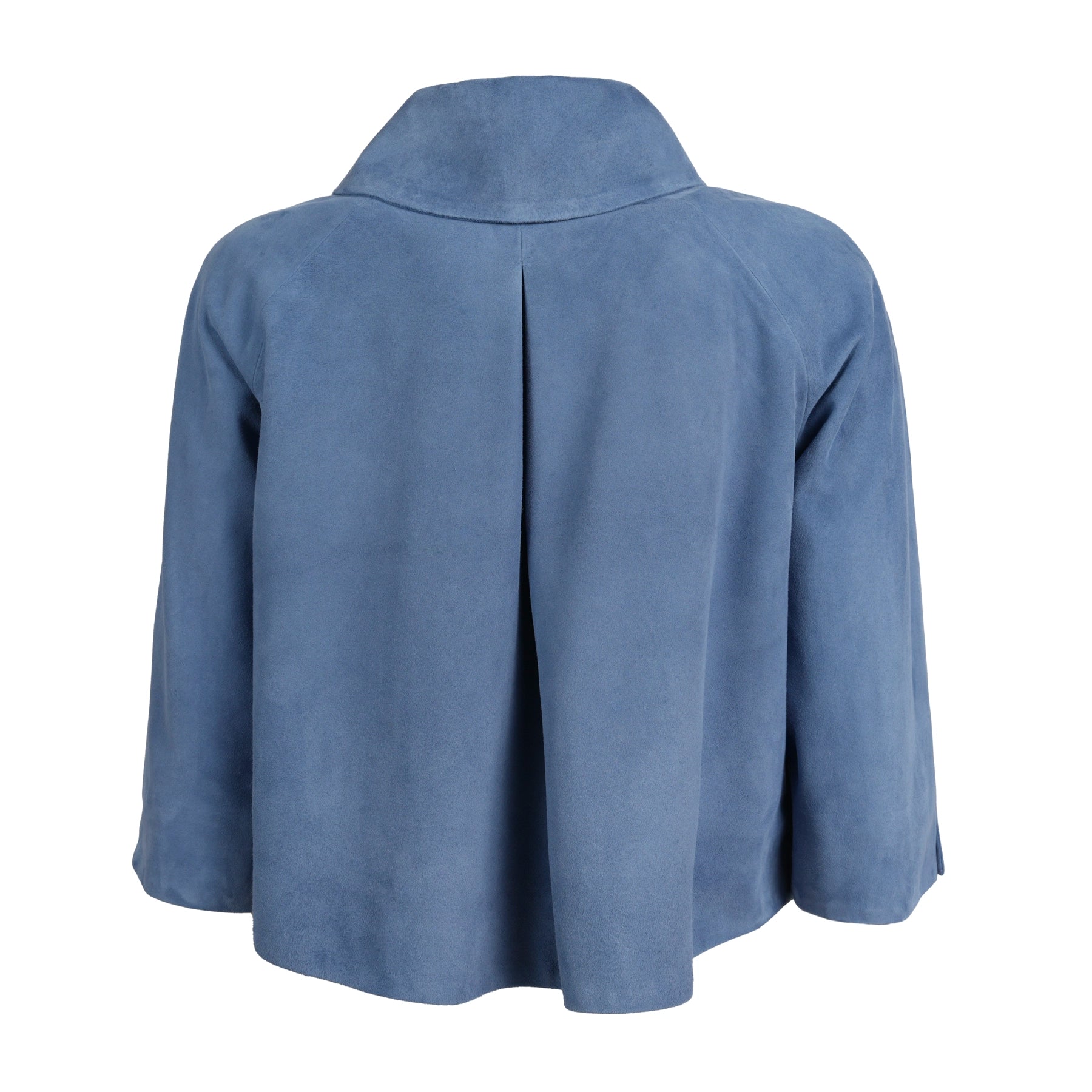 Elevate your wardrobe with this ultra-chic Women’s Cropped Suede Leather Jacket in Baltico (Cool Blue).