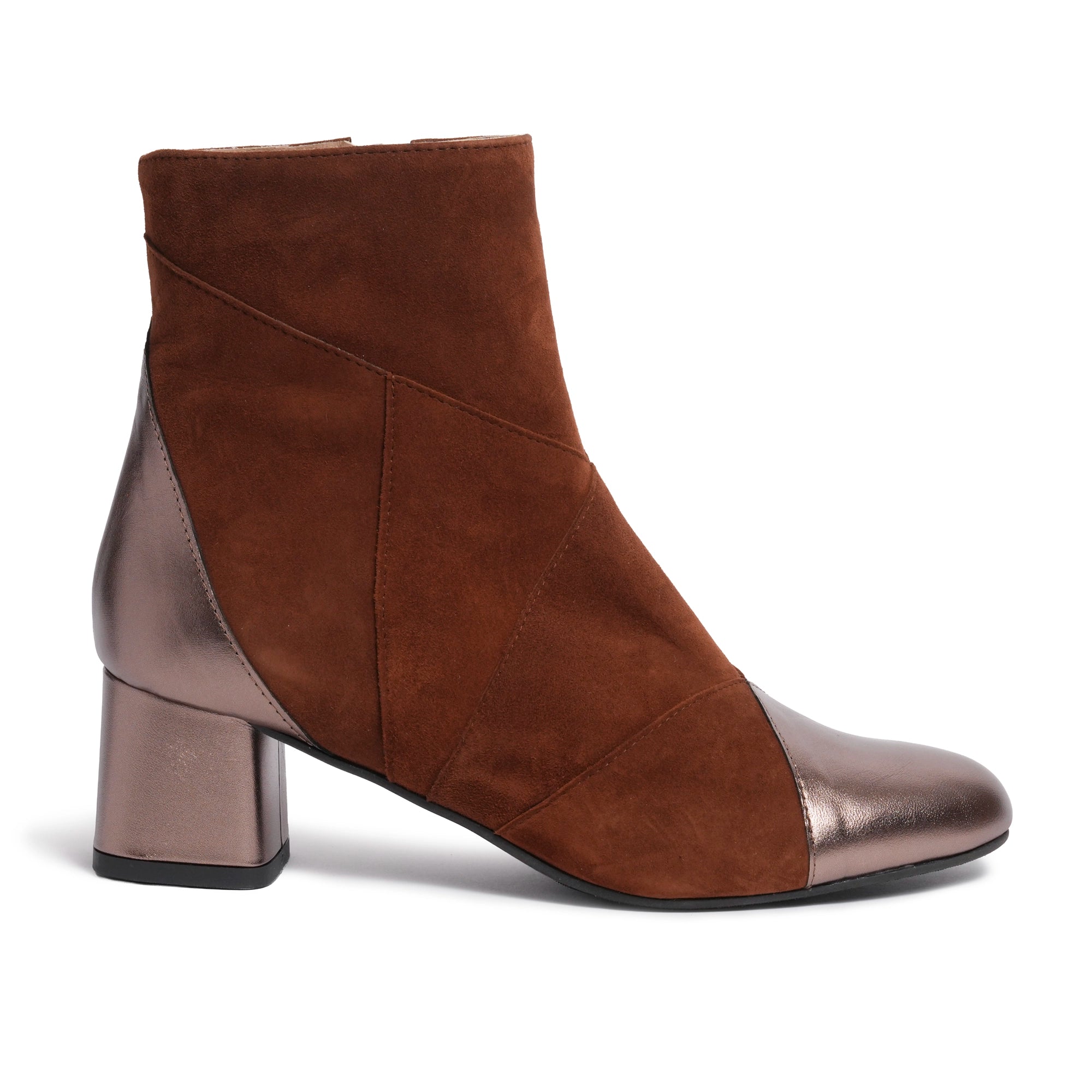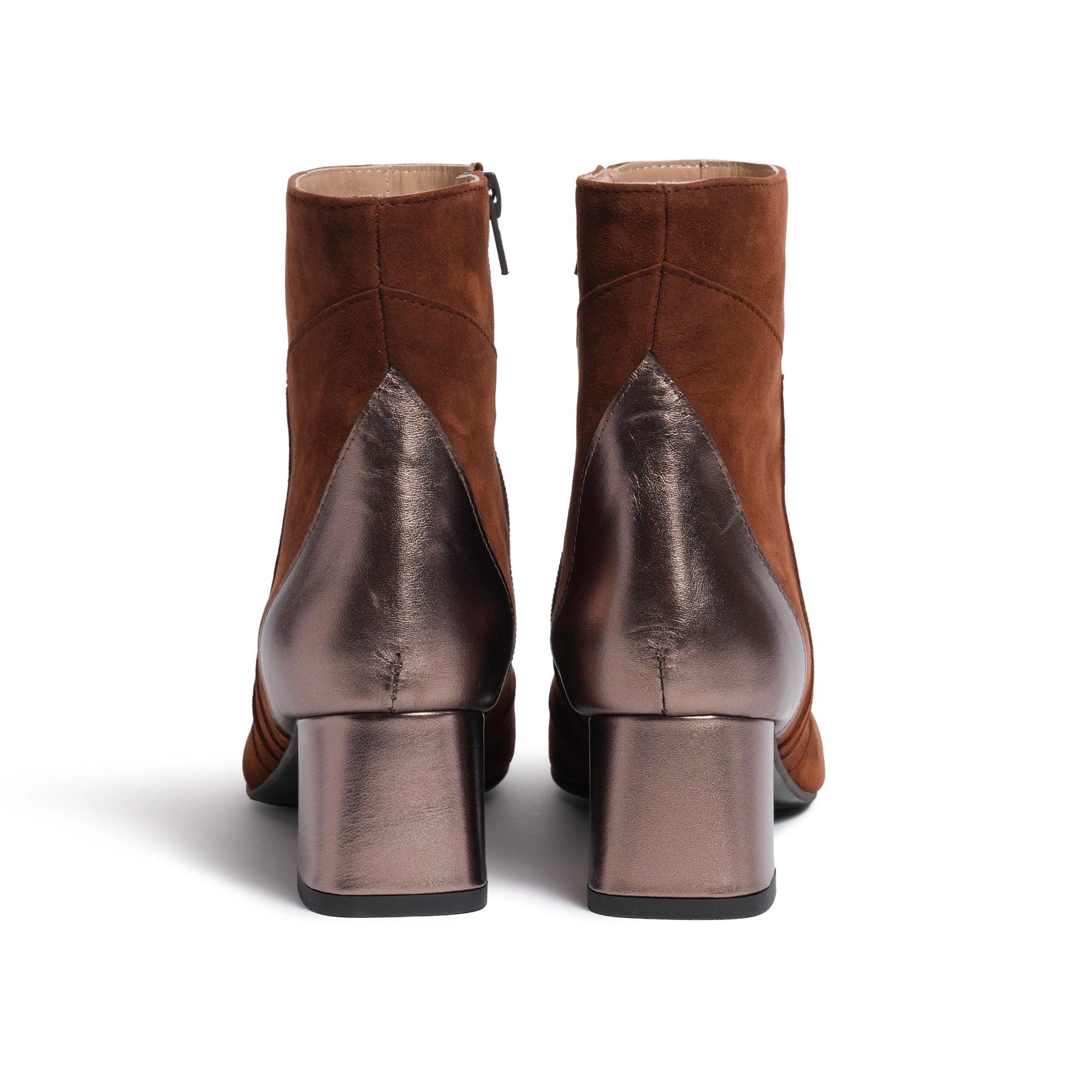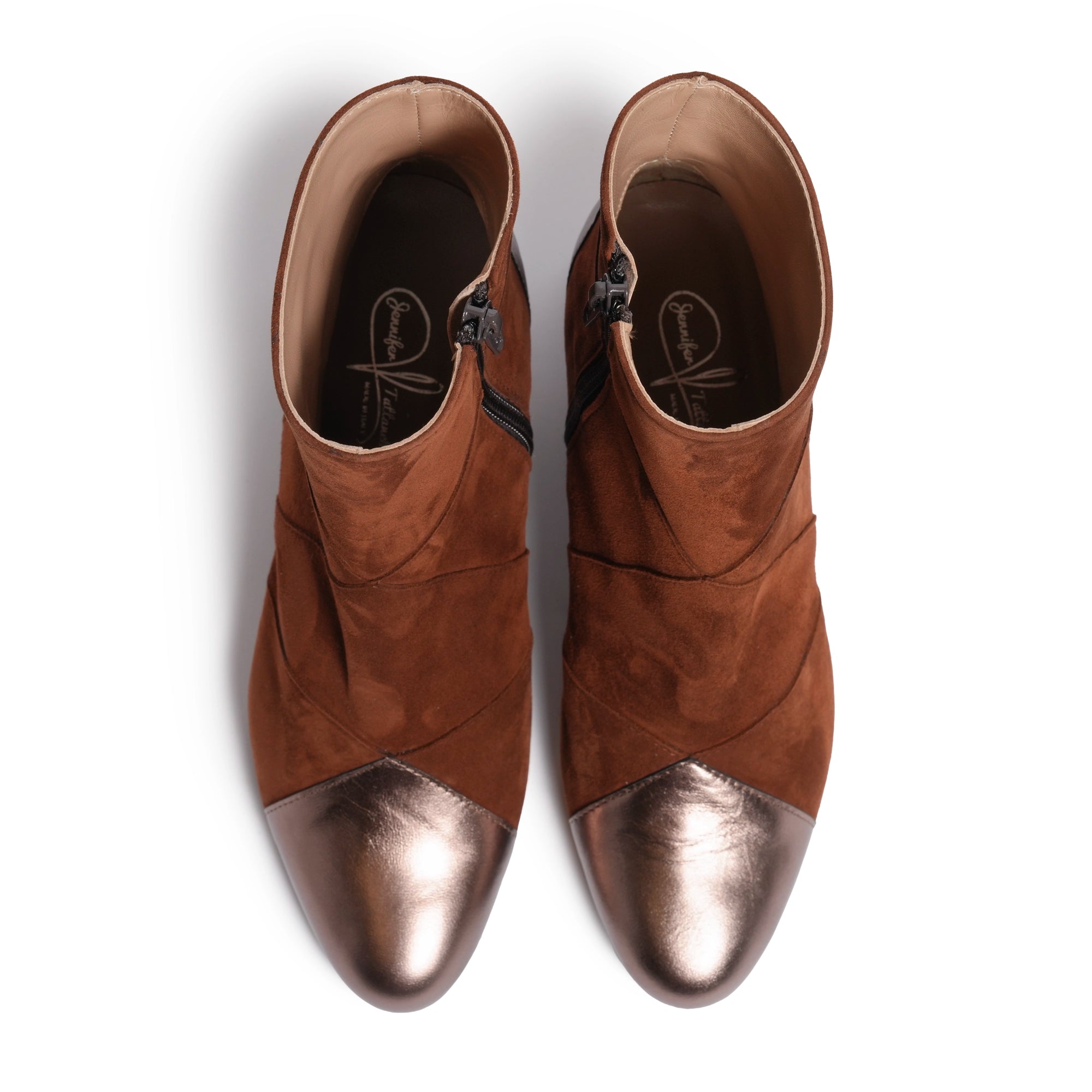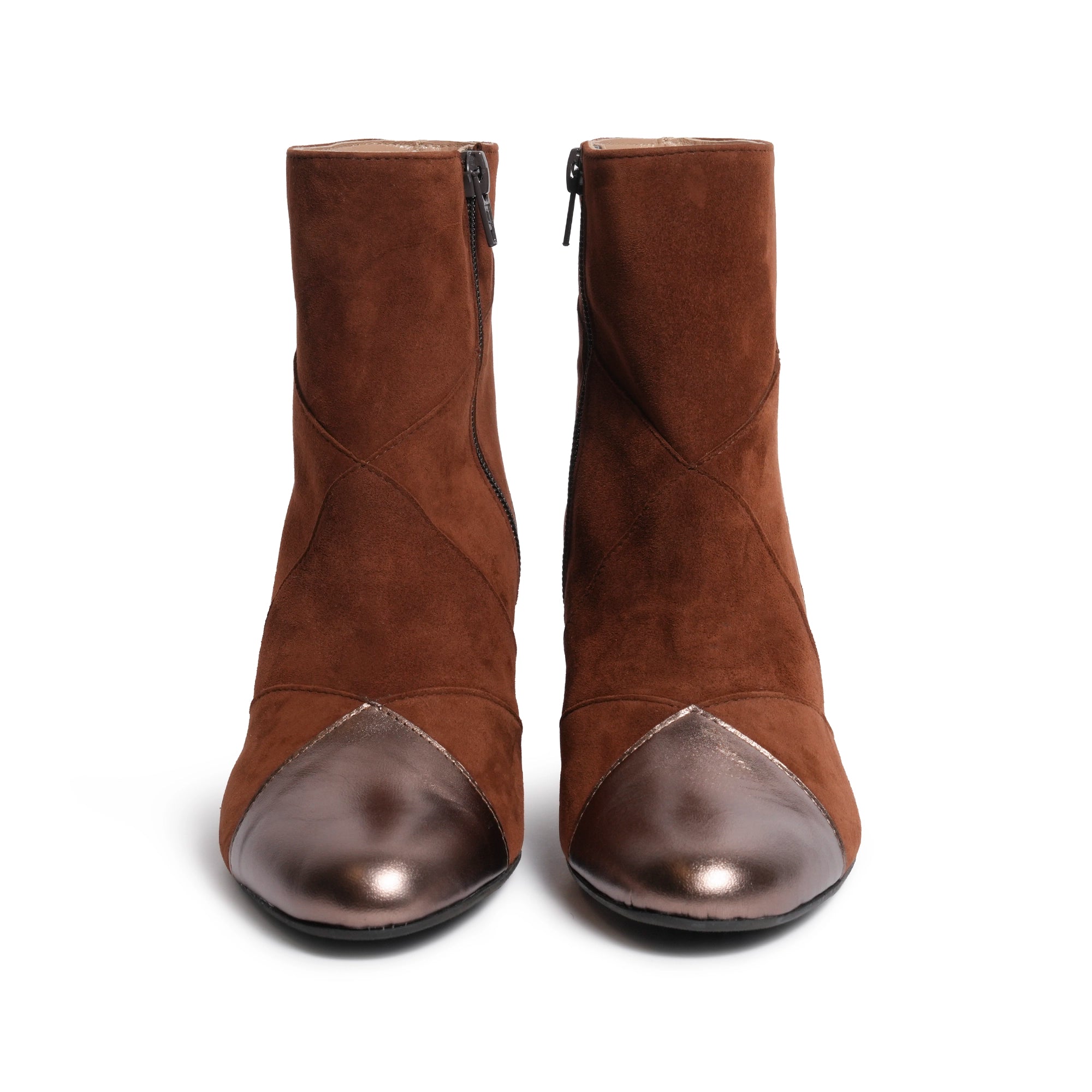 Women Dressy Suede Leather Booties in Brown and Bronze
