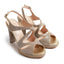 Striking and radiant, these high heel platform leather pumps in Galassia champagne are designed to capture the light with every step. Crafted in Italy, the upper features a shimmering textured metallic leather that blends warm champagne and gold tones, creating a refined sparkle that feels both festive and sophisticated.