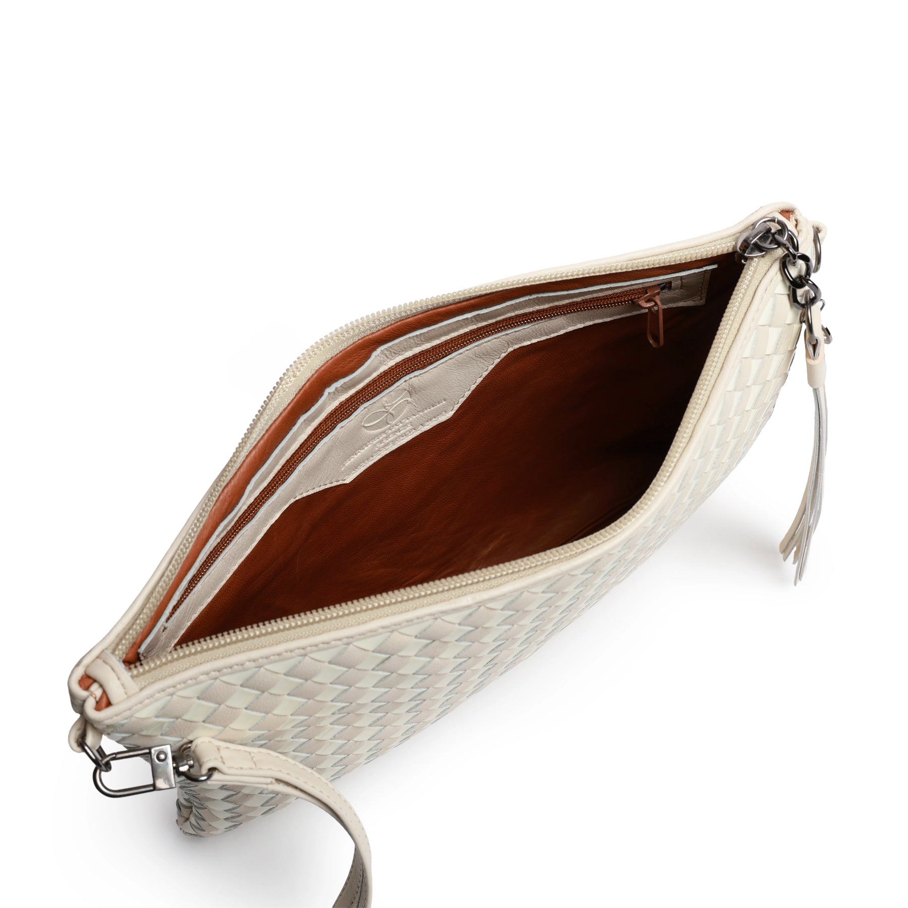 Carry it as a wristlet with linen dresses and sandals for daytime, or wear it crossbody with tailored separates for evenings out. The Ivory shade works beautifully with whites, camel tones, denim, and gold accessories, making it a year-round staple for travel and city days alike.