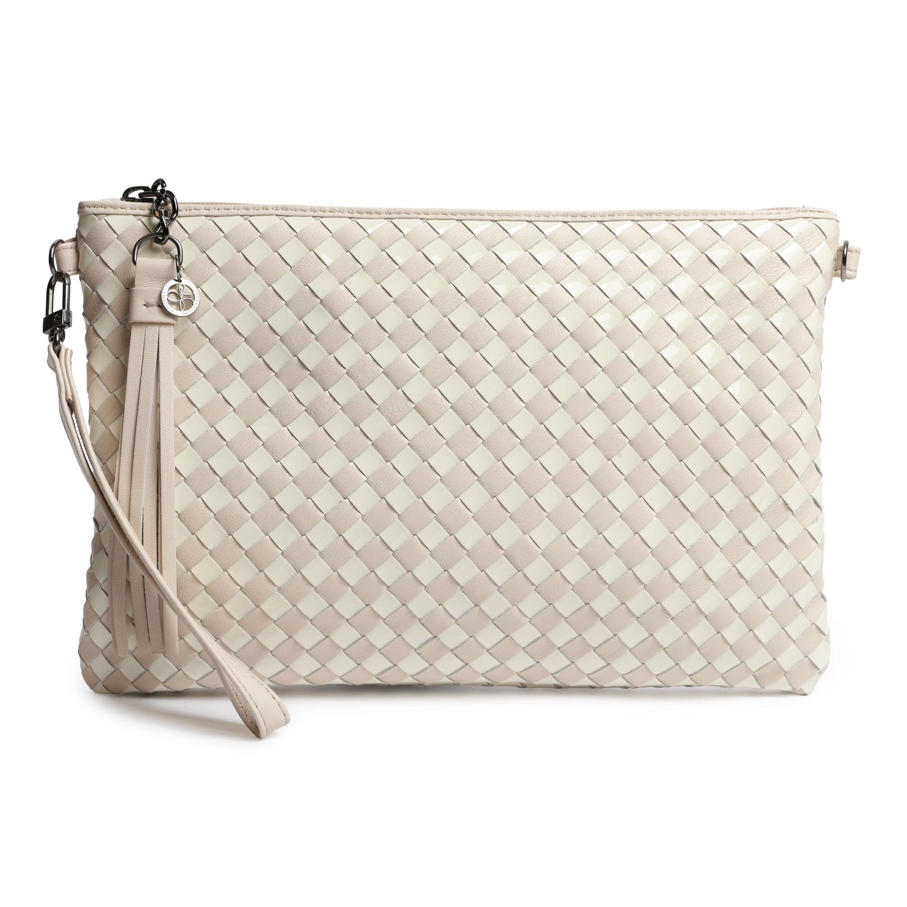 Women Intrecciato Nappa and Patent Leather Pouch in Ivory