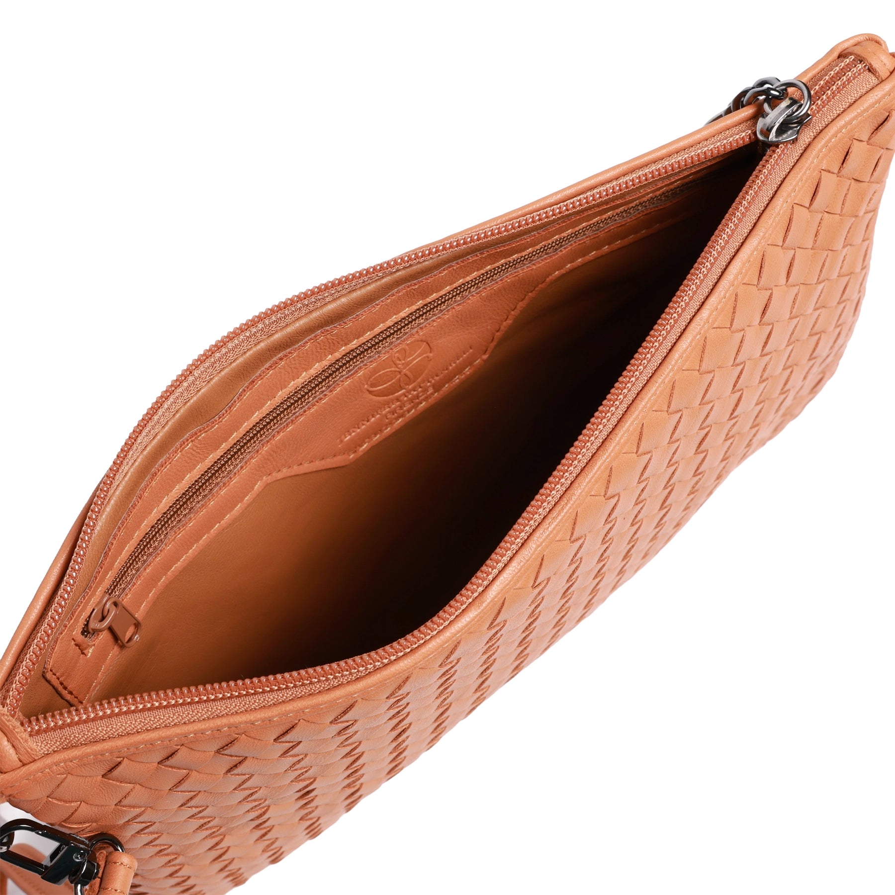 - Interior zippered compartment