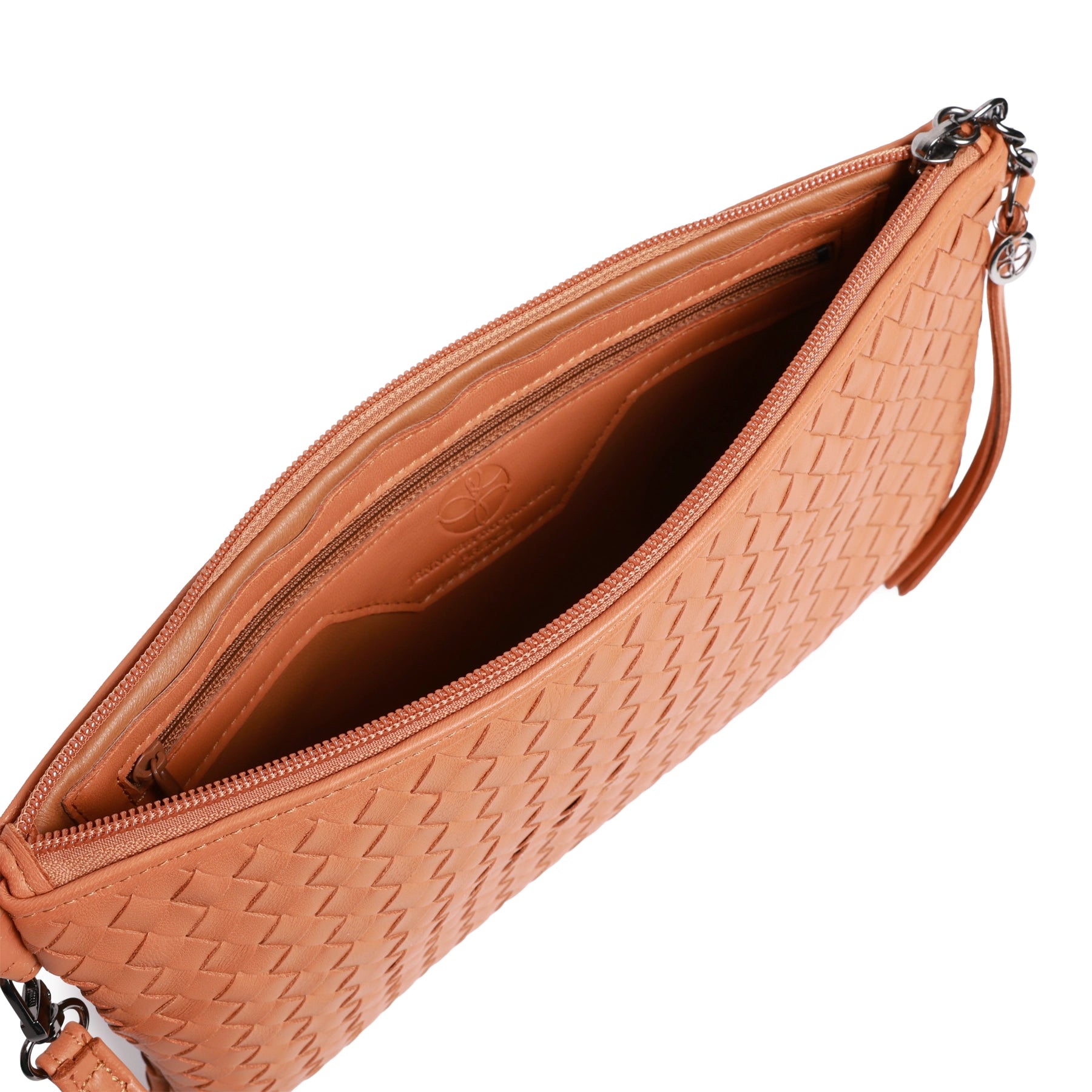 Women Intrecciato Nappa Leather Soft Pouch Intrecciato in Bruciato Tan