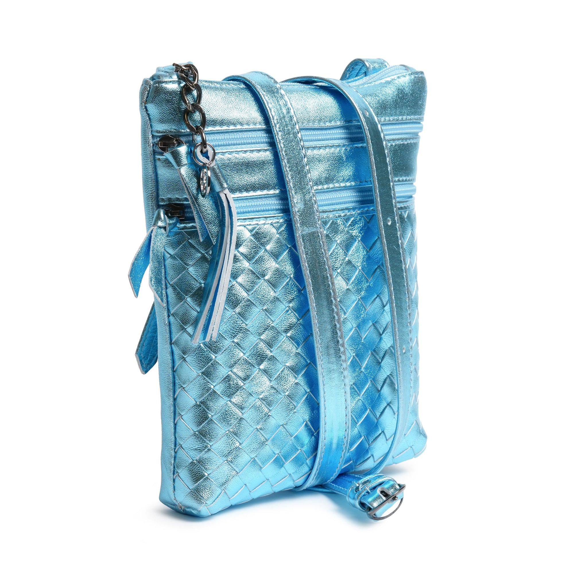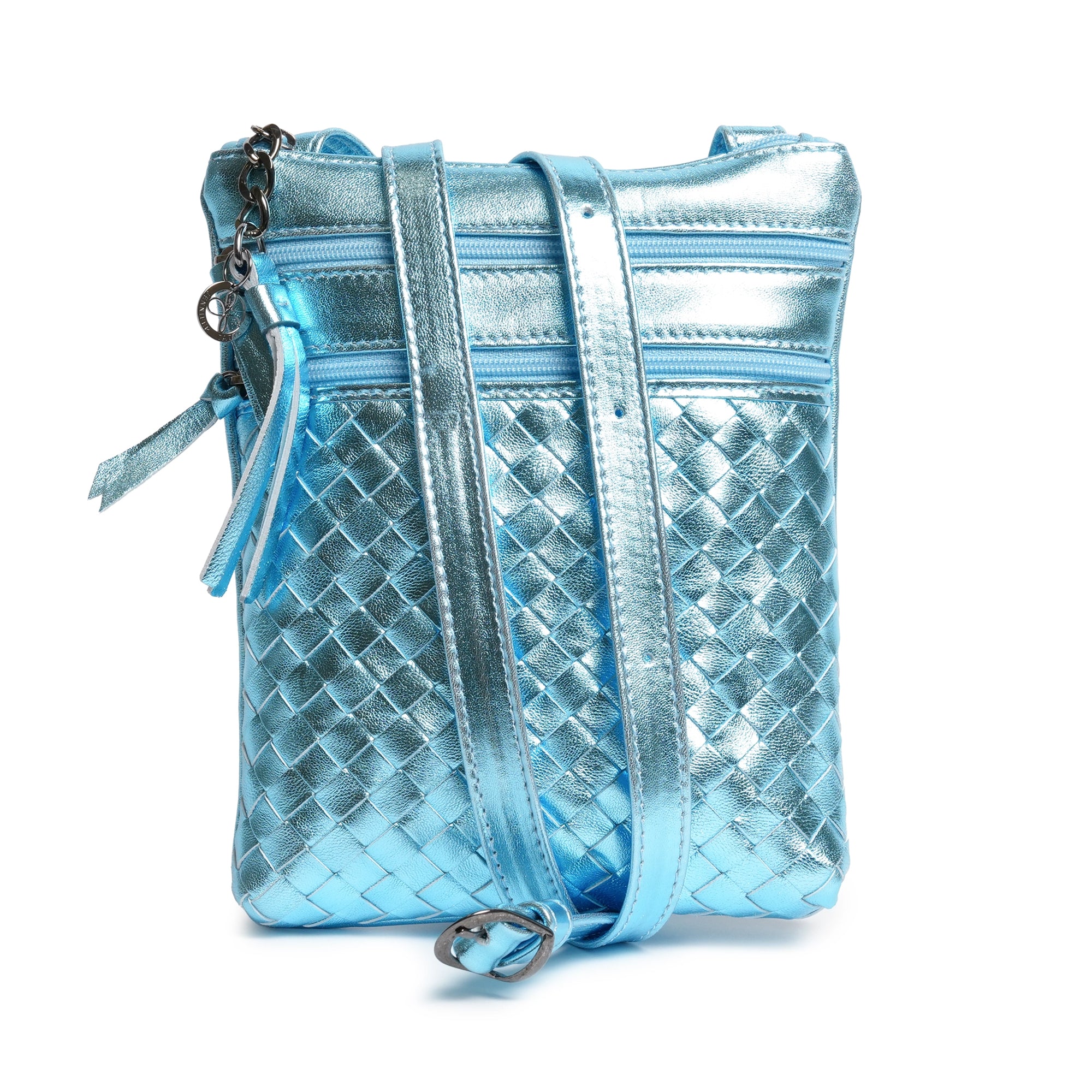 Women Intrecciato Soft Laminated Leather Messenger in Cielo