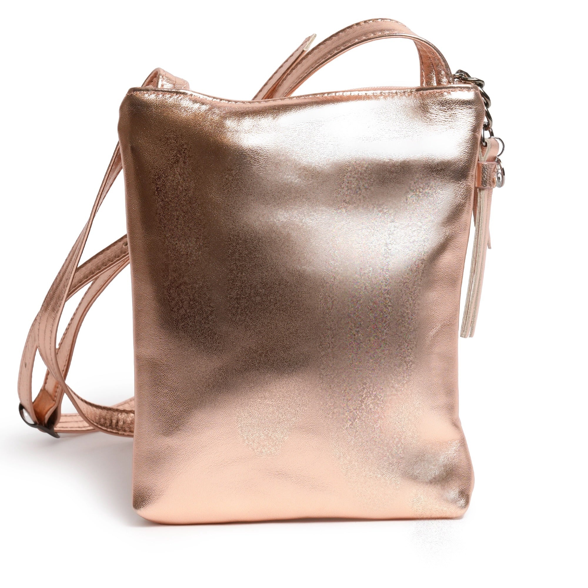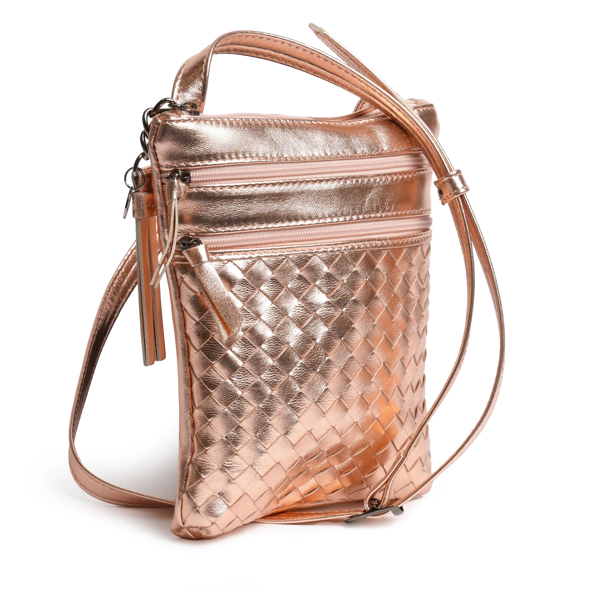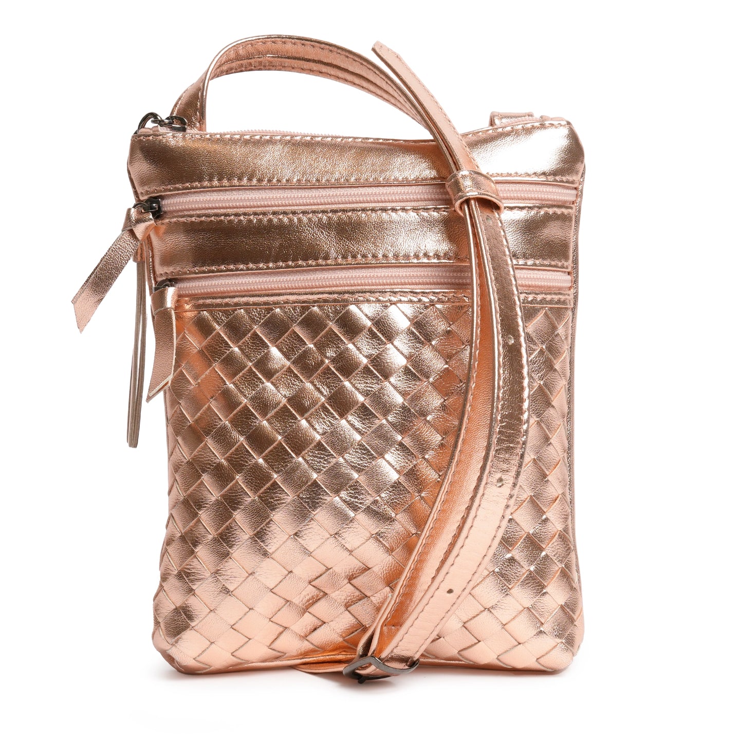 Women Intrecciato Soft Laminated Leather Messenger in Rose Gold
