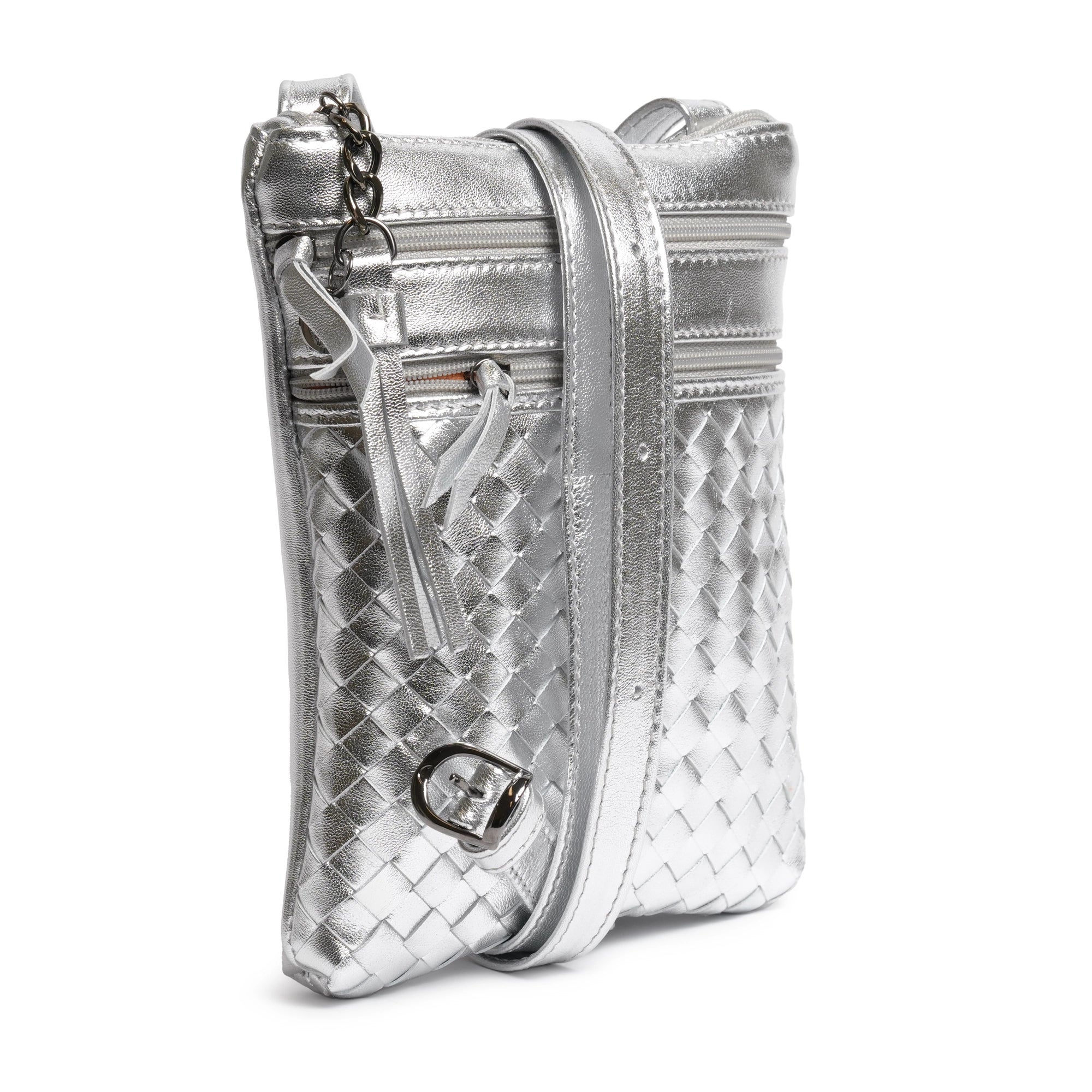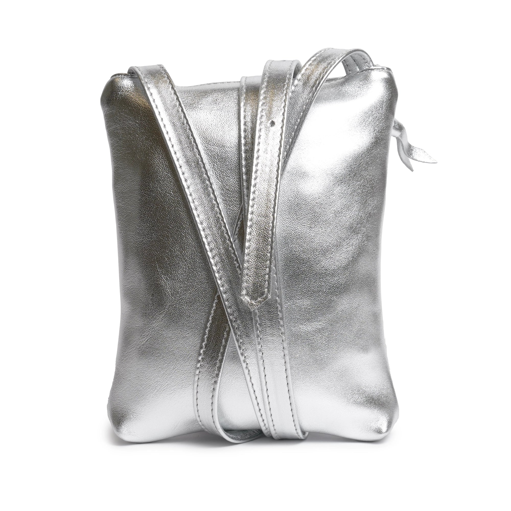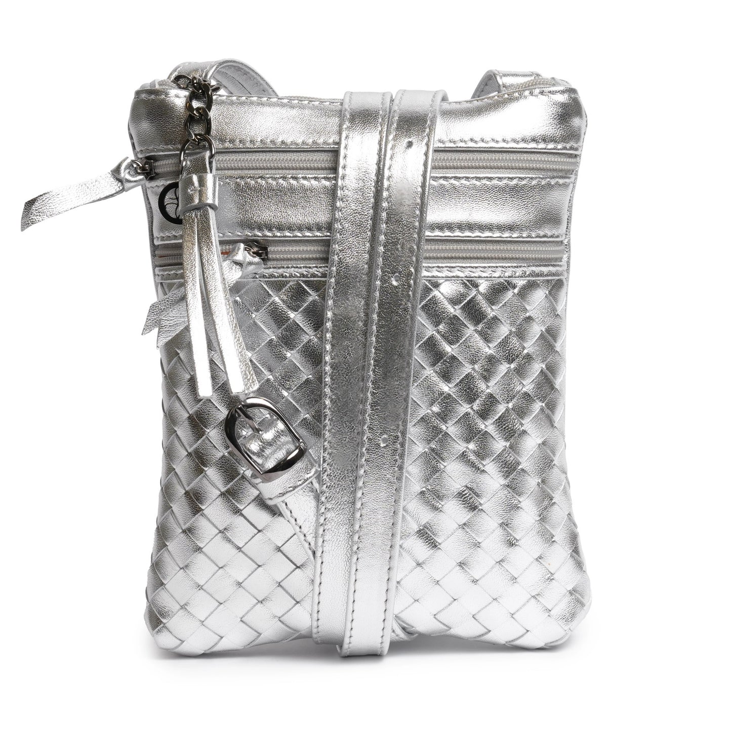 Women Intrecciato Soft Laminated Leather Messenger in Silver