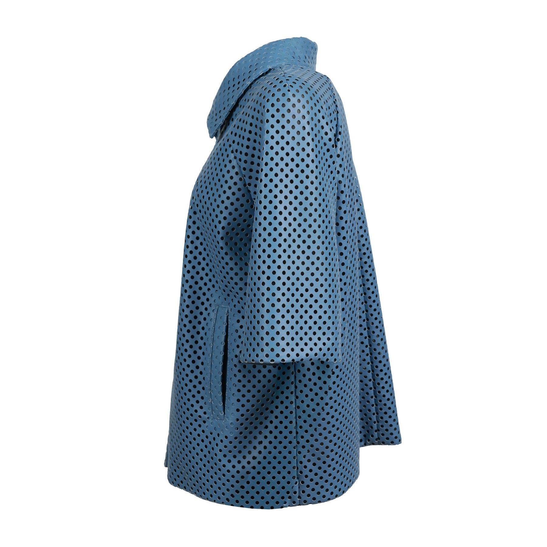 The slightly flared cut and precise tailoring ensure comfort and fluidity, making it an ideal layering piece for transitional seasons.