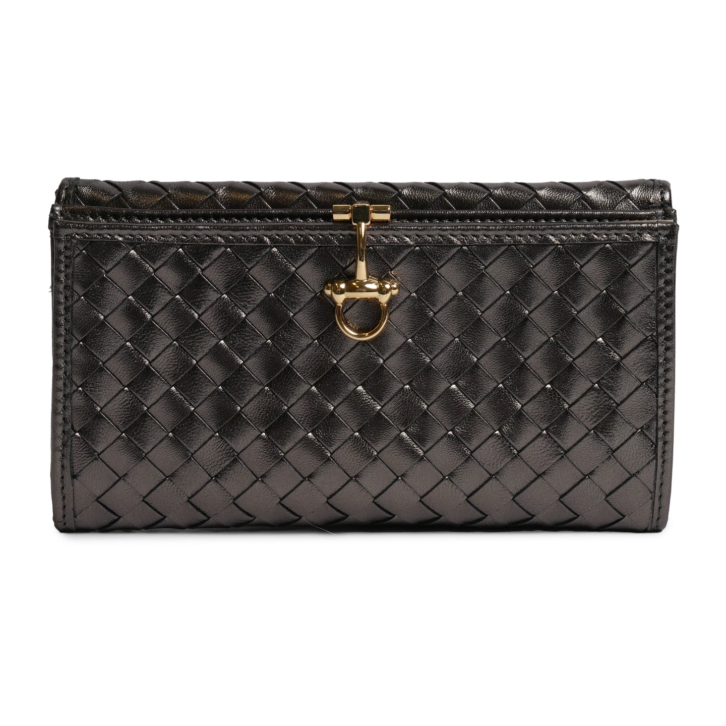Women Long Intrecciato Leather Wallet with Horsebit in Gunmetal