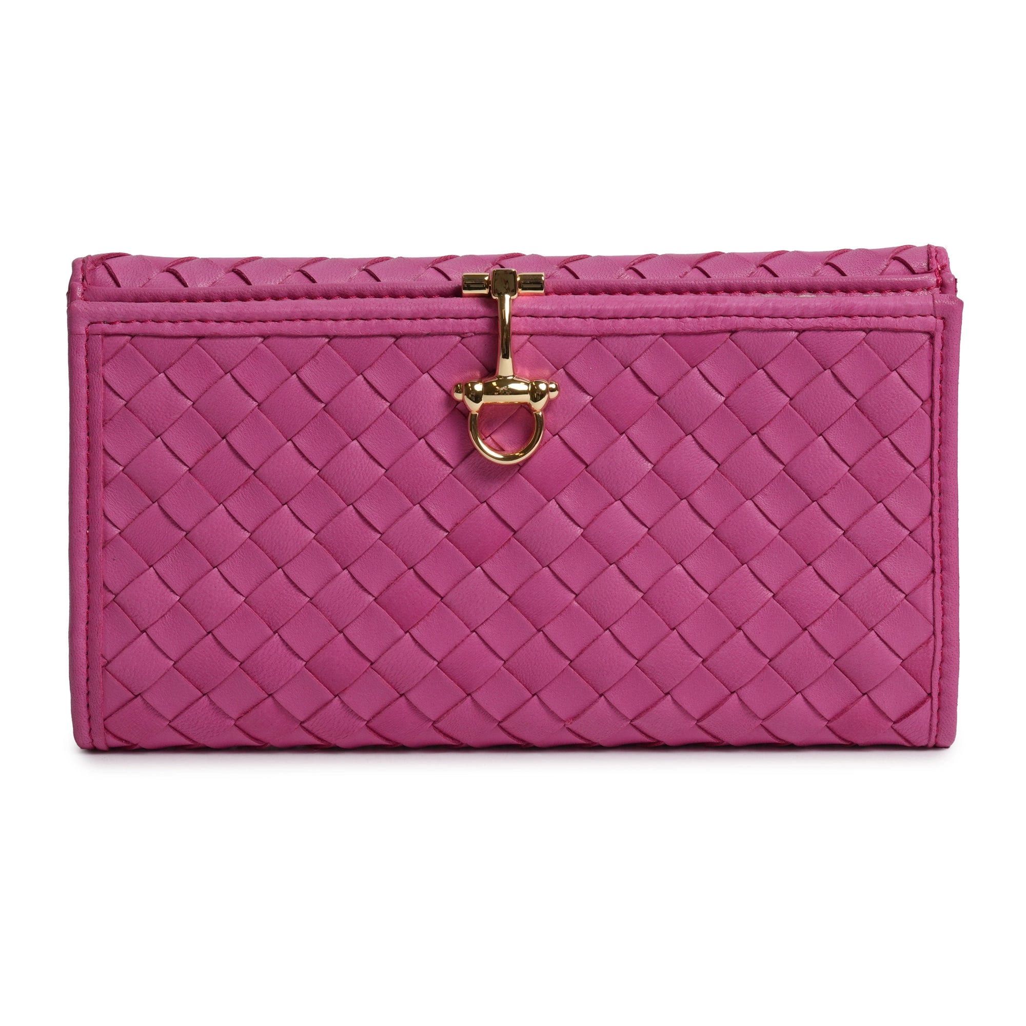 Women Long Intrecciato Leather Wallet with Horsebit in Fucsia