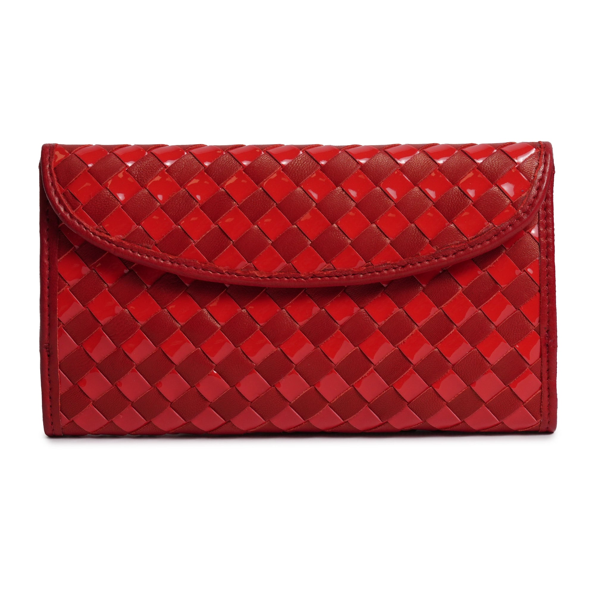 Women Long Intrecciato Nappa and Patent Leather Wallet with Horsebite in Red