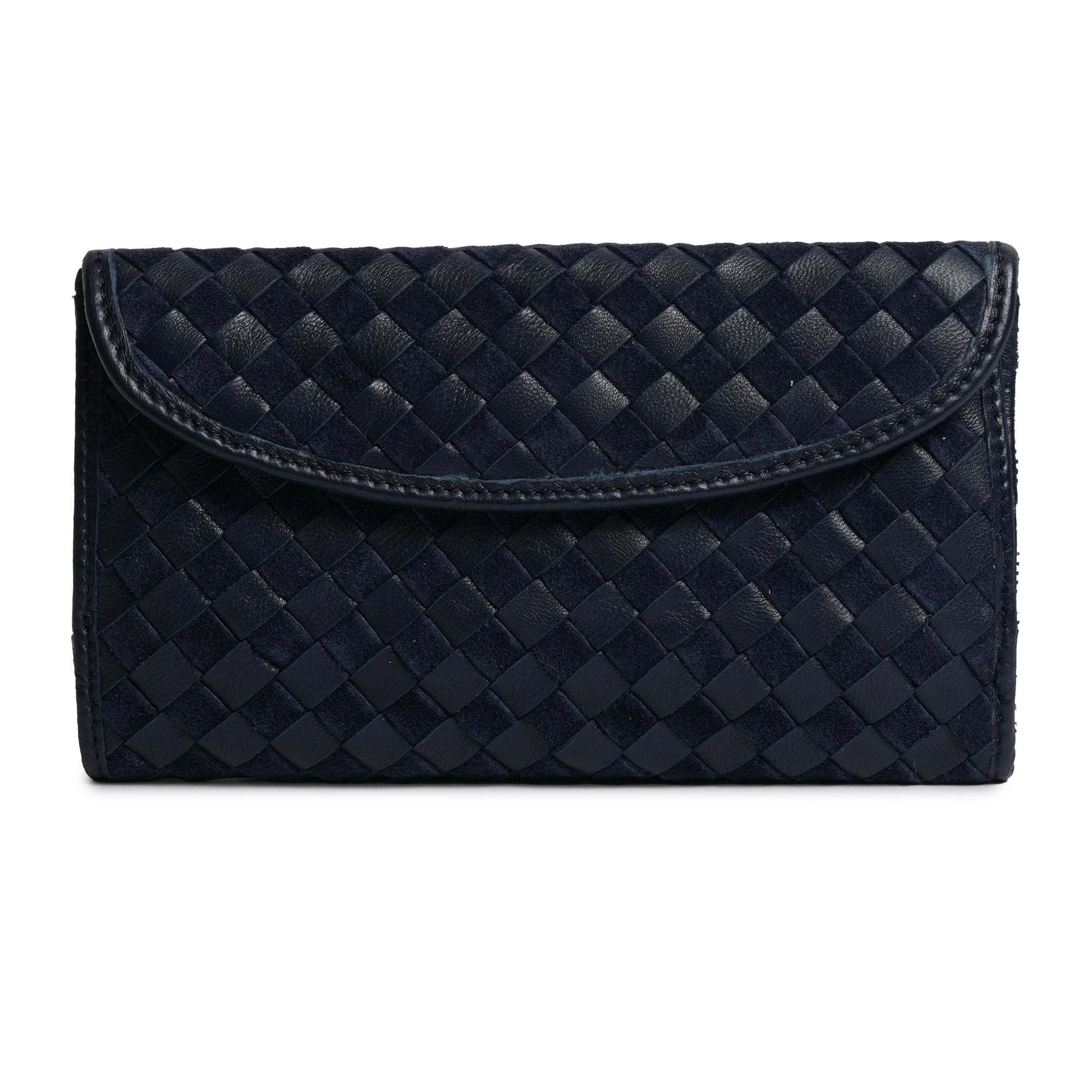 Women Long Intrecciato Nappa and Suede Leather Wallet with Horsebite in Blue