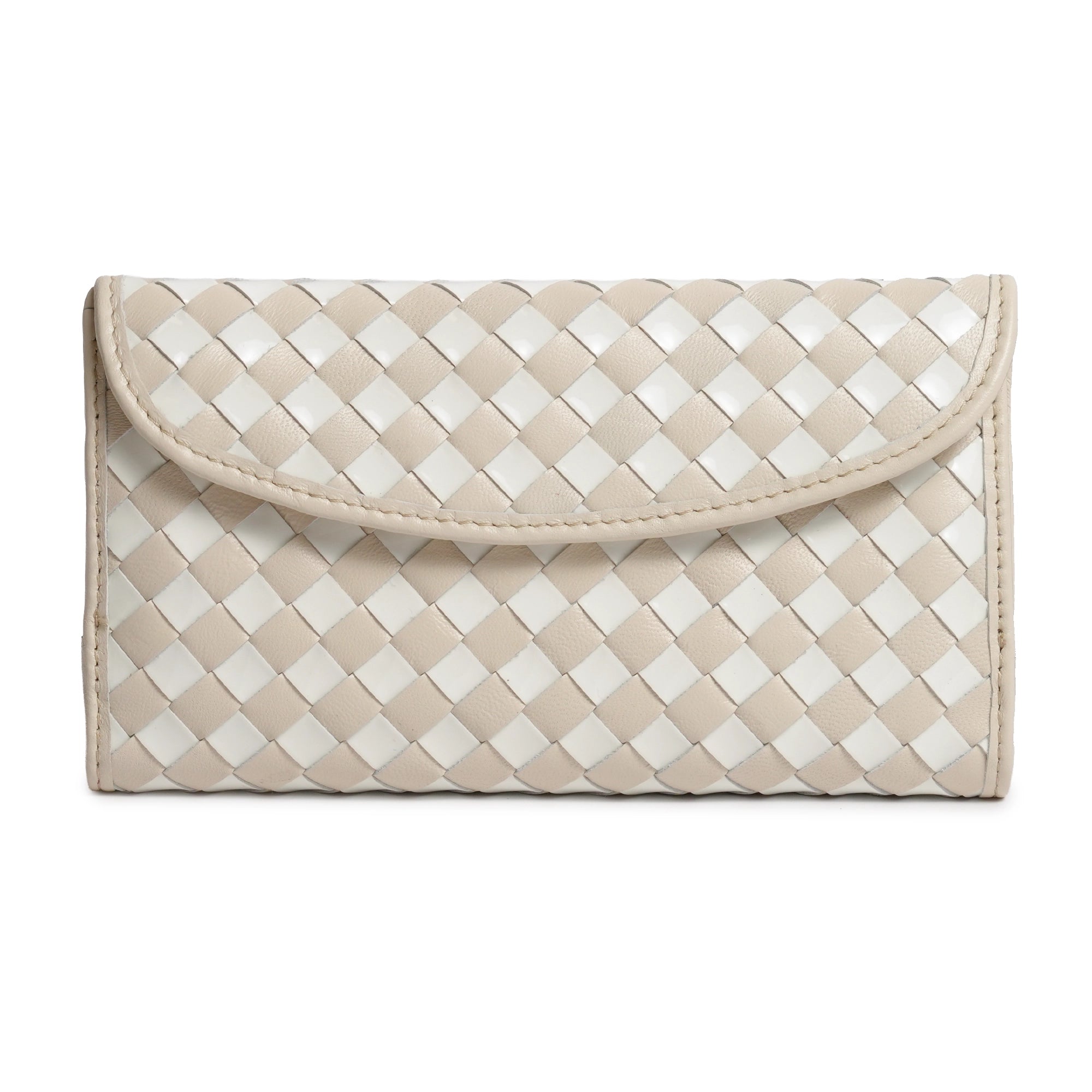 Women Long Intrecciato Wallet with Horsebite in Ivory Nappa and White Patent Leather