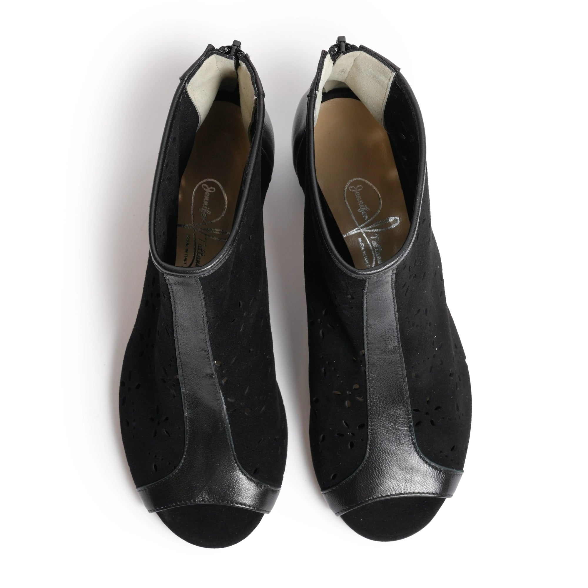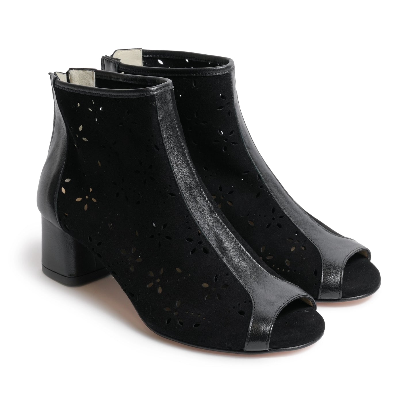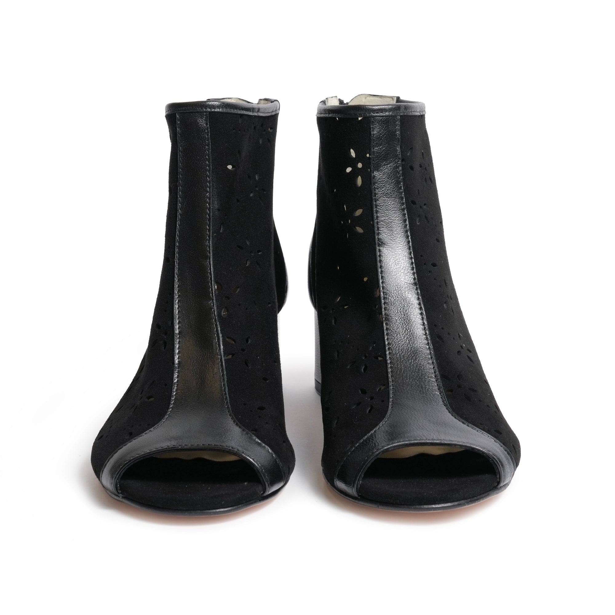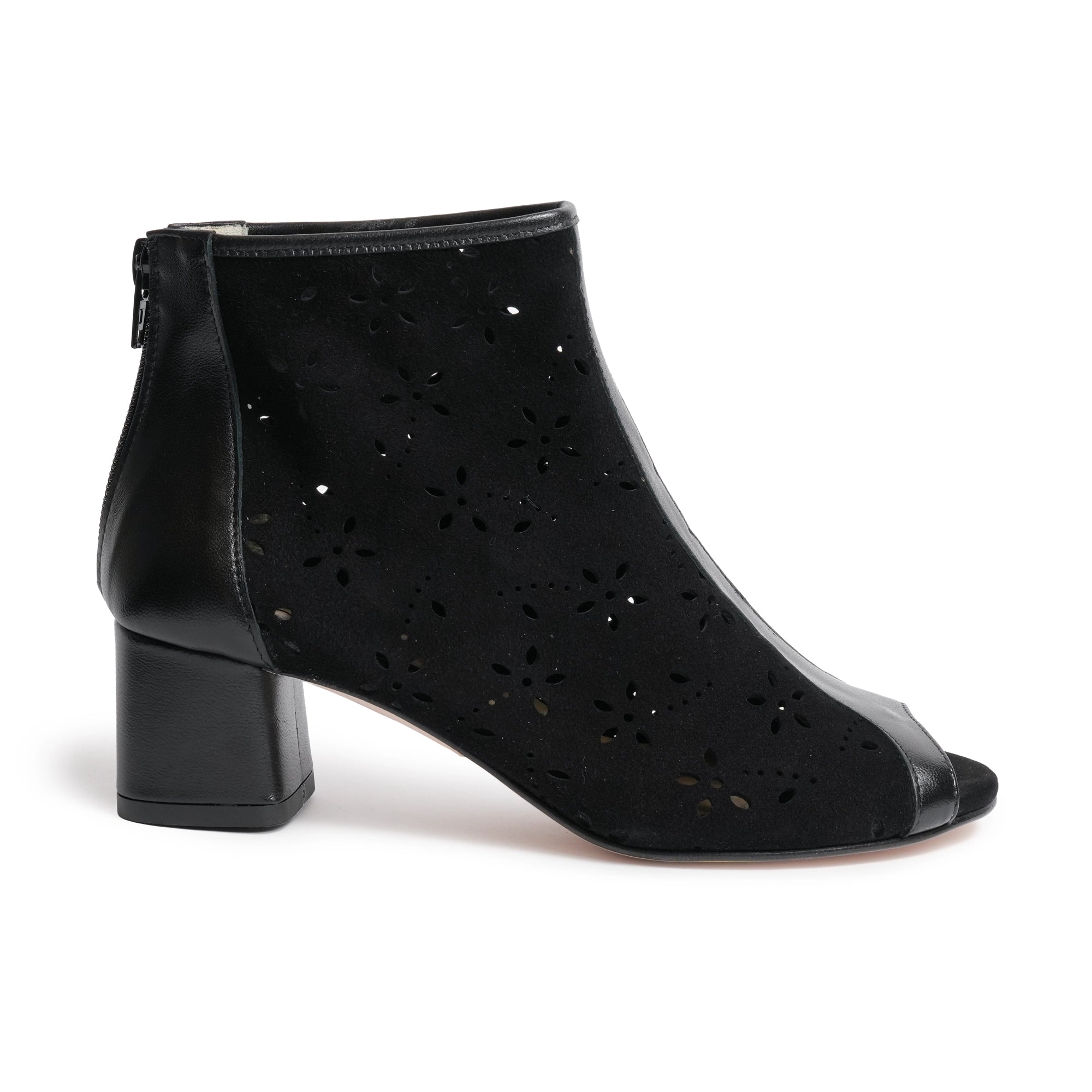 Women Open Toe Ankle Booties in Lasered Suede Black