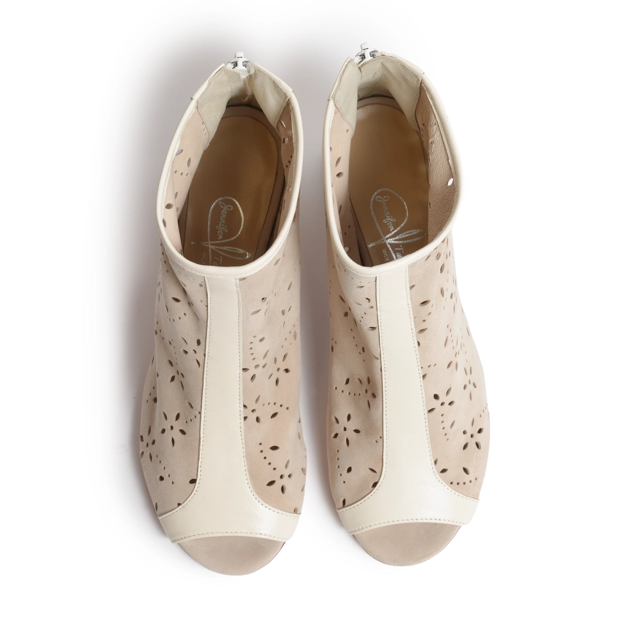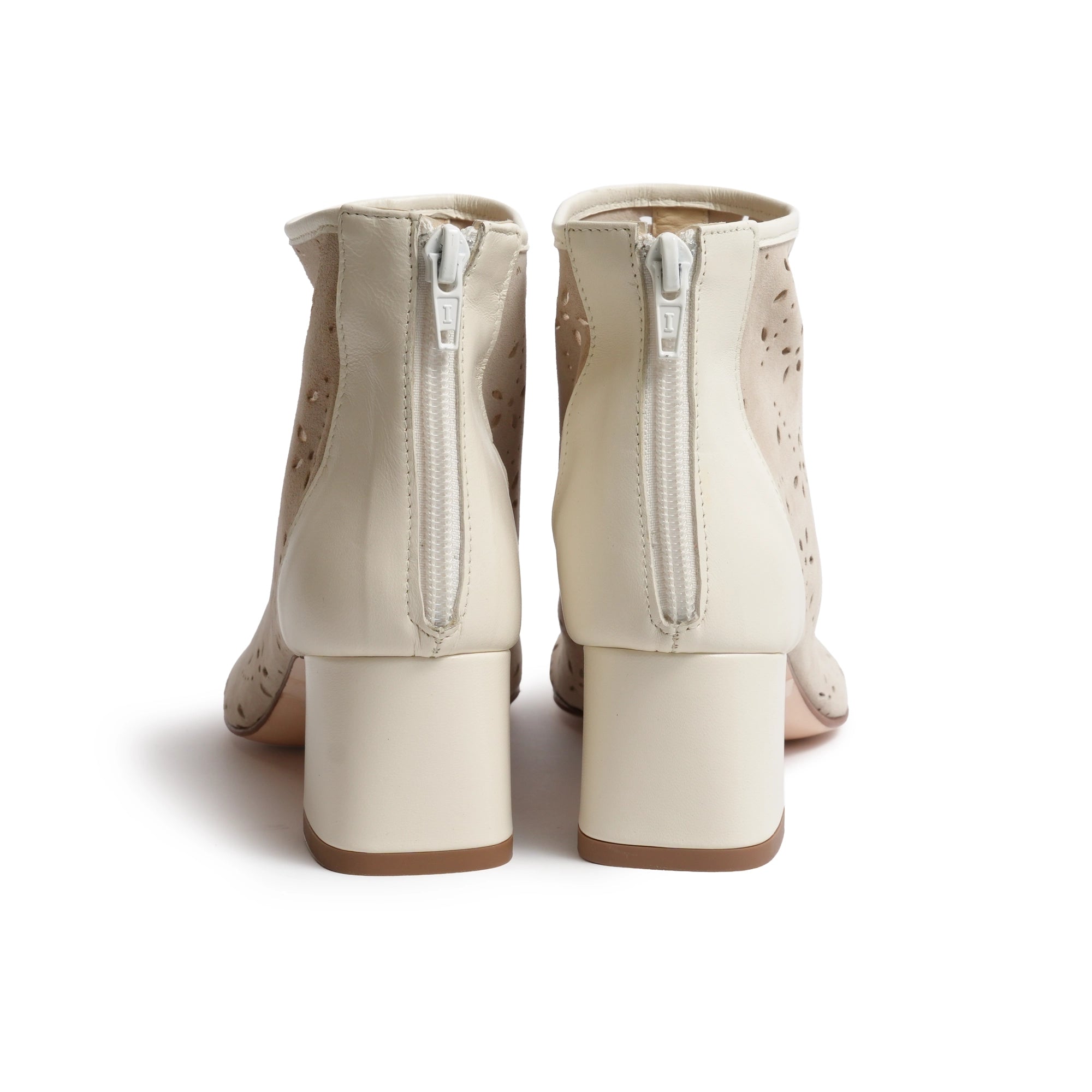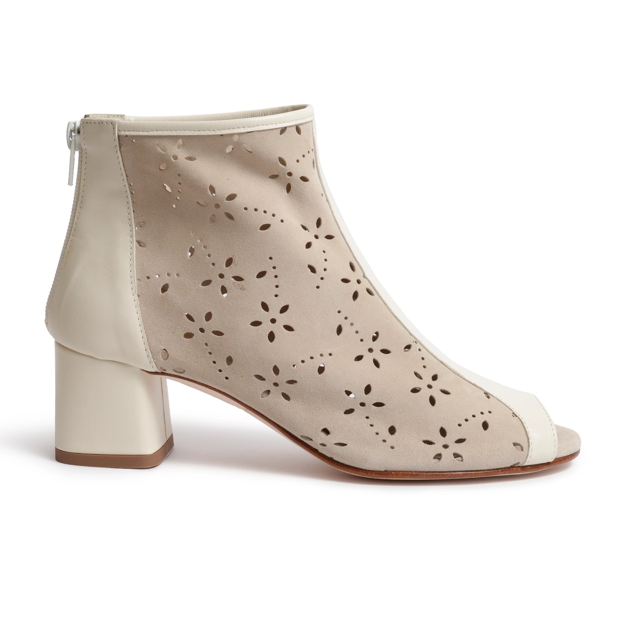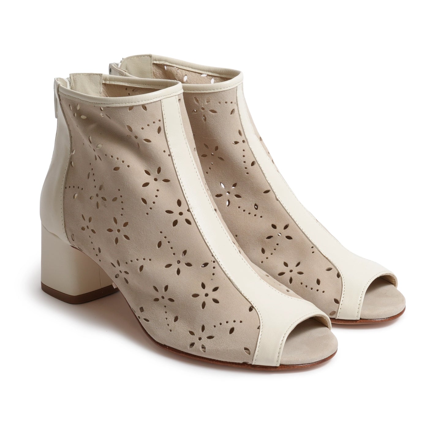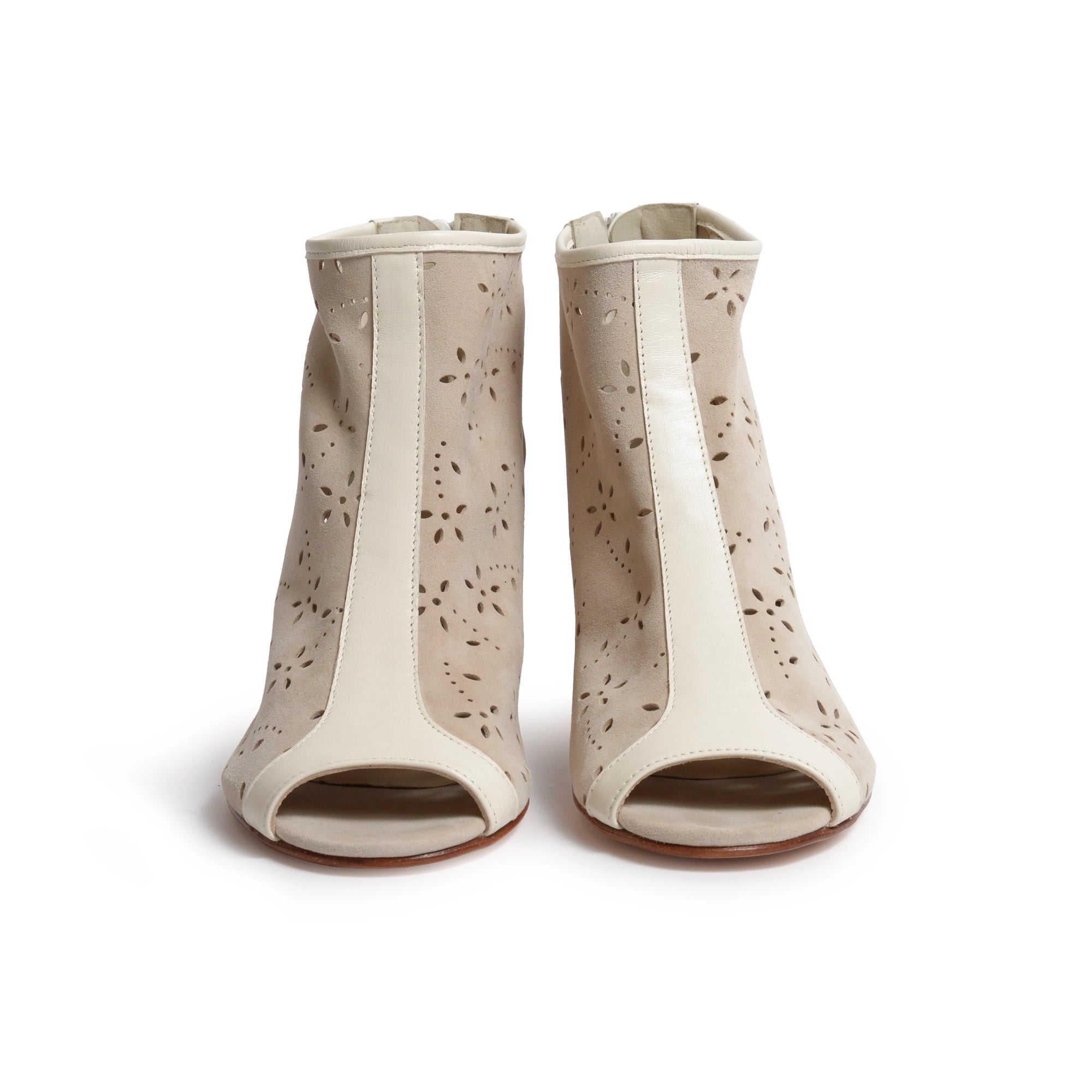 Women Open Toe Ankle Booties in Lasered Suede Ivory