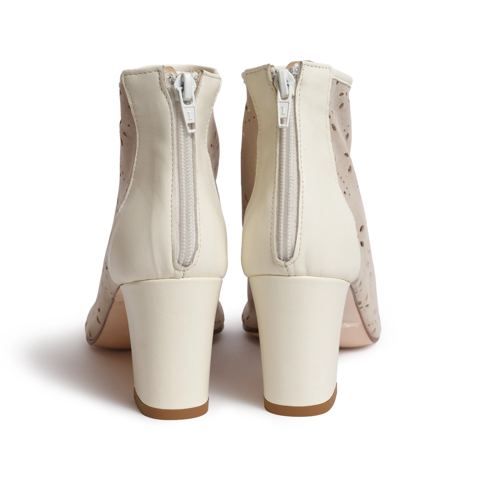 Women Open Toe Lasered Ankle Booties in Ivory