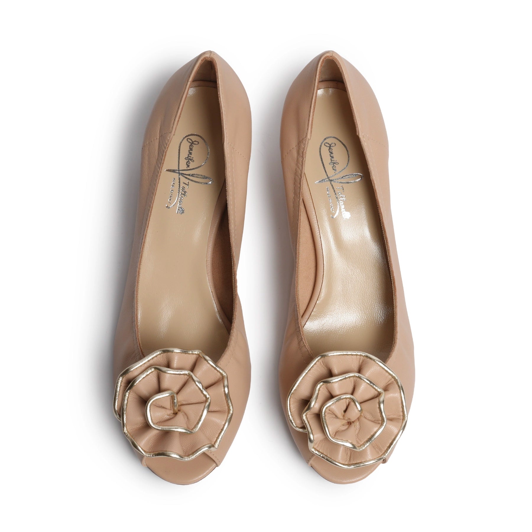 Step into effortless elegance with the Women’s Open-Toe Wedges in Nappa Beige
