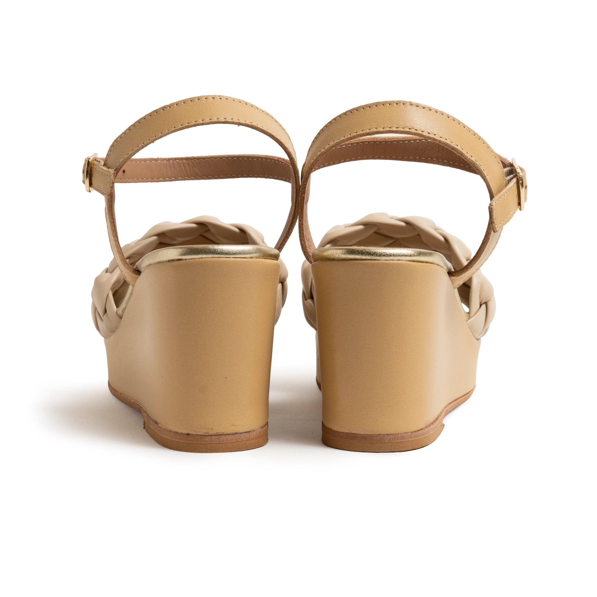 Women Platform Leather Intrecciato Wedge in Nappa Beige