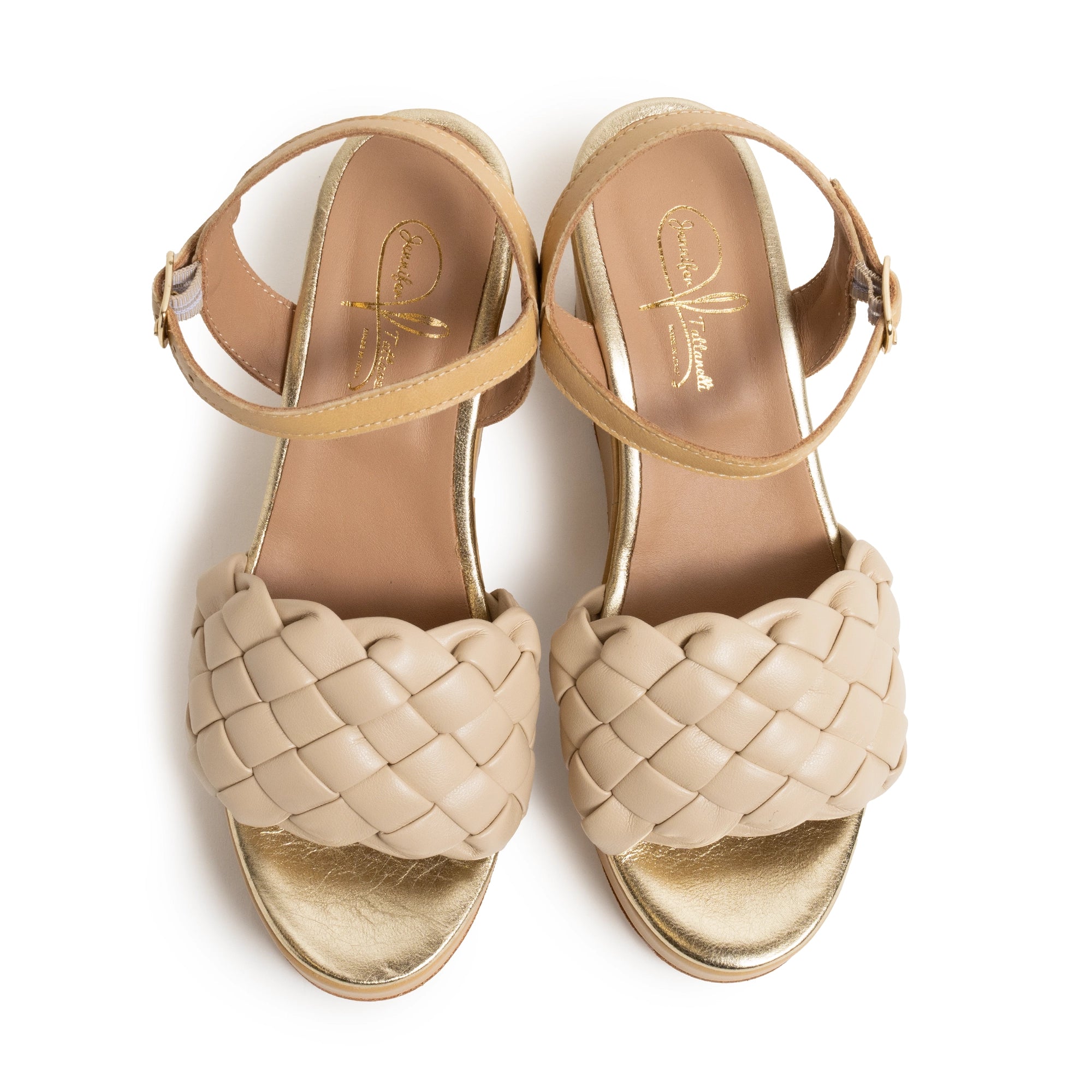 One of Jennifer Tattanelli's favorite Summer sandals, the Women's Platform Leather Intrecciato Sandals in Nappa Beige are an essential wardrobe piece now in this new crossover style.